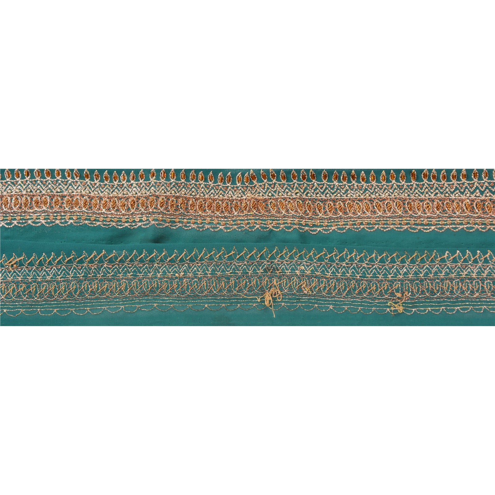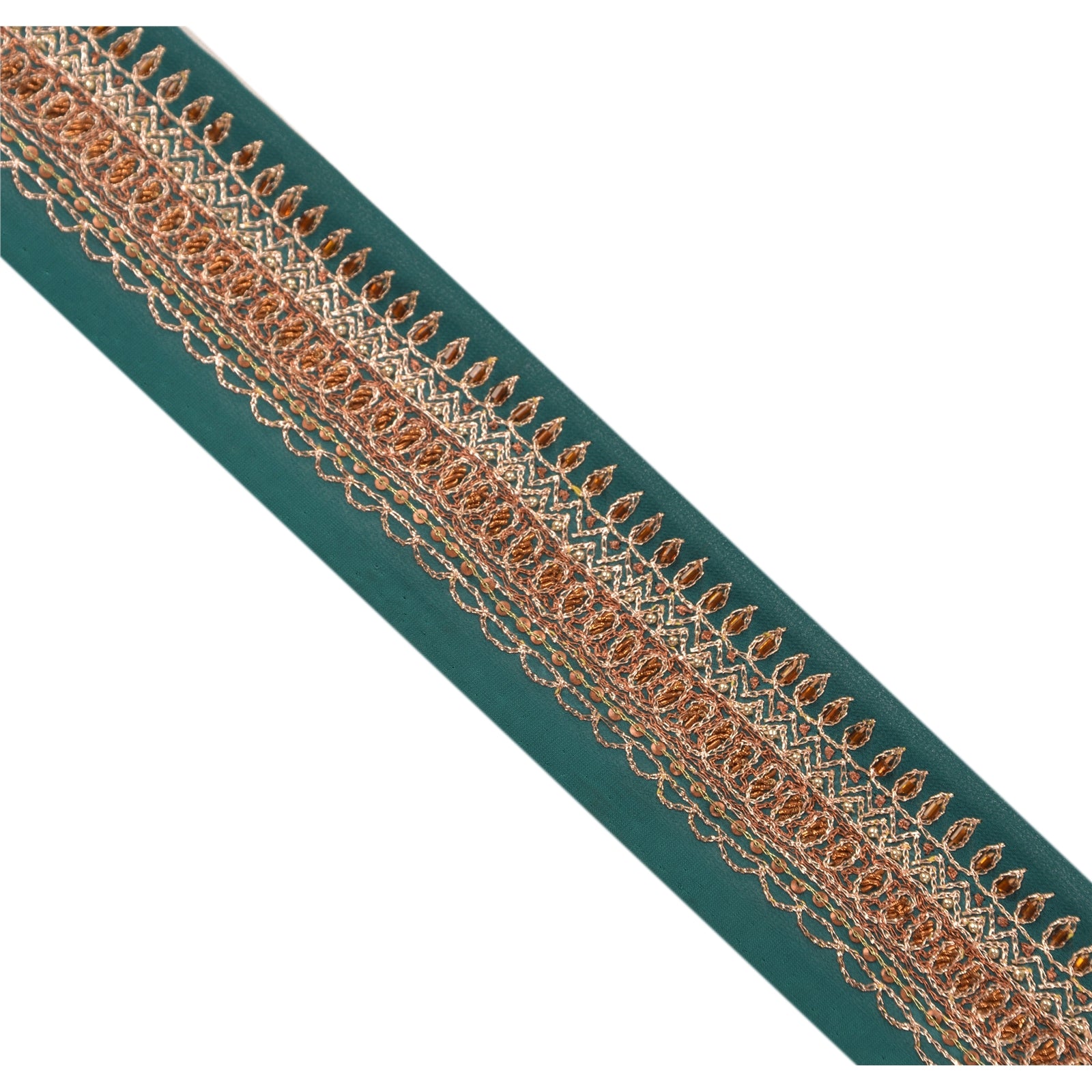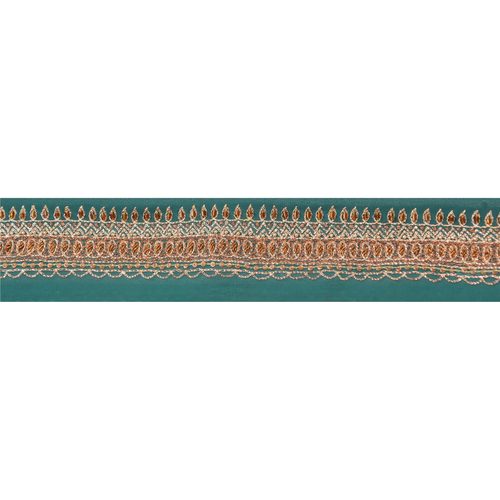 Sanskriti Vintage Border Hand Beaded 1 YD Indian Trim Ribbon Green Zari Lace