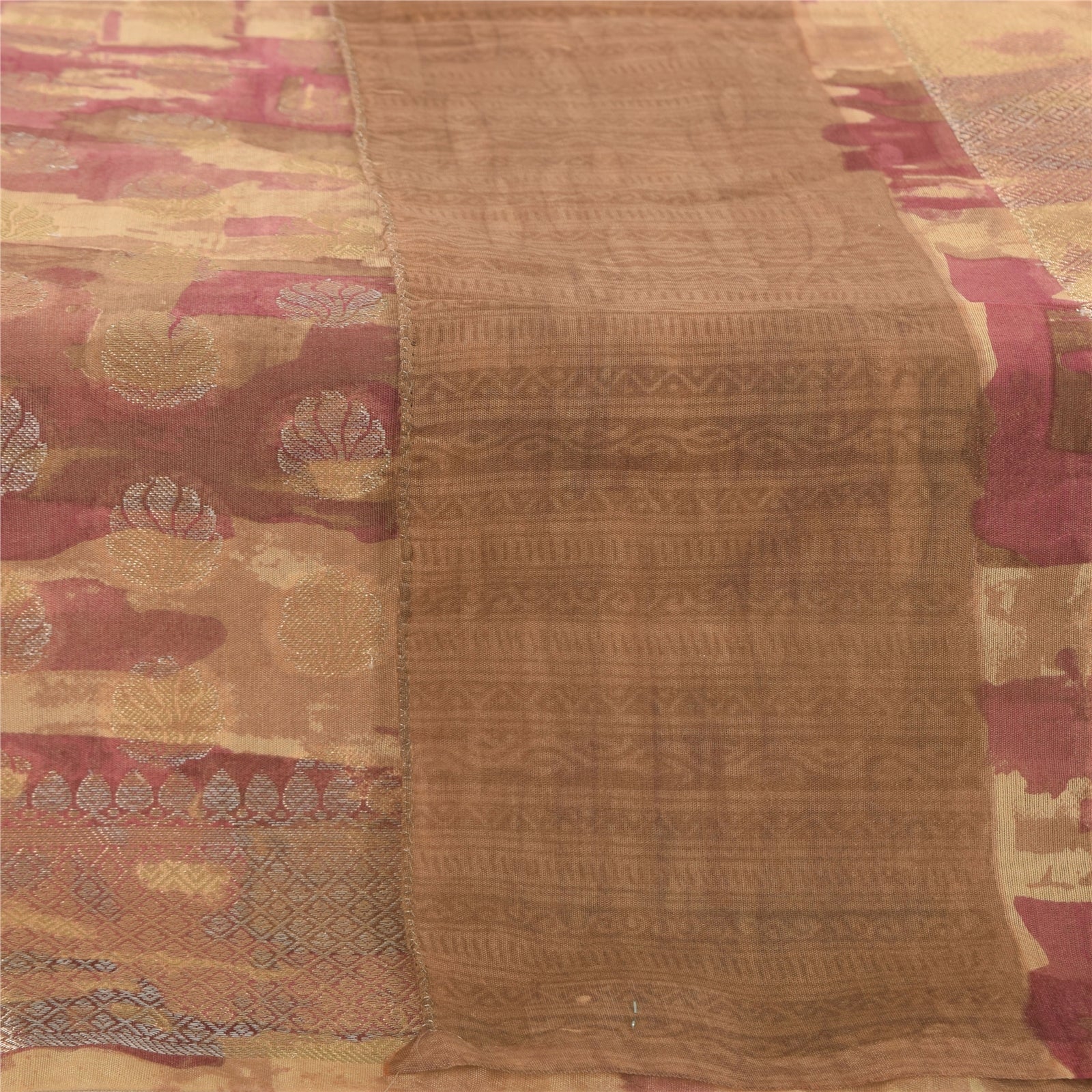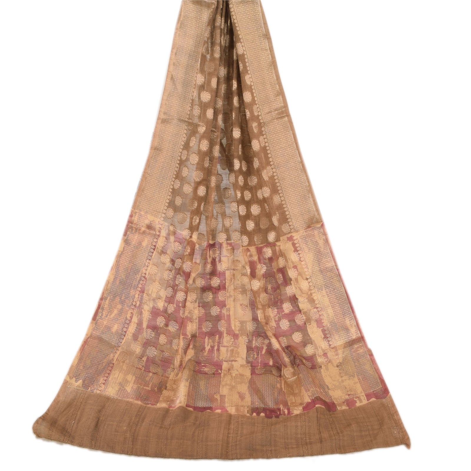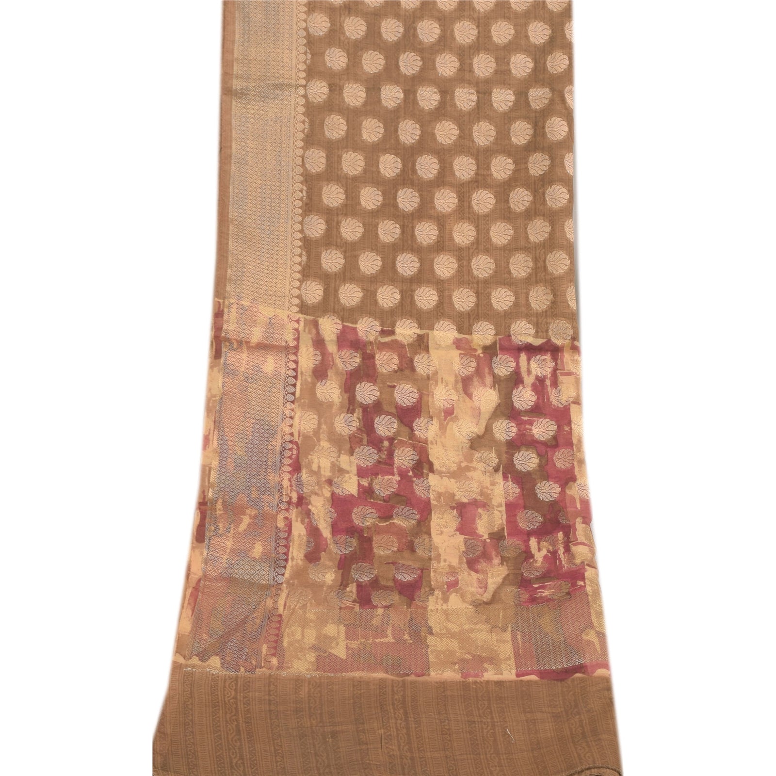 Санскрити Винтаж Коричневый Дупатта Длинный Палантин Смесовый Хлопок Тканый Набивной Накидка Фата