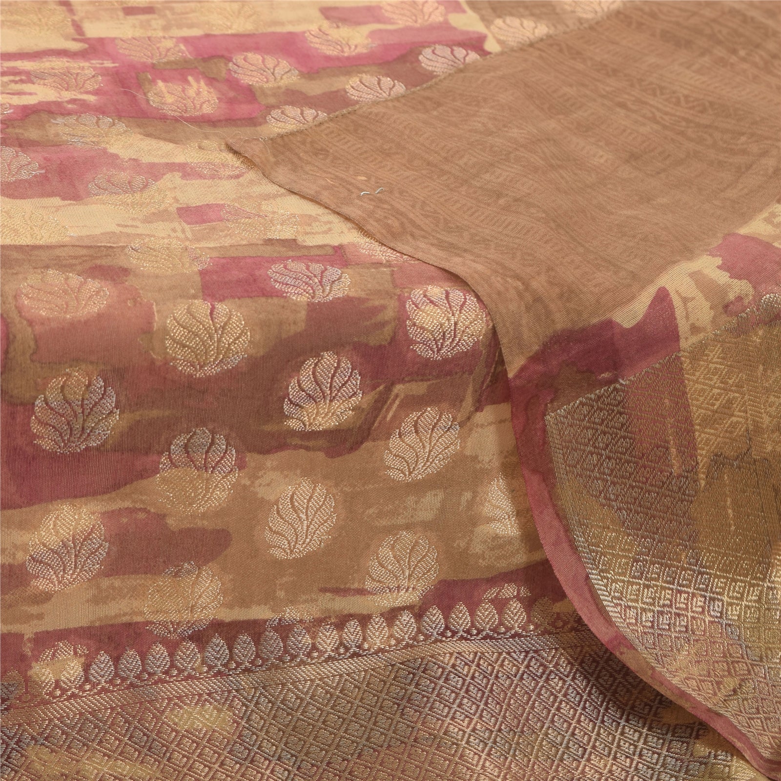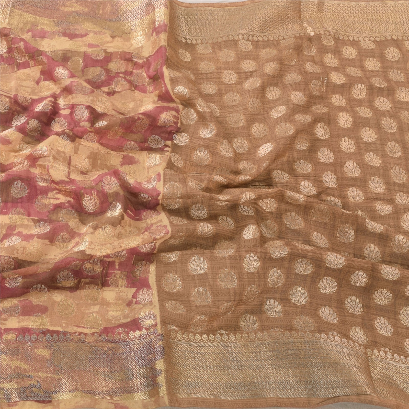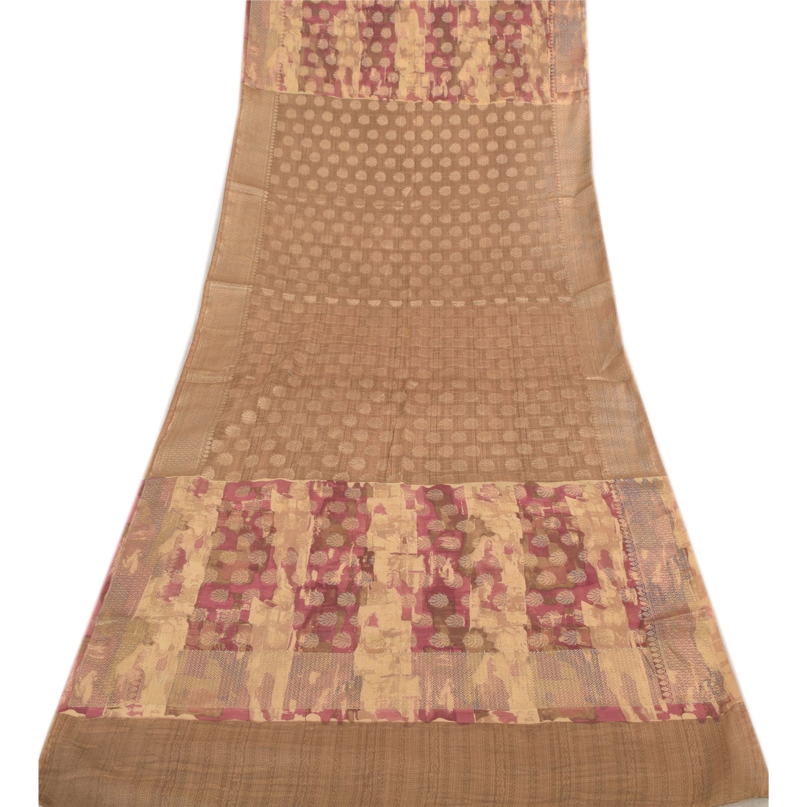 Санскрити Винтаж Коричневый Дупатта Длинный Палантин Смесовый Хлопок Тканый Набивной Накидка Фата