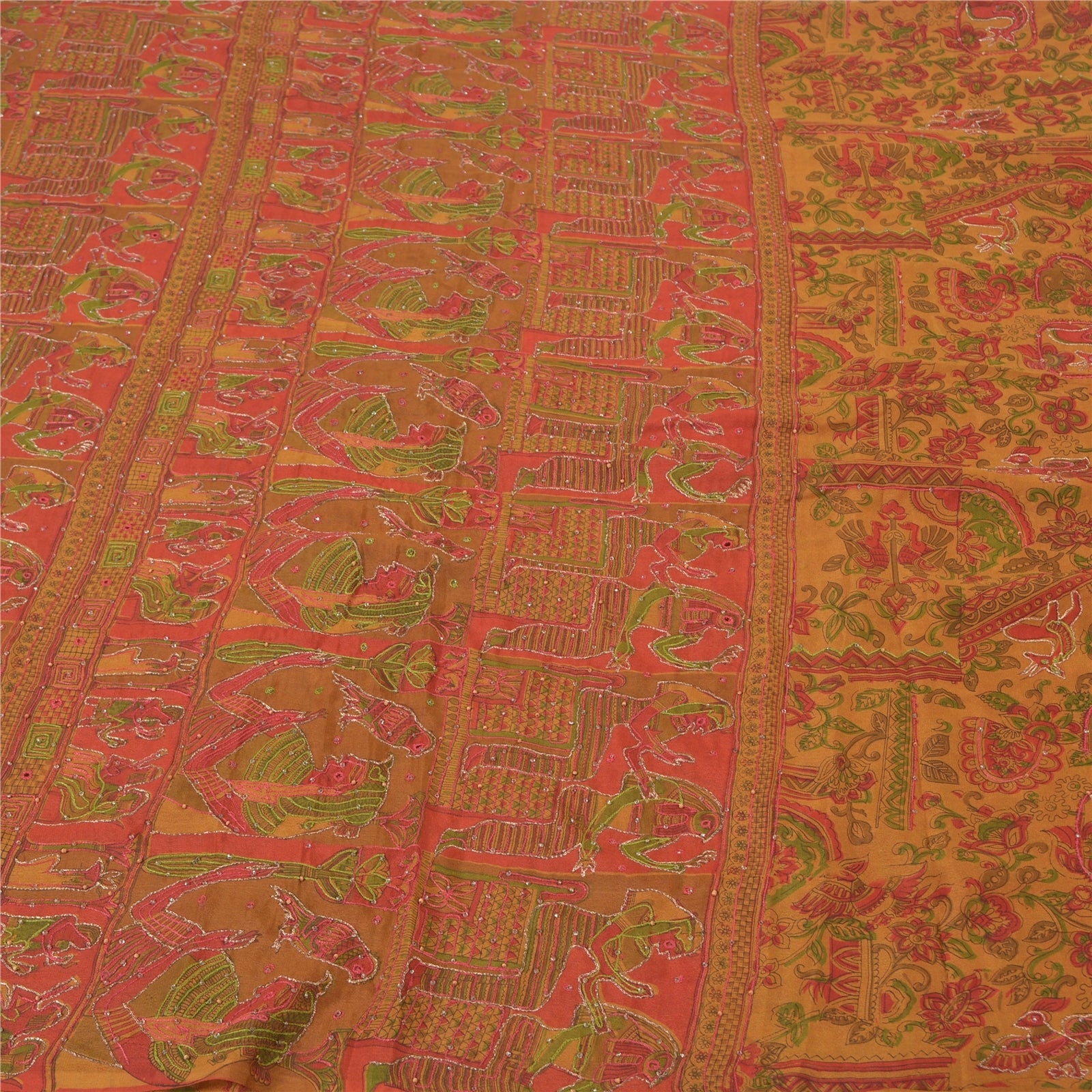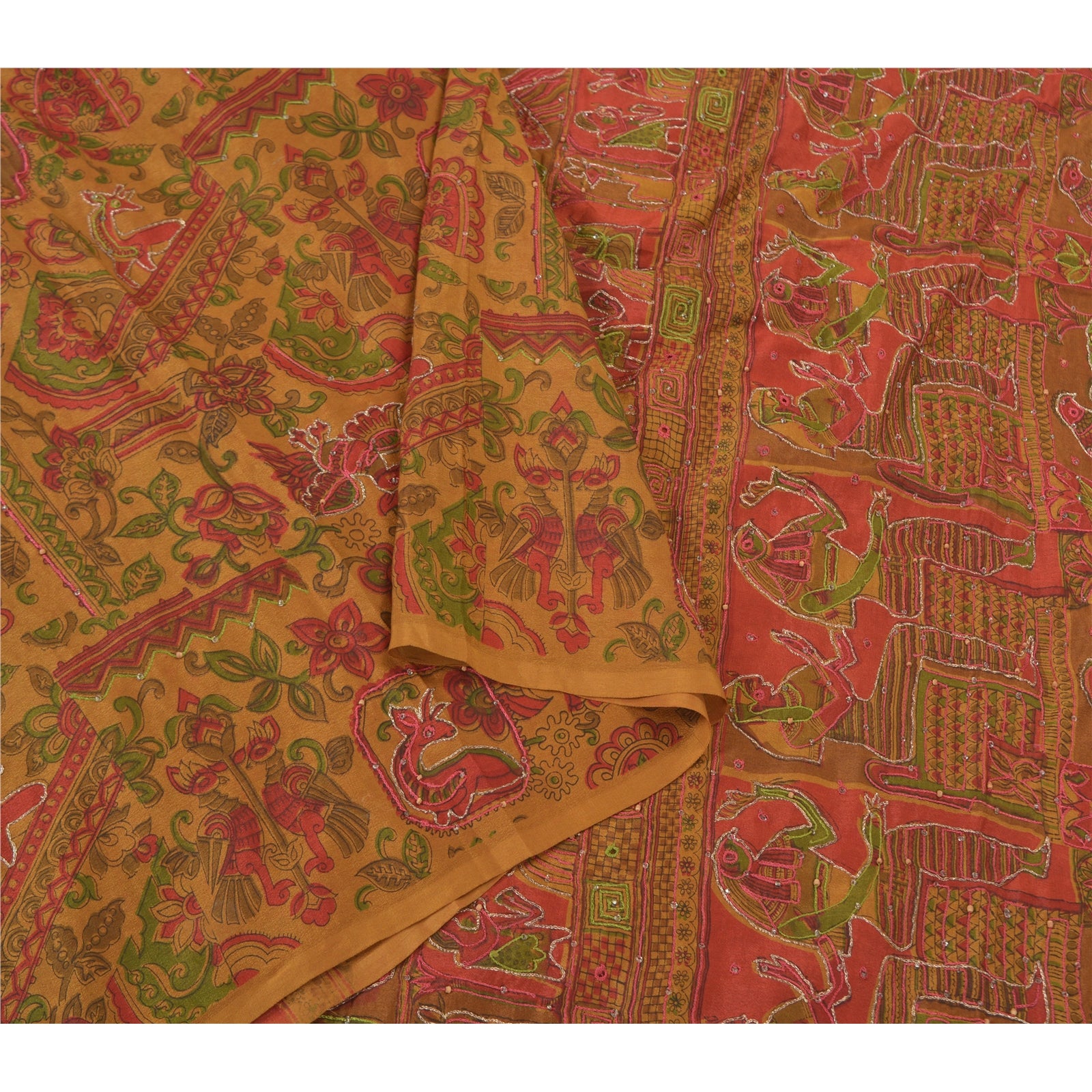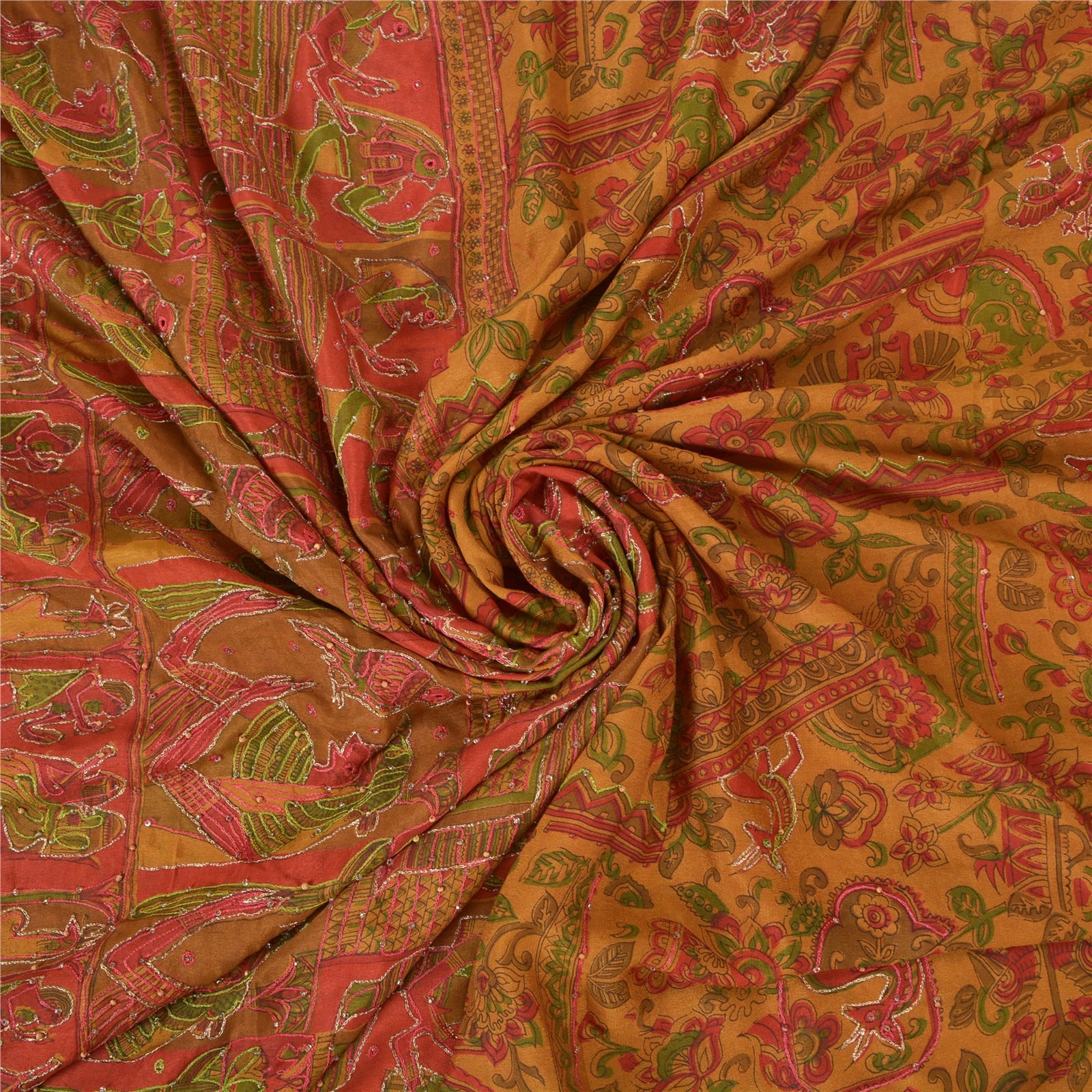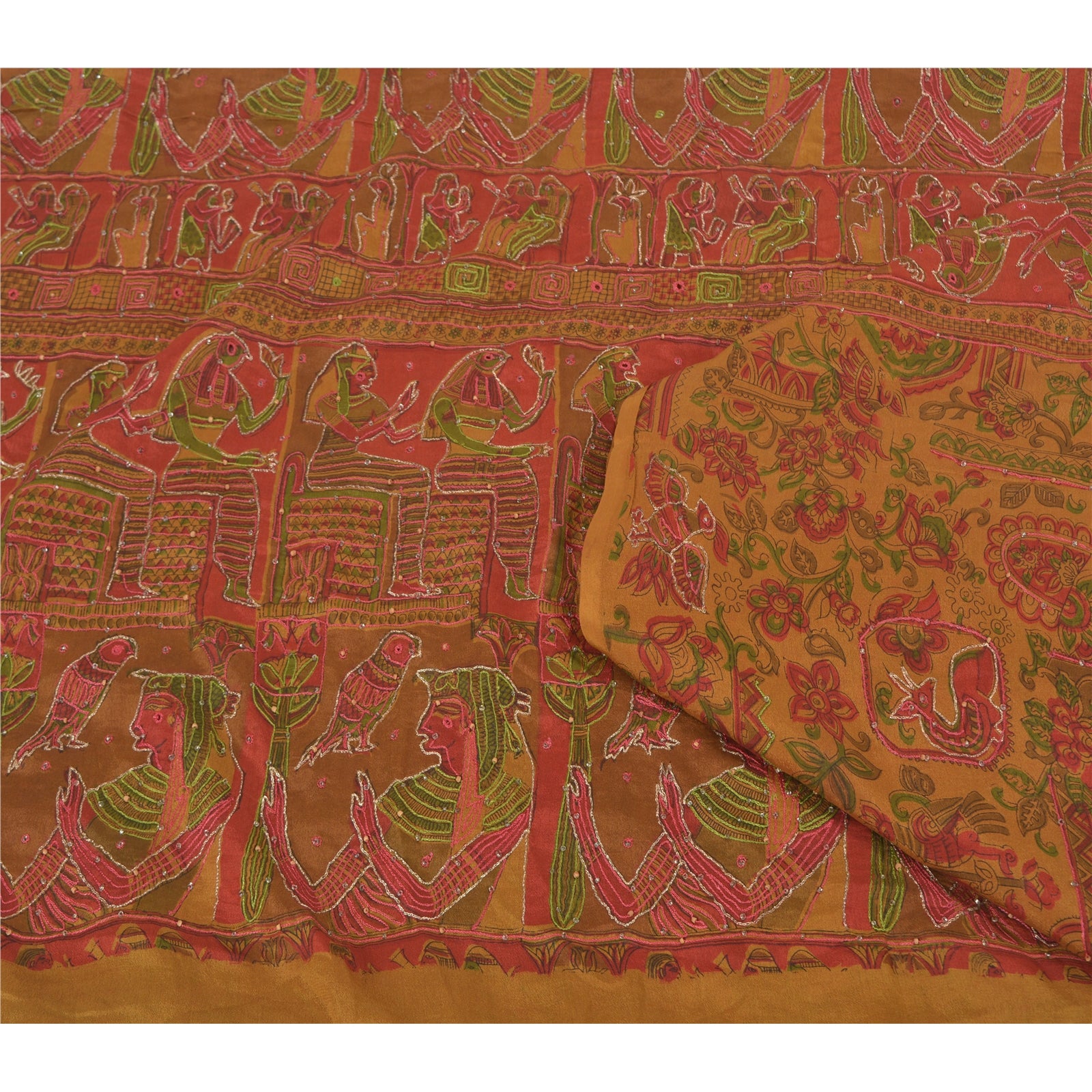 Санскритские винтажные коричневые индийские сари из чистого шелка, расшитые вручную бисером, сари из экологически чистой ткани