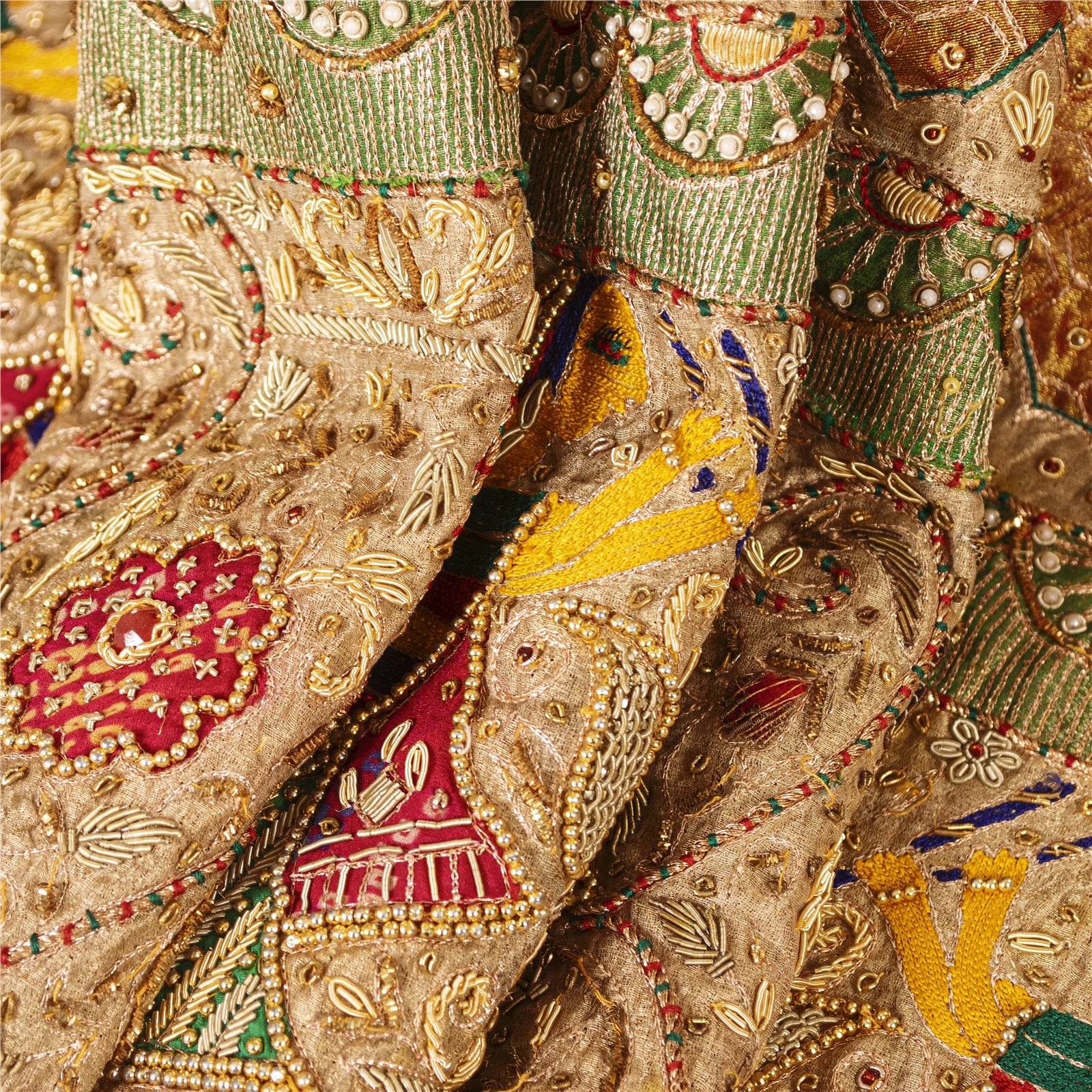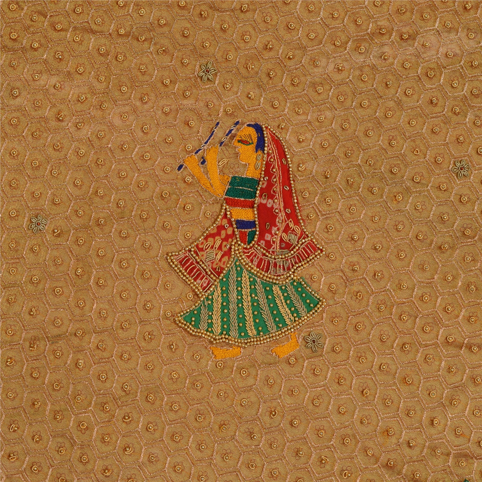 Awesome brown colored vintage artificial silk hand embroidered unstitched lehenga. Bottom of lehenga features women design embellished with pure metallic golden zardozi, thread, sequins, golden beaded & patch work. Similar work on allover lehenga. Length-40, Flare-160 inches Flaunt this heavy lehenga with ethnic tops, blouses or kurtis at parties, weddings and other occasions. A one of a kind item hard to find. Awesome craftsmanship. THE ITEM COLOR OR SHADE MAY BE DARKER OR LIGHTER THAN THE PICTURE.' International buyers please note: Import duties, taxes, and charges are not included in the item price or postage cost. Buyer will pay custom duty/tax,VAT, and any applicable charges at the time of delivery. L-777