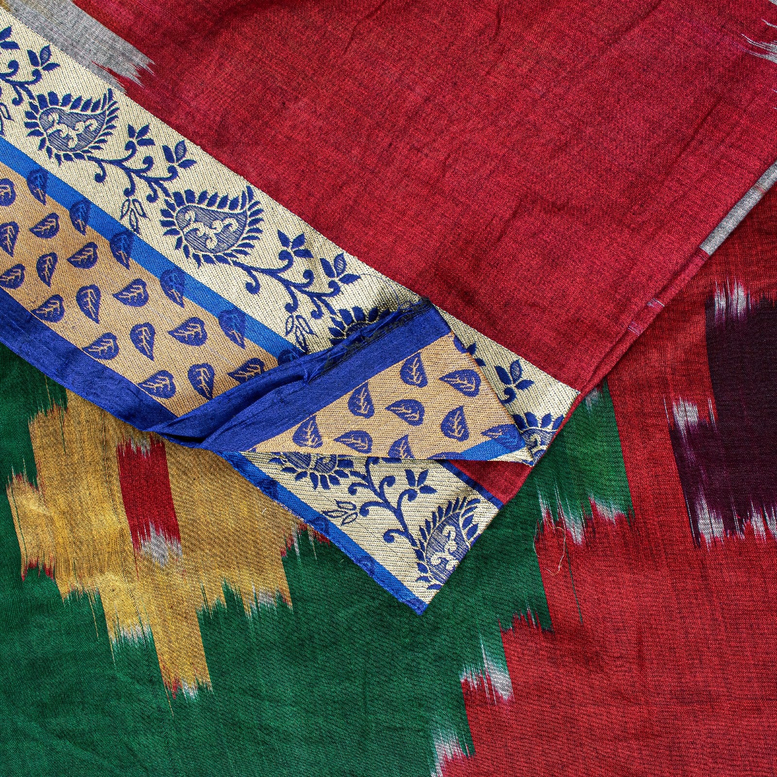 Sanskriti Vintage Brown Red Pure Cotton Ikat Saree Handwoven Geometric 5+YD Sari