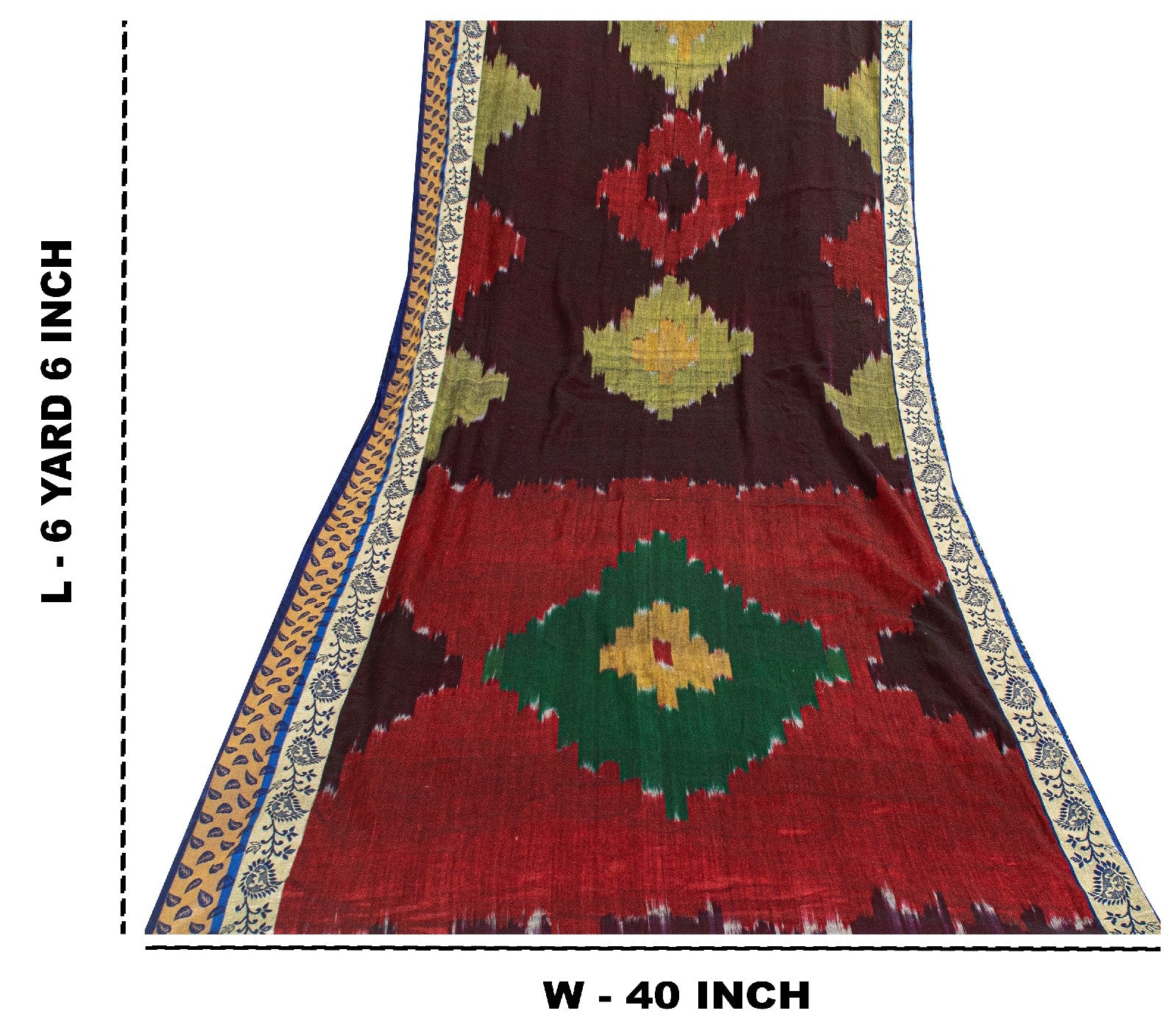 Brand: Fabric: 100% Pure Cotton Weave: Handwoven Ikat Pattern: Geometric Ikat Motifs Primary Colors: Brown & Red Length: 5+ Yards (Approx.) Width: Standard Saree Width Texture: Soft, Breathable, Lightweight Cotton Condition: Vintage / Pre-Owned (May Show Gentle Age-Related Marks) Style Use: Saree Drape, Dressmaking, Quilting, Upholstery, Crafts, Textile Art Origin: India Wash Care: Dry Clean Recommended The Item Color Or Shade May Be Darker Or Lighter Than The Picture.' International Buyers Please Note: Import Duties, Taxes, And Charges Are Not Included In The Item Price Or Postage Cost. Buyer Will Pay Custom Duty/Tax,Vat, And Any Applicable Charges At The Time Of Delivery. Pcs-7572