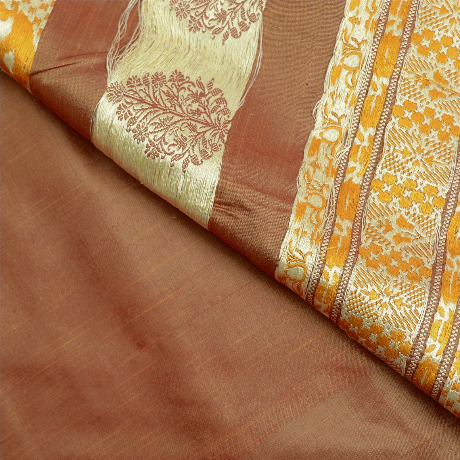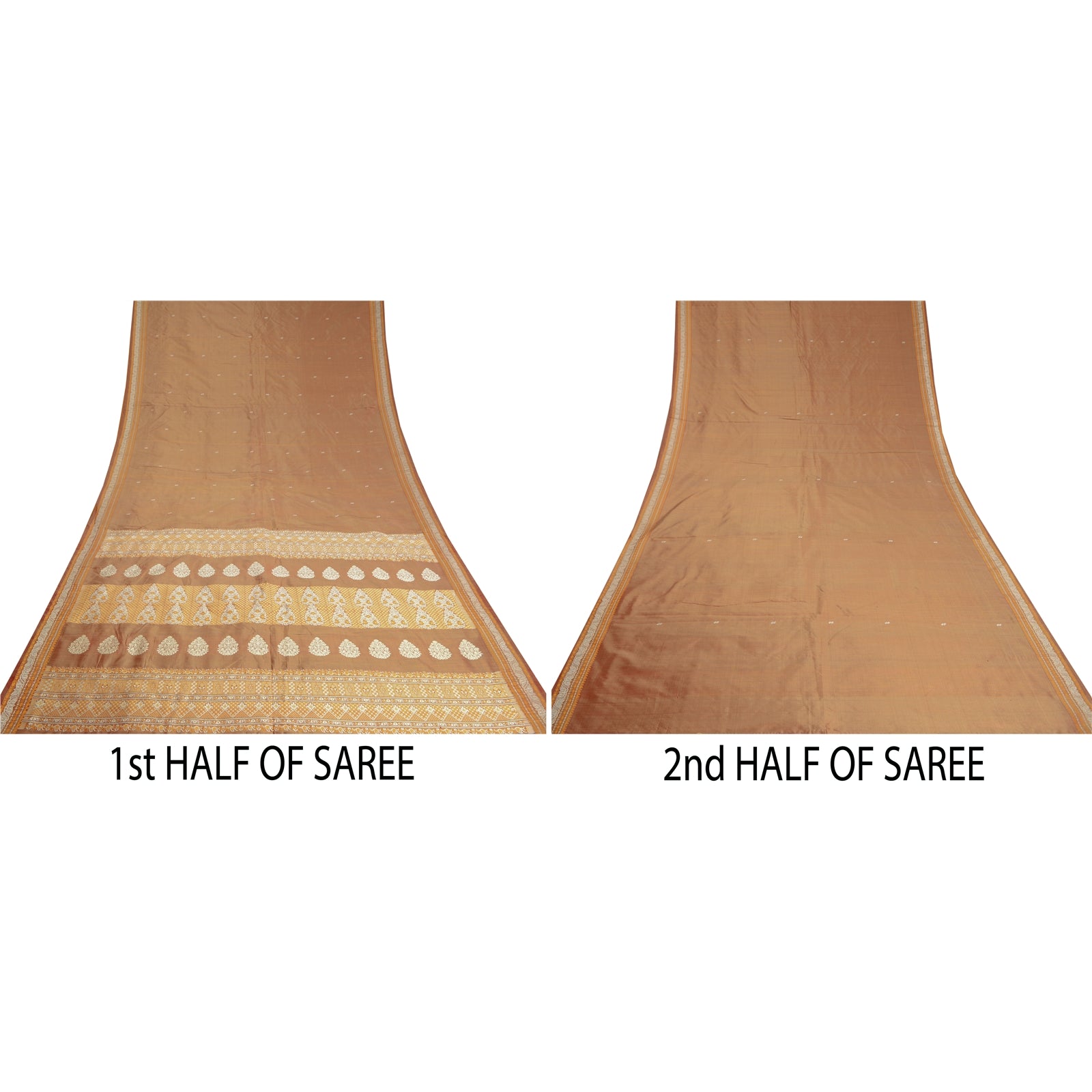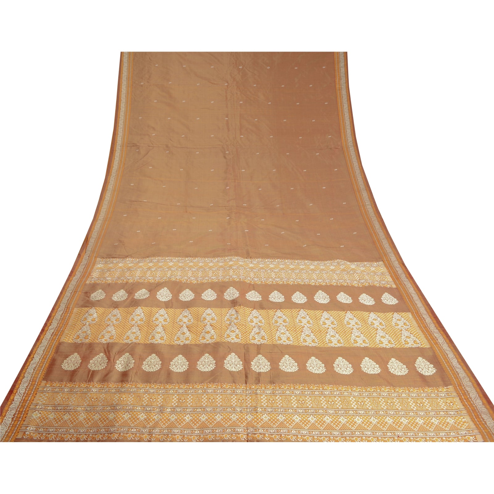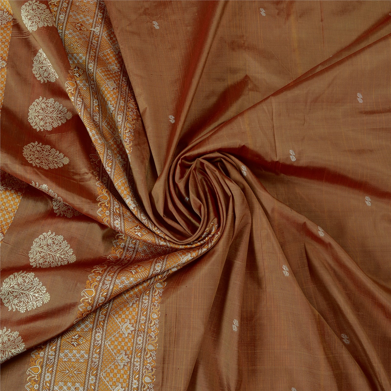 Санскритские винтажные коричневые сари 100% чистый шелк тканый премиальный сари ремесло устойчивая ткань