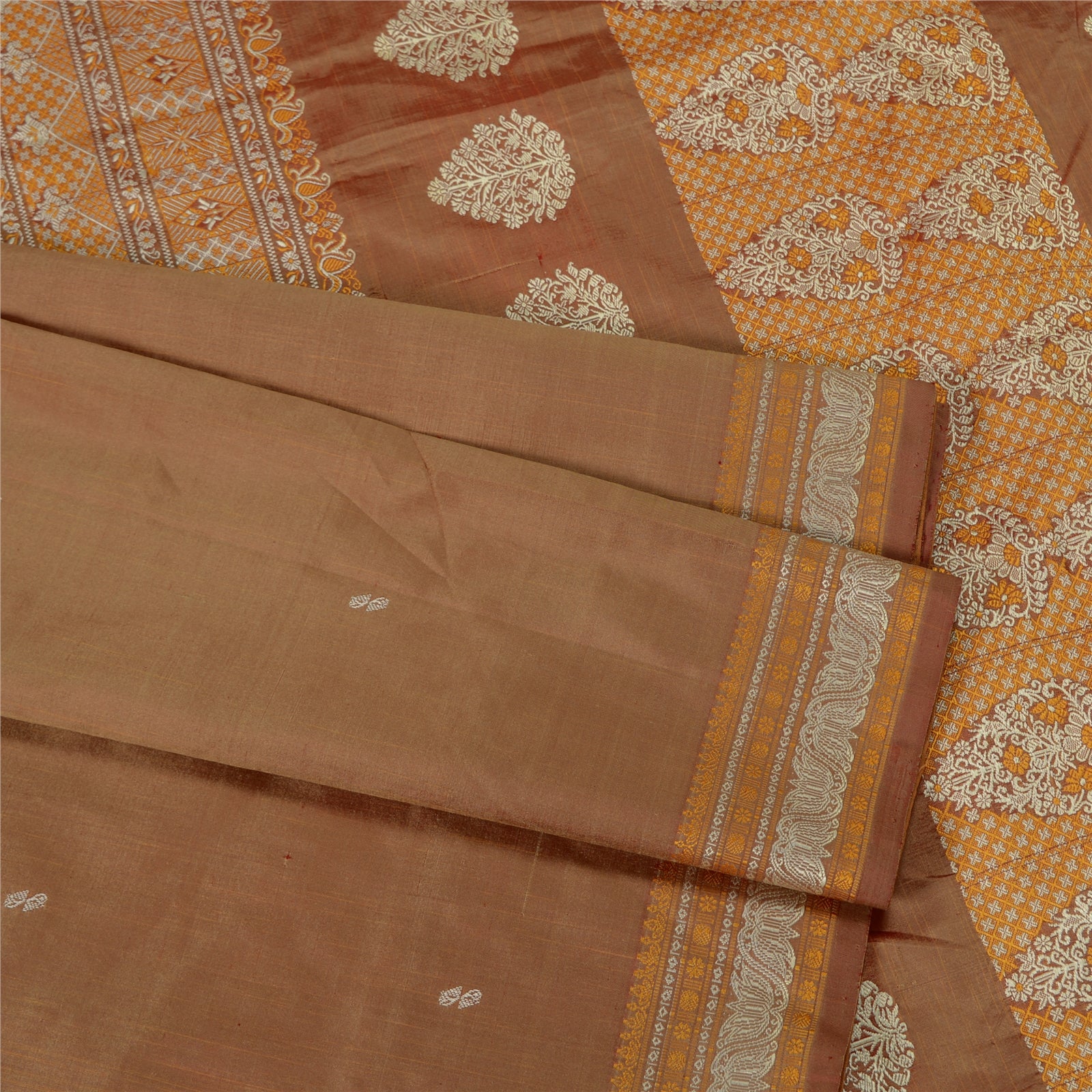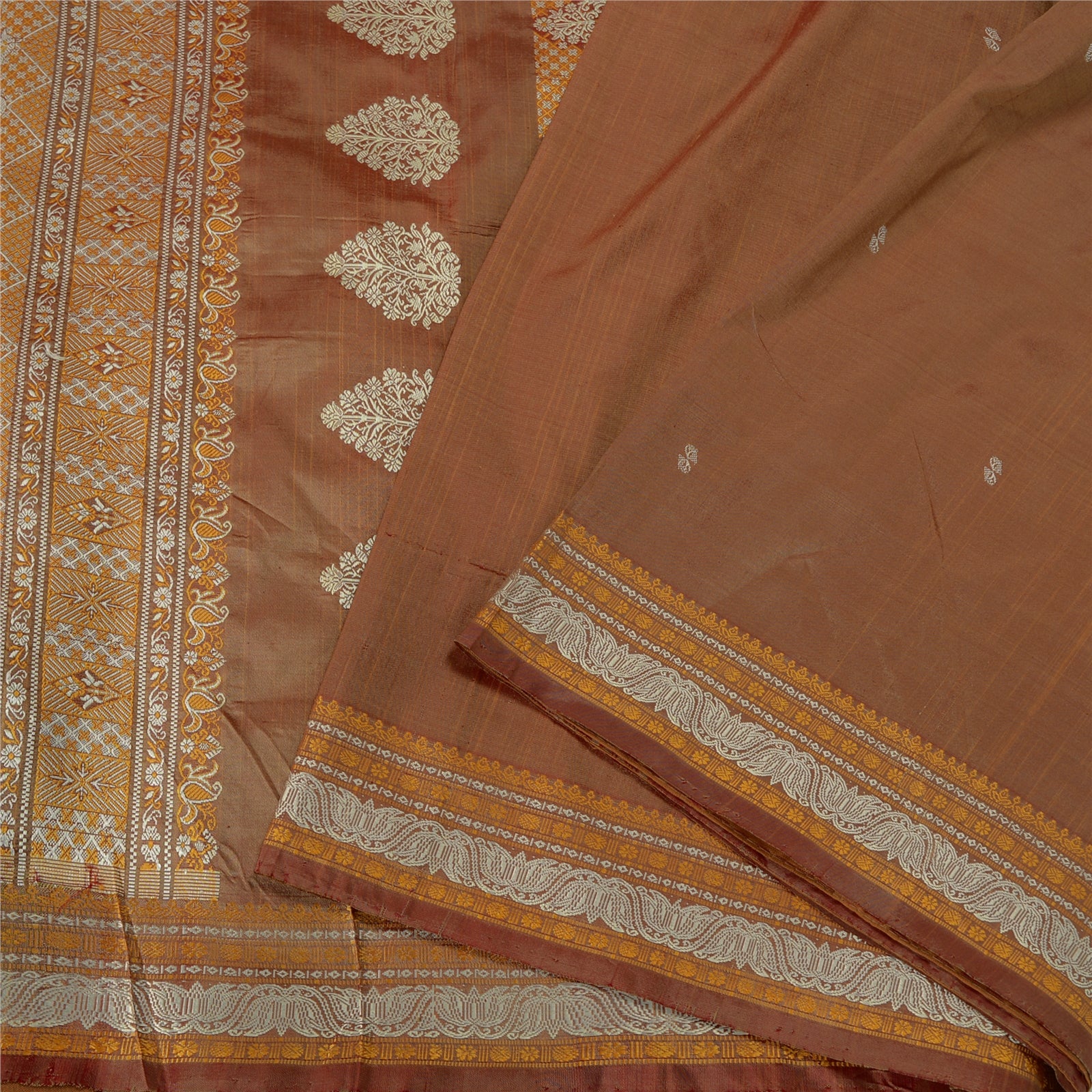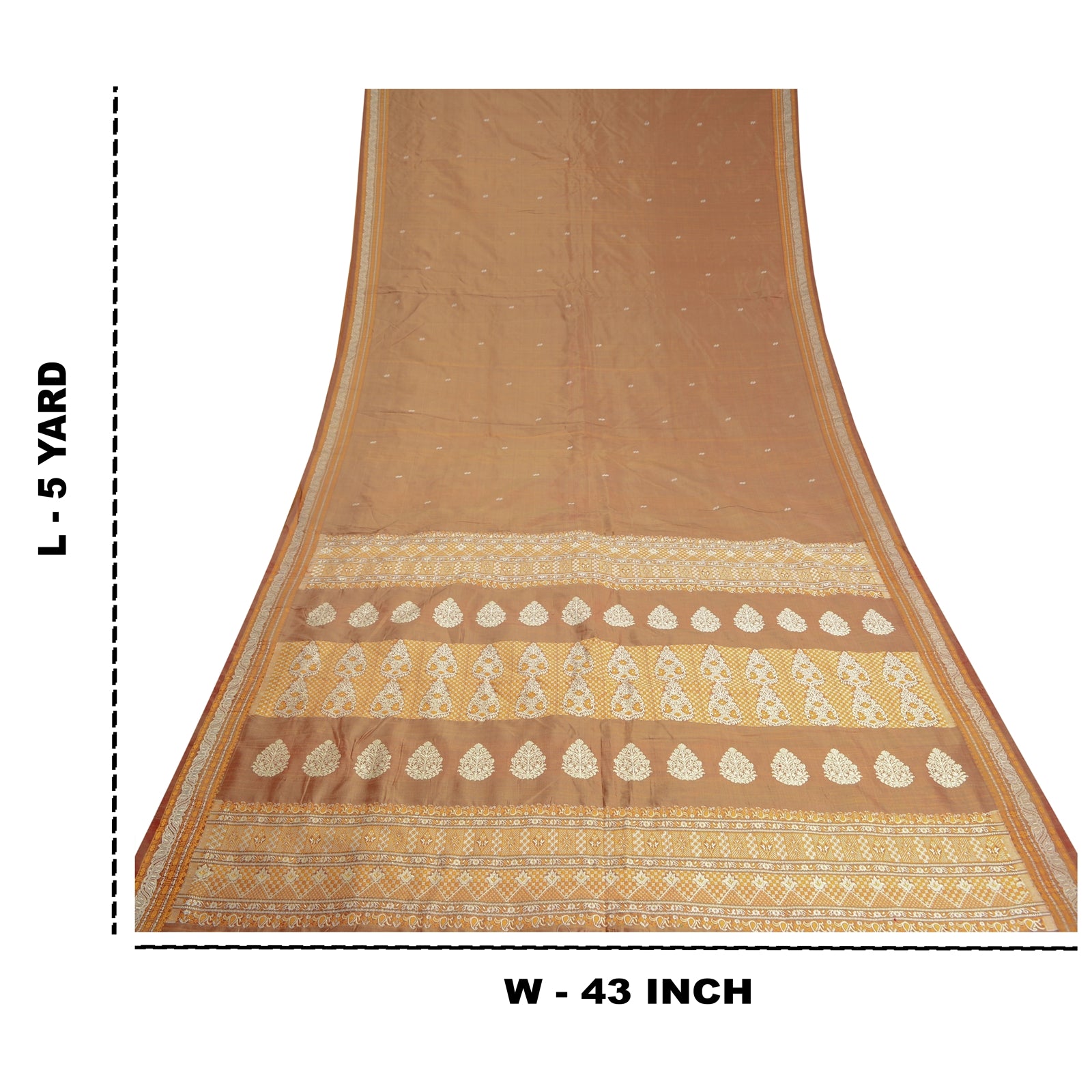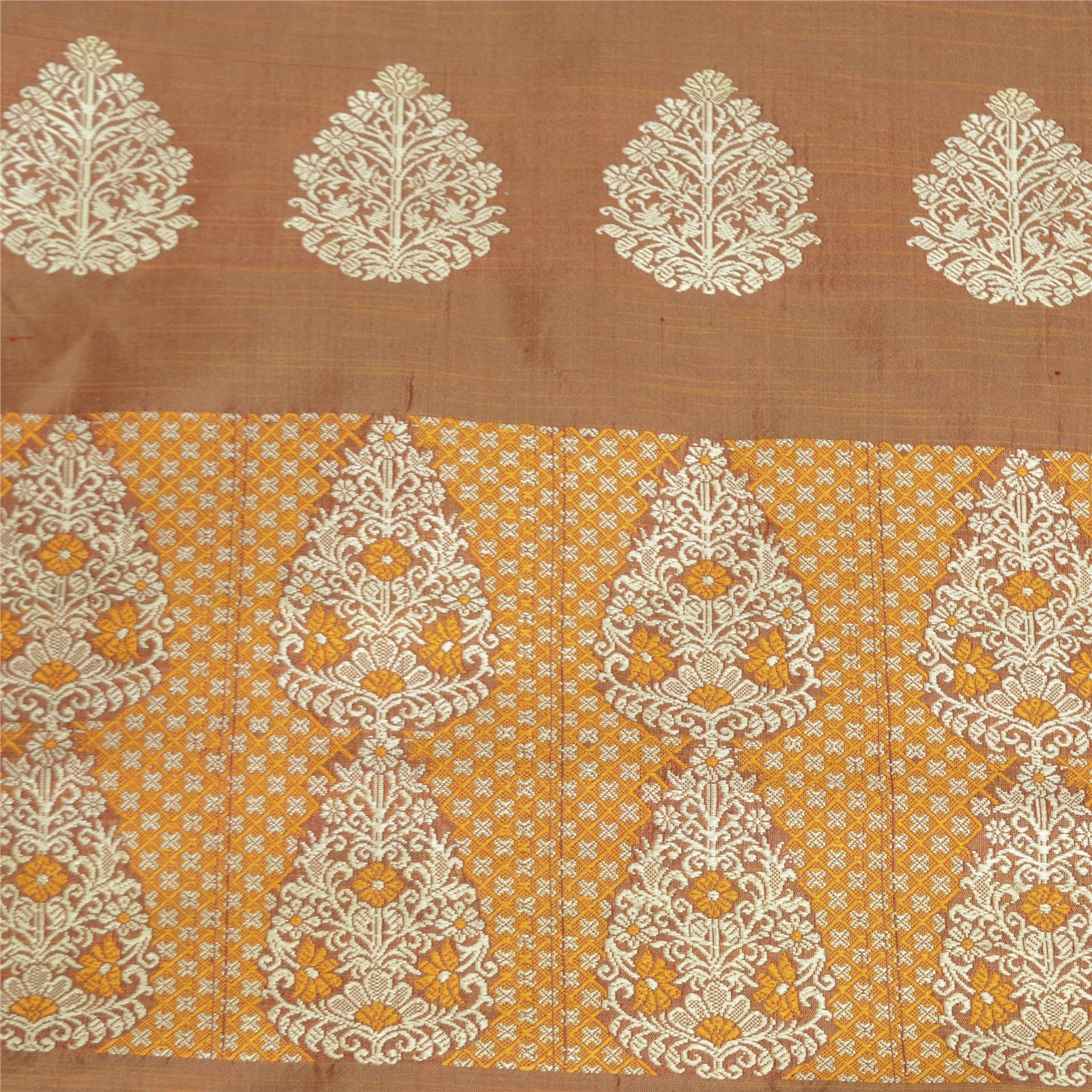 Санскритские винтажные коричневые сари 100% чистый шелк тканый премиальный сари ремесло устойчивая ткань