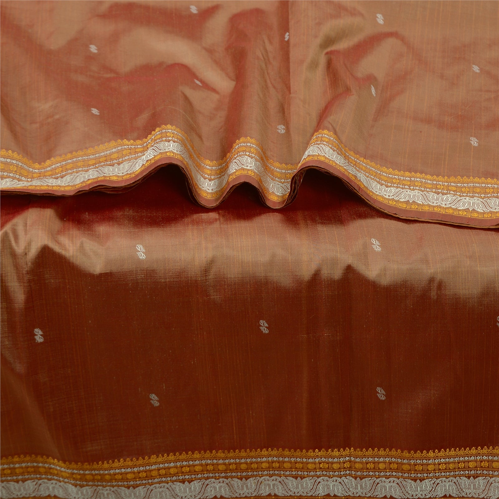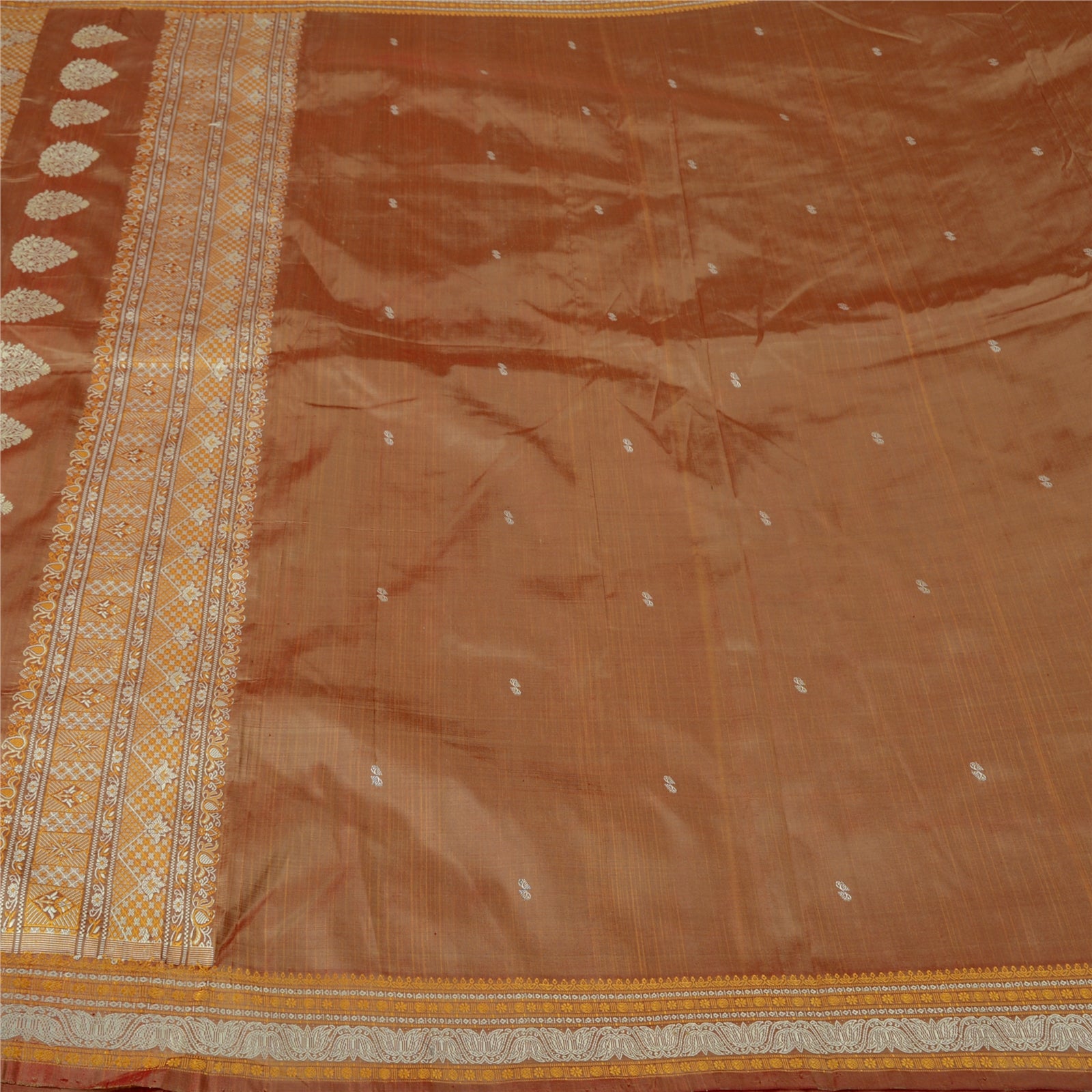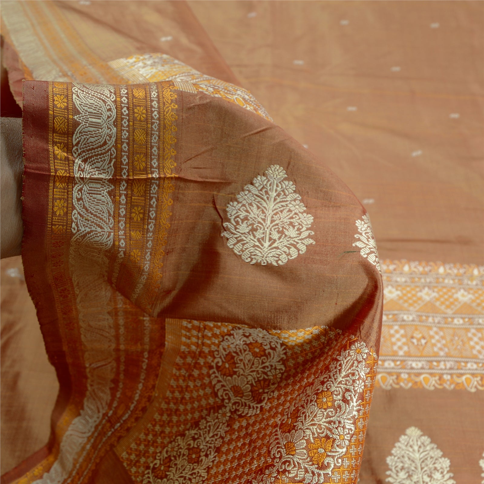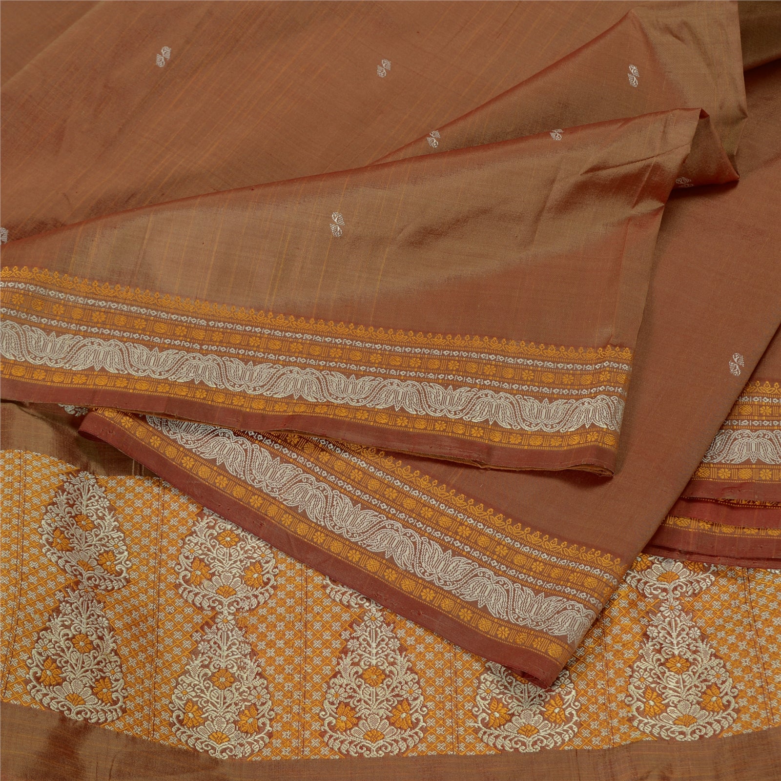 Санскритские винтажные коричневые сари 100% чистый шелк тканый премиальный сари ремесло устойчивая ткань