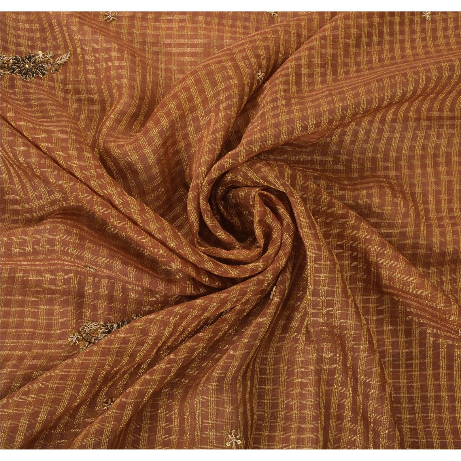 Sanskriti Vintage Brown Sarees Georgette Hand Beaded Craft Fabric Premium Sari