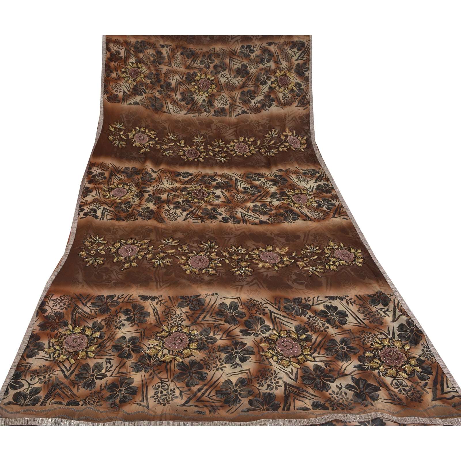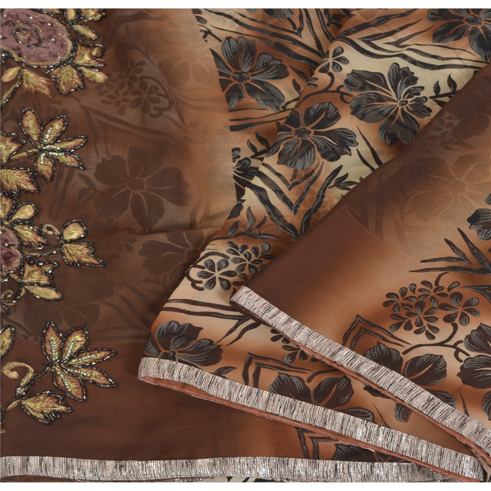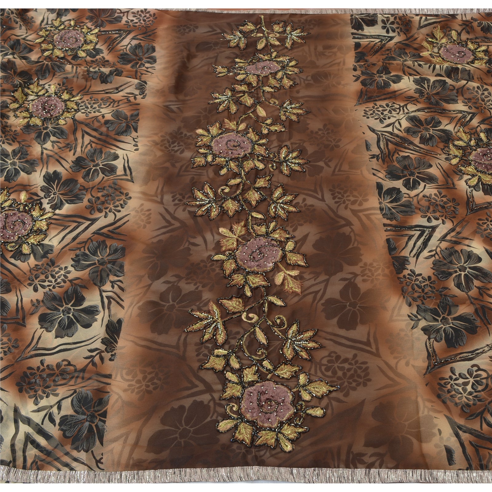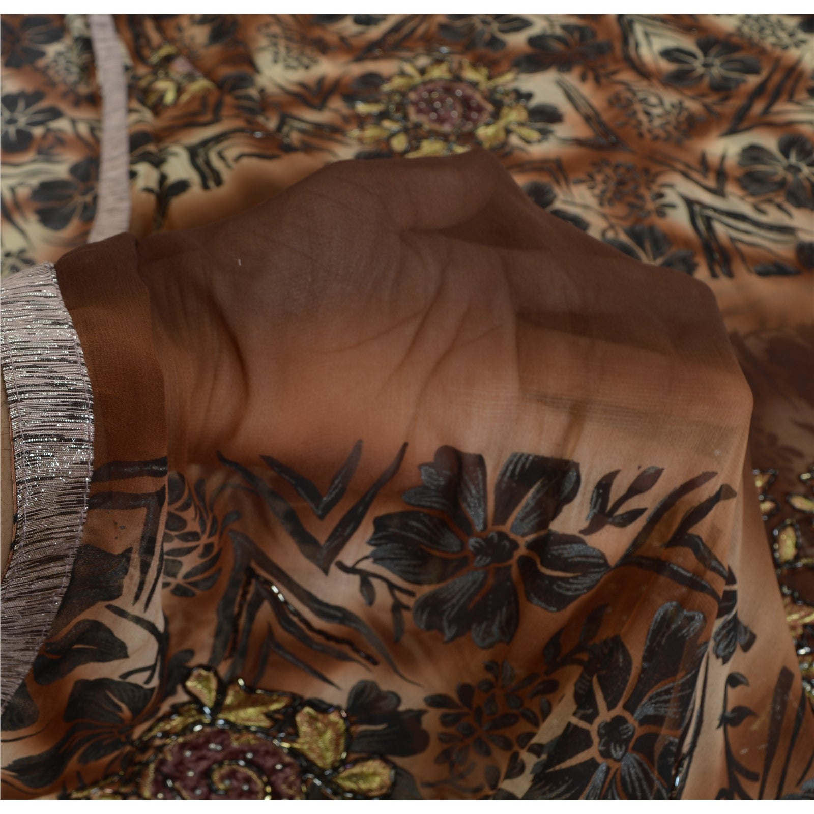 Sanskriti Vintage Brown Sarees Georgette Hand Beaded Premium Sari Craft Fabric