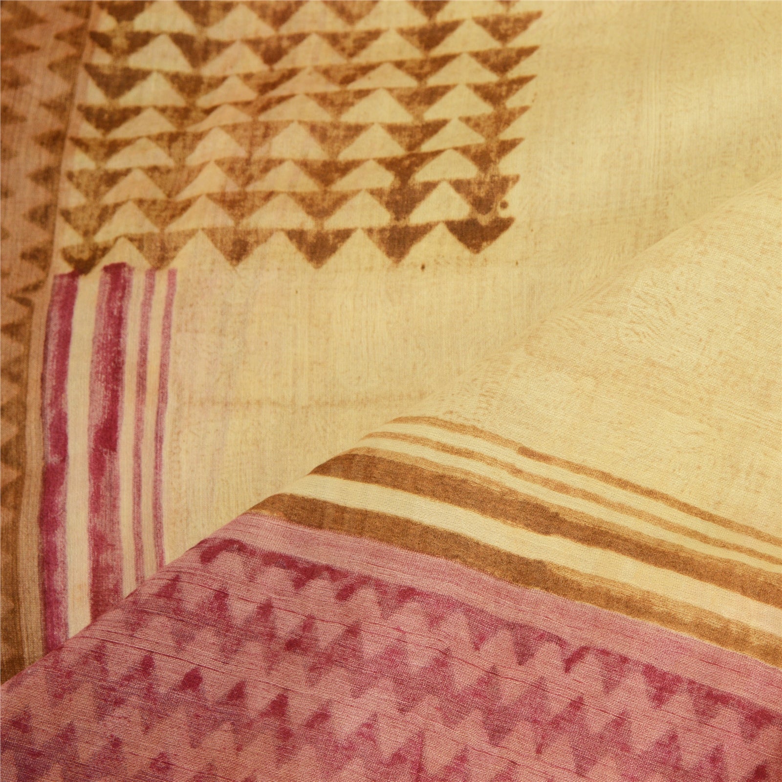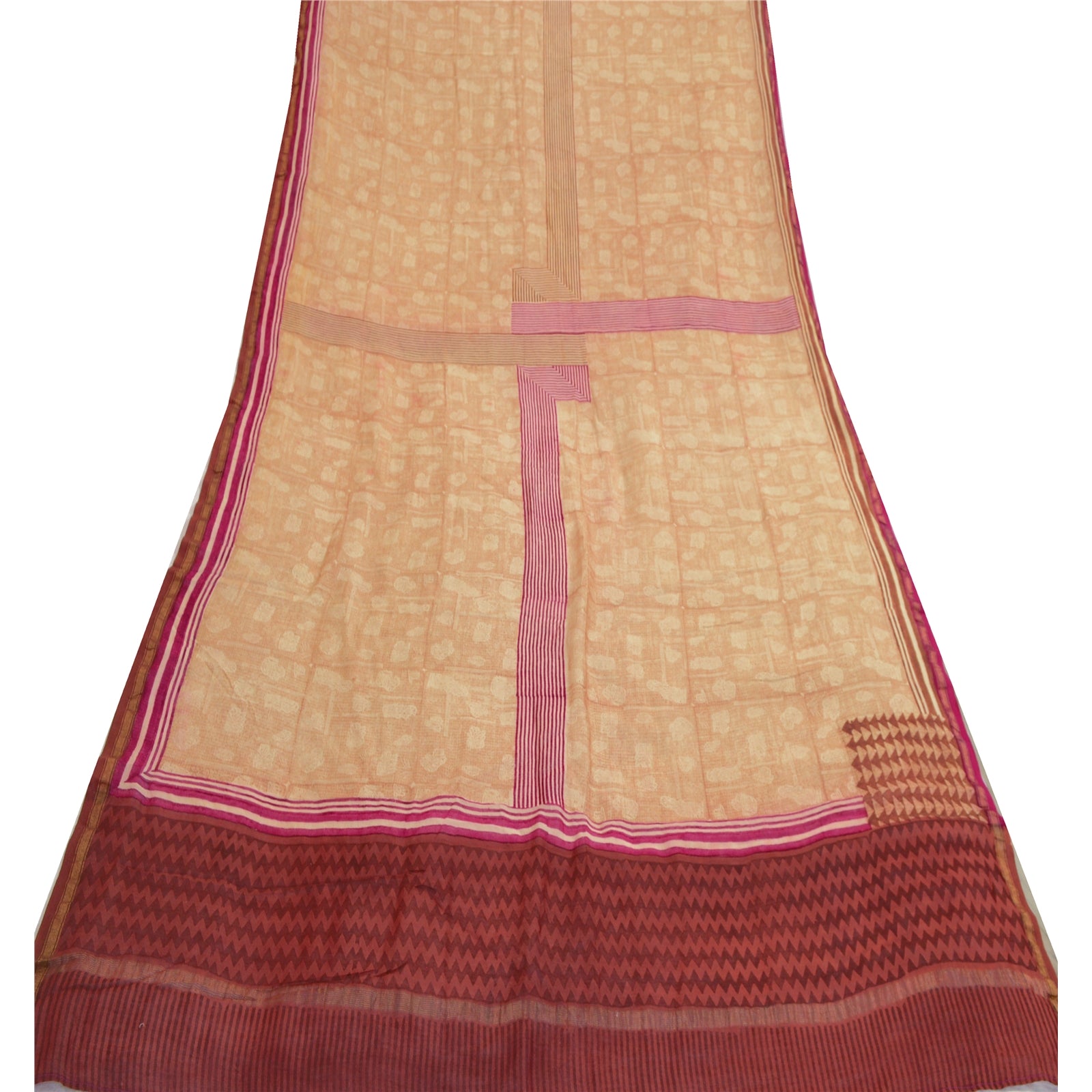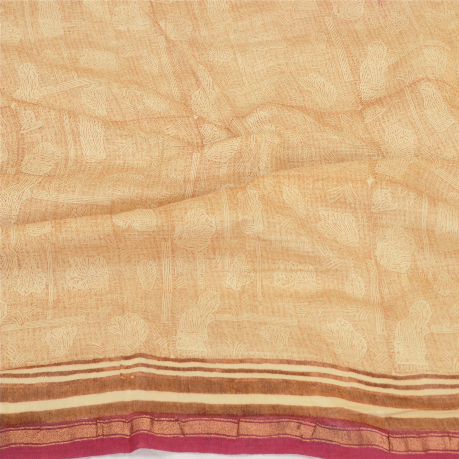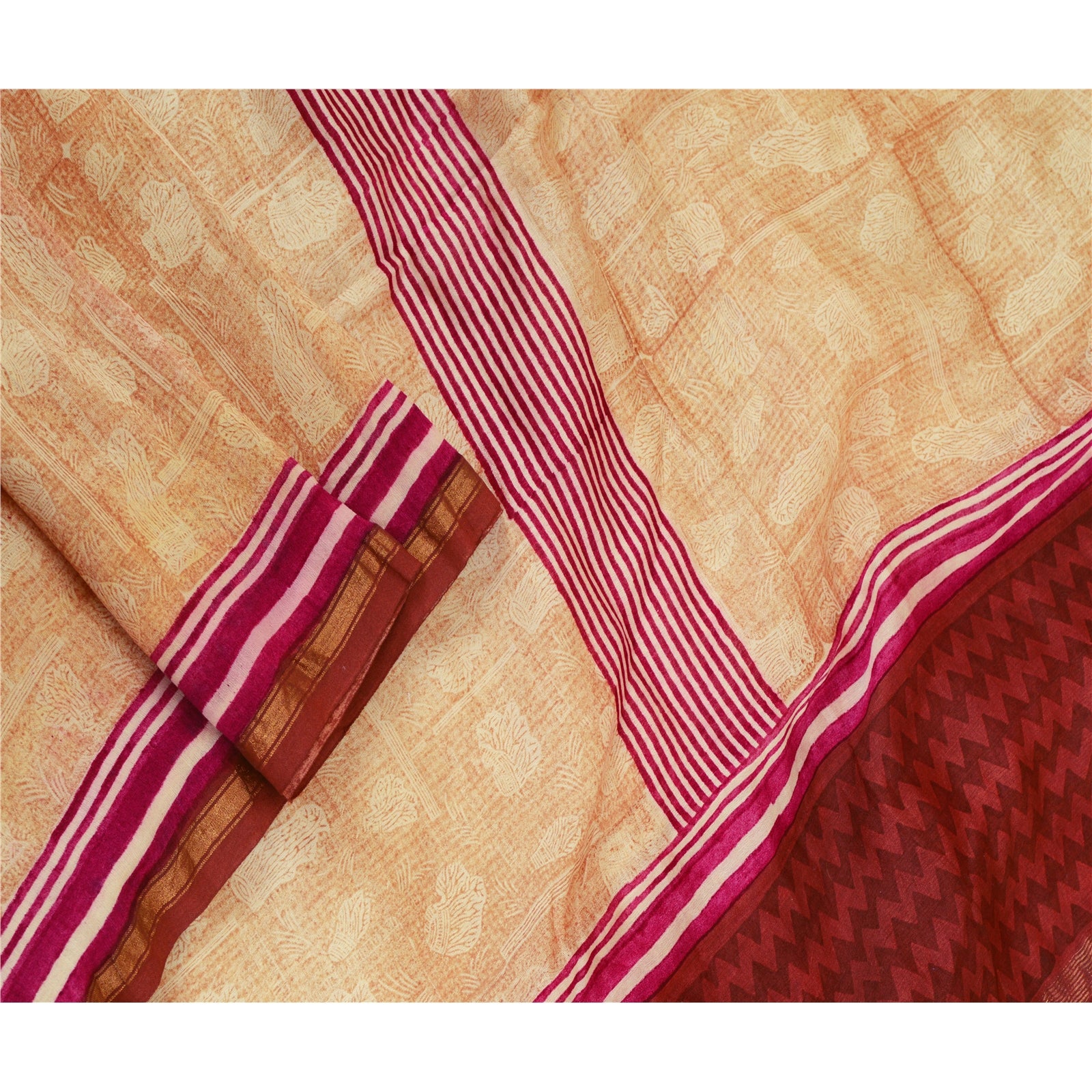 Санскрити Винтаж Кремовый/Темно-красный Длинный Палантин Дупатта Чистый Шелковый Набивной Шарф