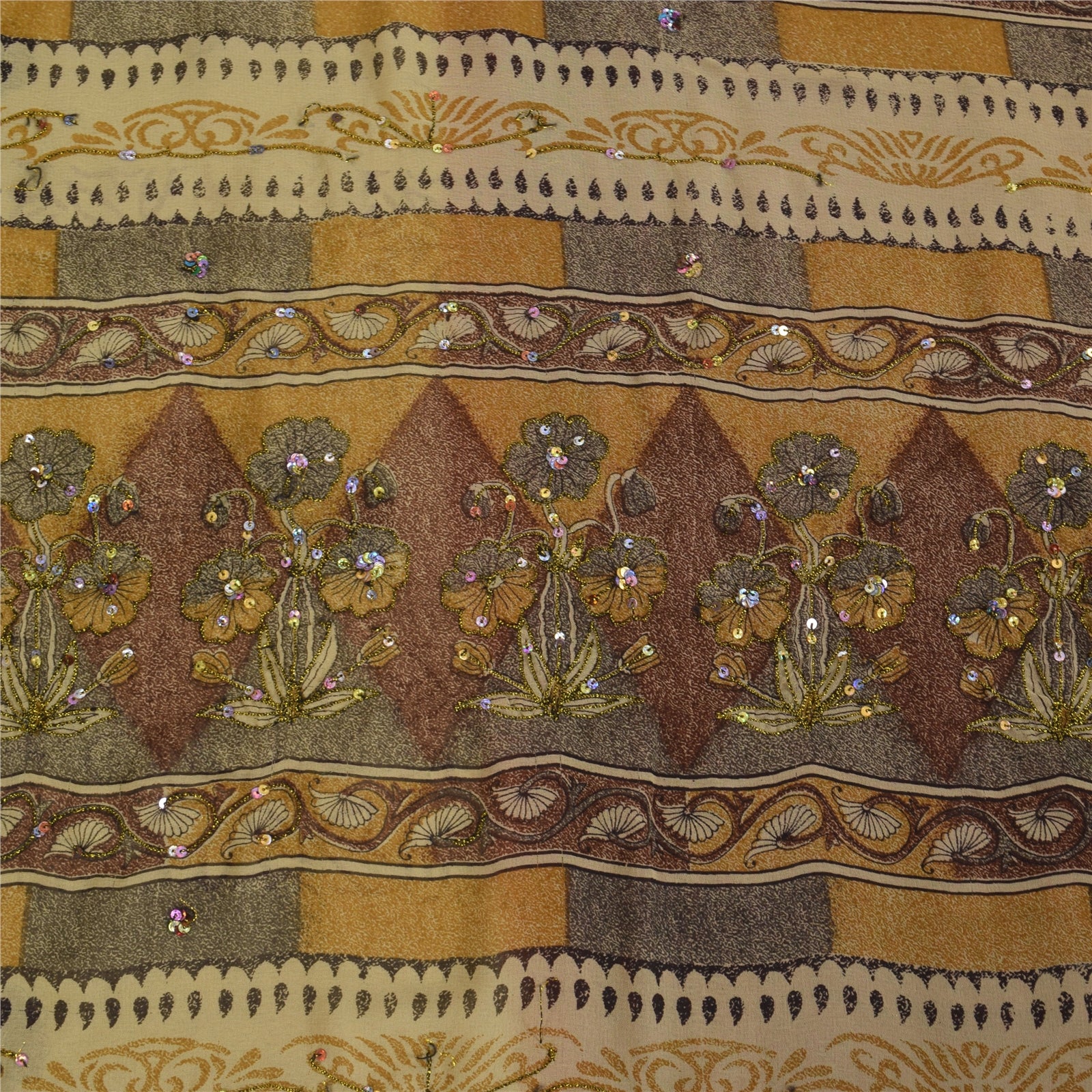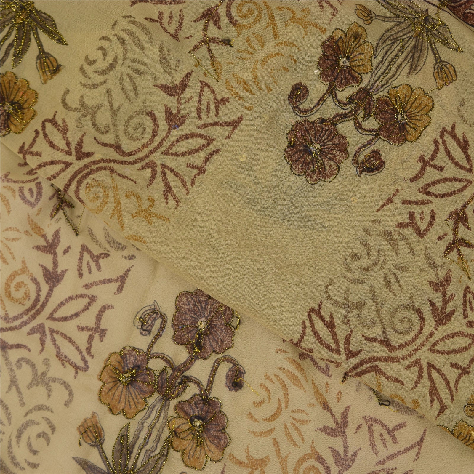 Sanskriti Vintage Cream Sarees Georgette Hand Beaded Premium Sari Craft Fabric
