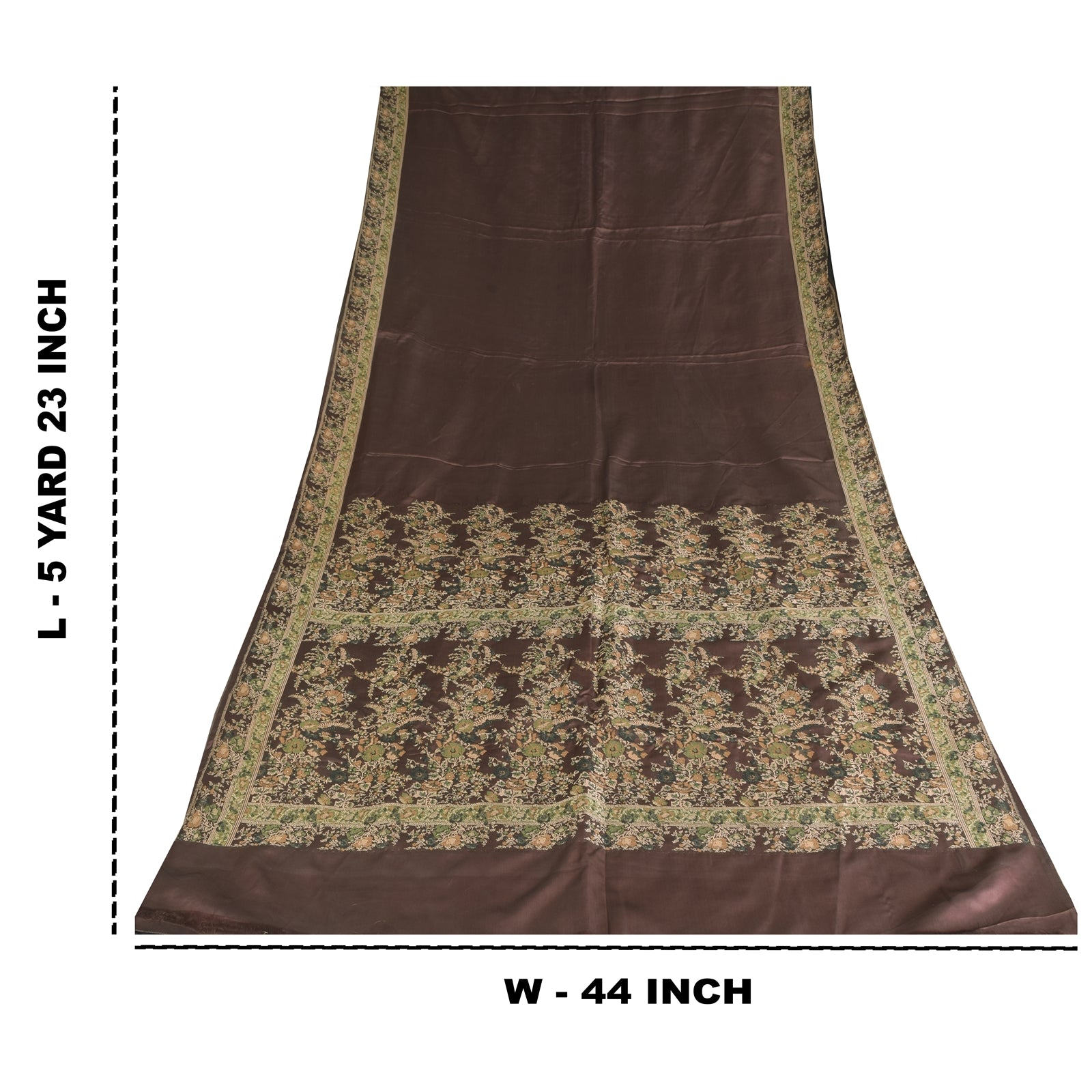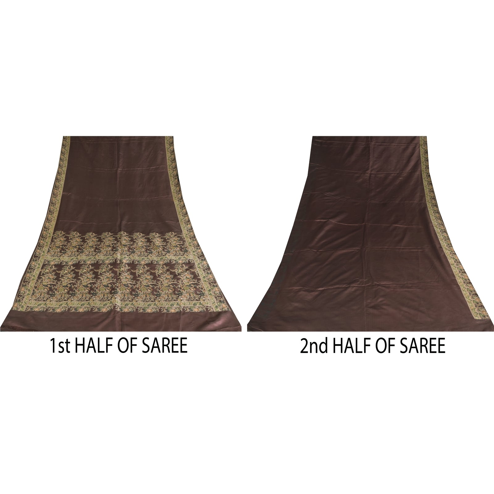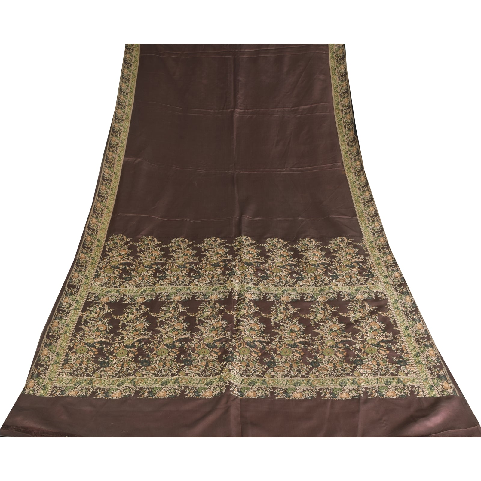 Санскритские винтажные темно-коричневые сари из чистого шелка с вышивкой 5 ярдов ткань для рукоделия из экологически чистой ткани