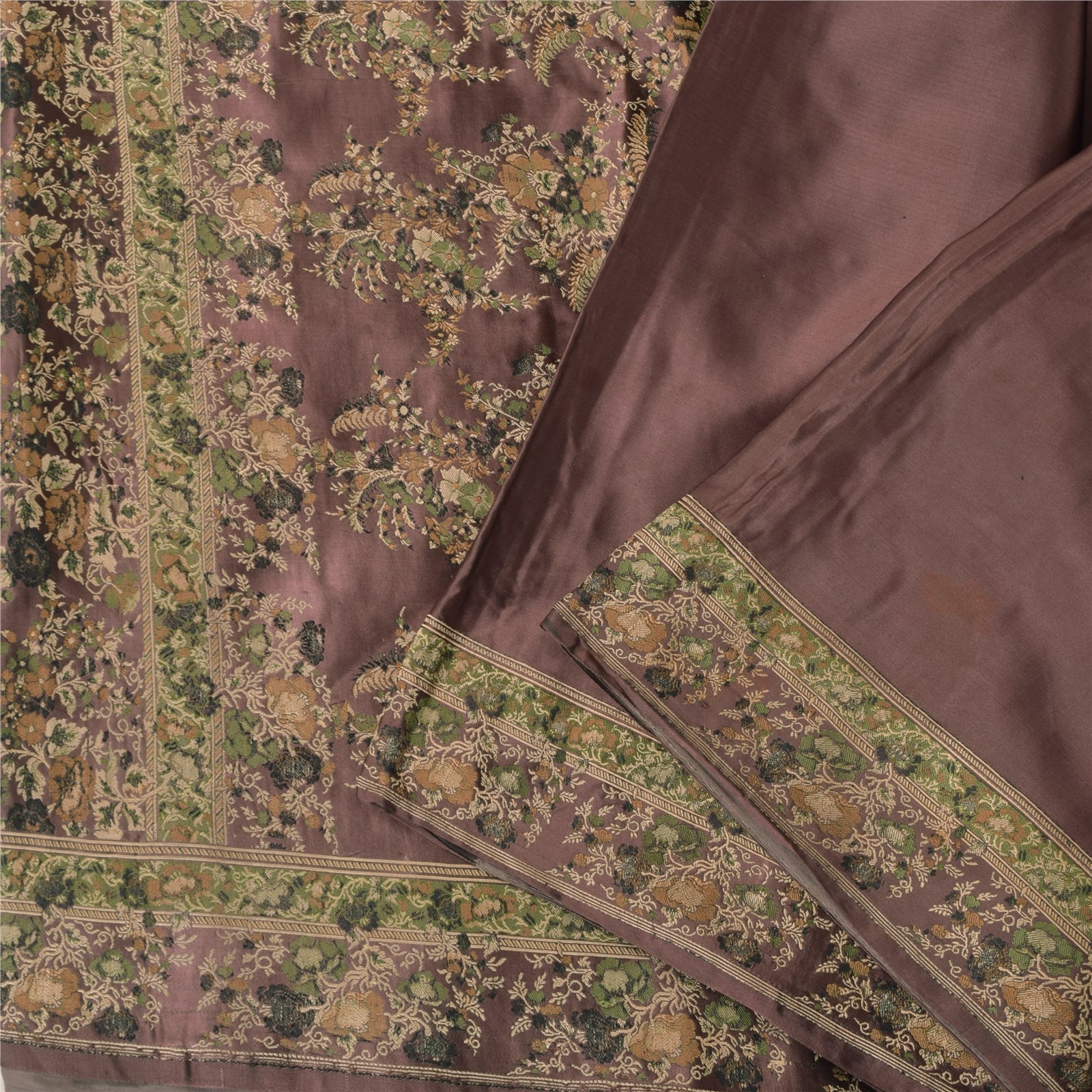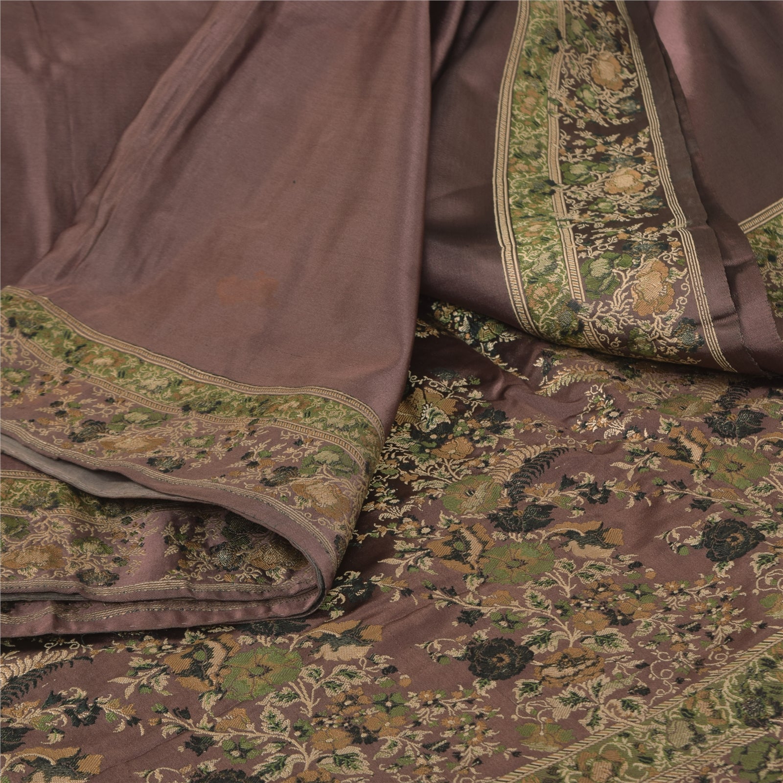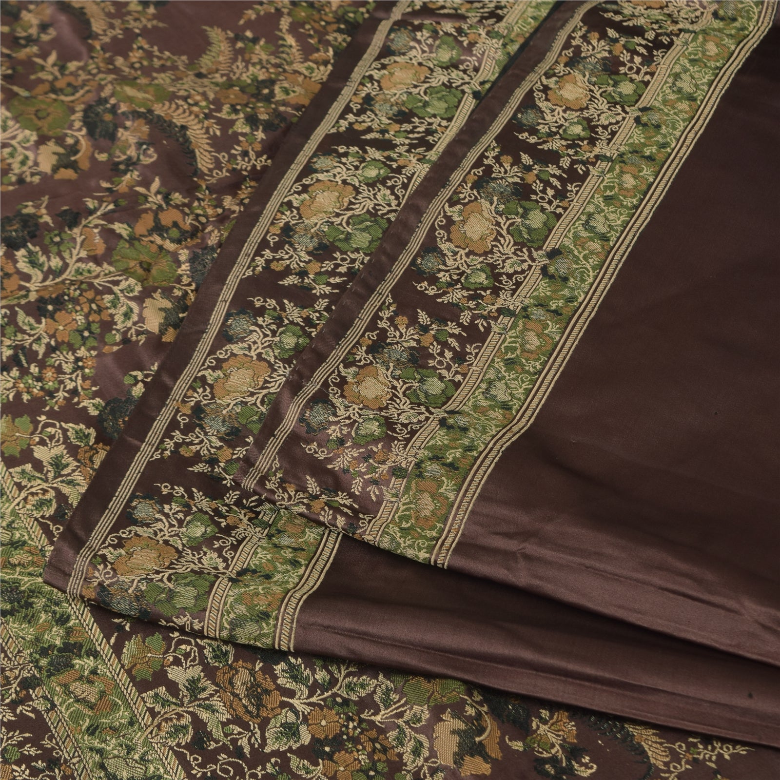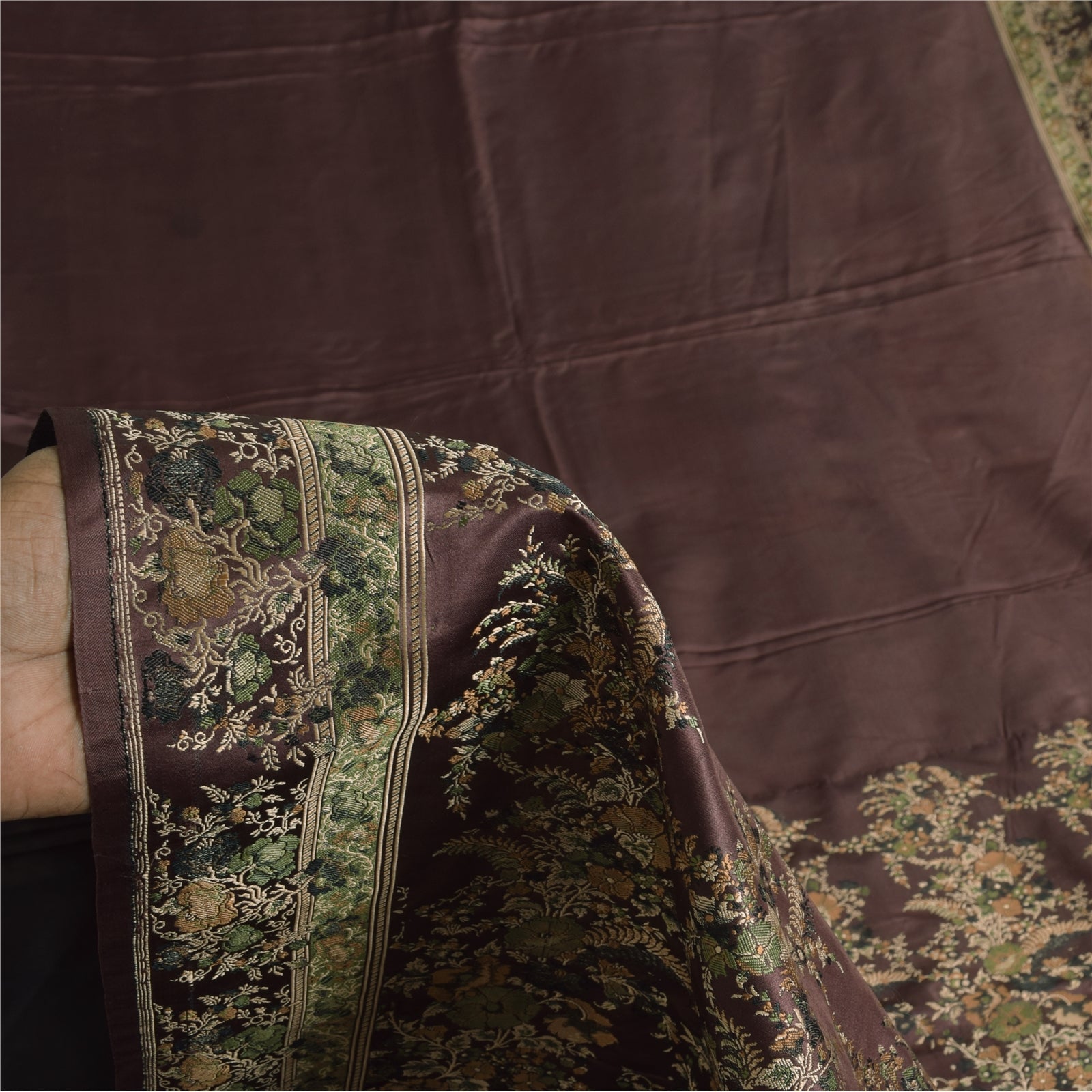 Санскритские винтажные темно-коричневые сари из чистого шелка с вышивкой 5 ярдов ткань для рукоделия из экологически чистой ткани
