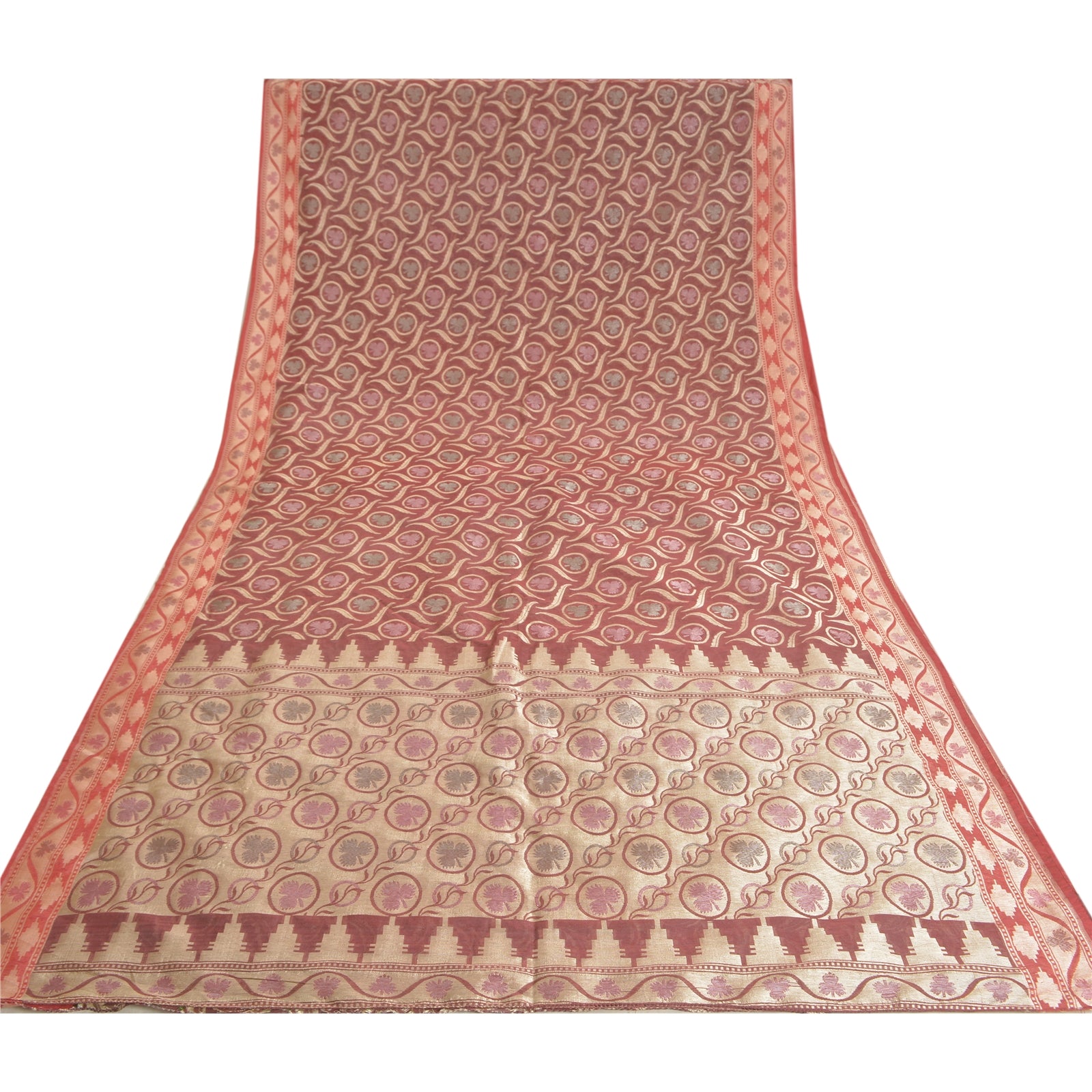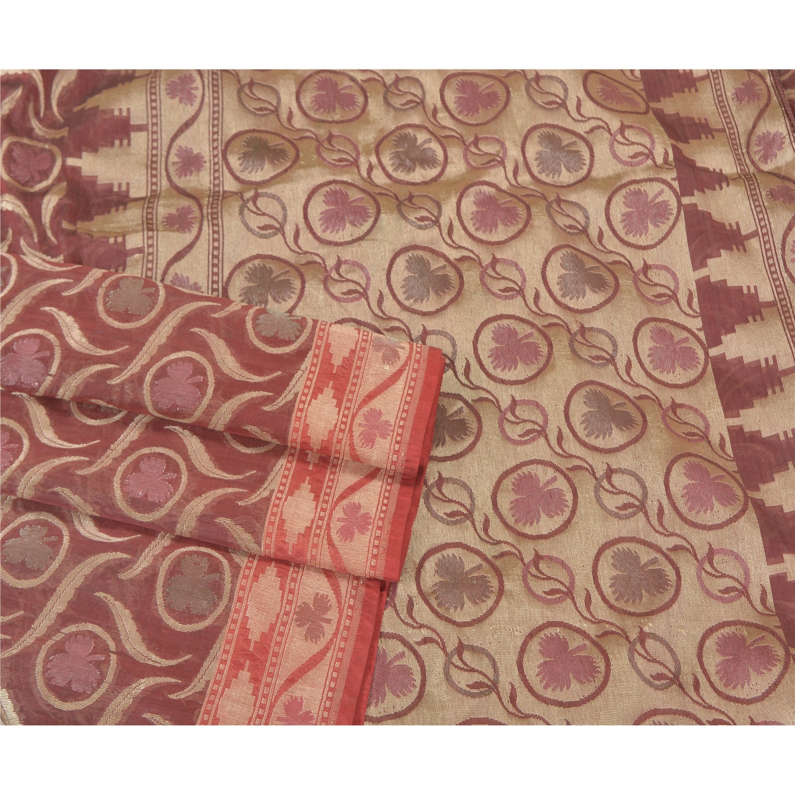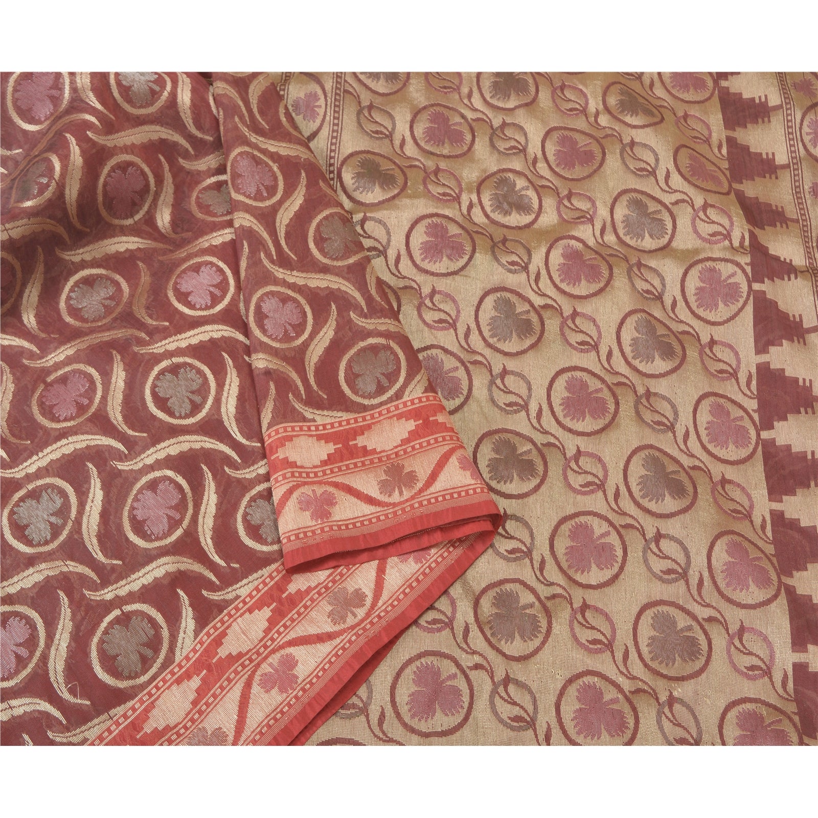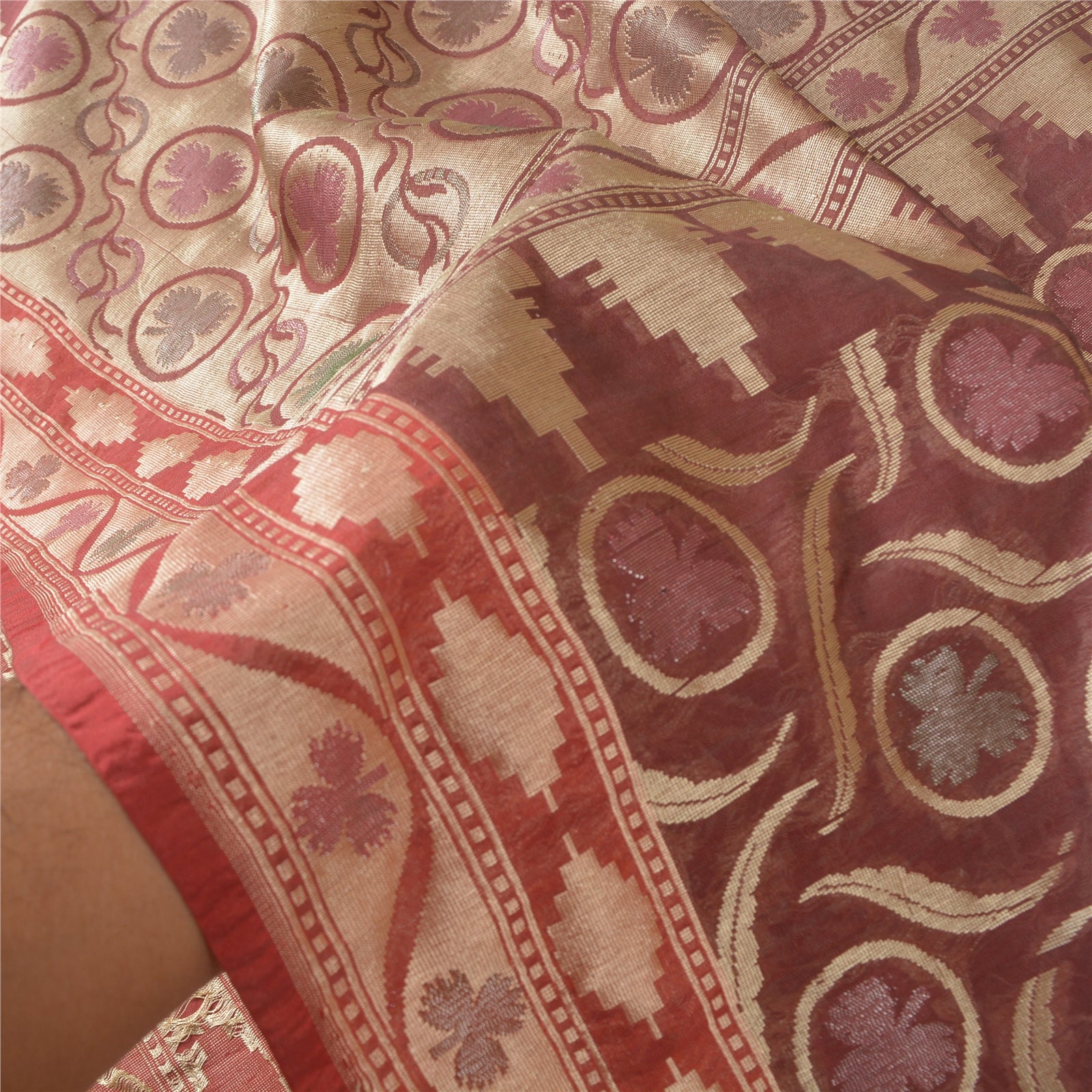 Санскрити Винтаж Темно-красный Тяжелый Индийский Сари Смесовый Шелковый Тканый Сари Экологичная Ткань