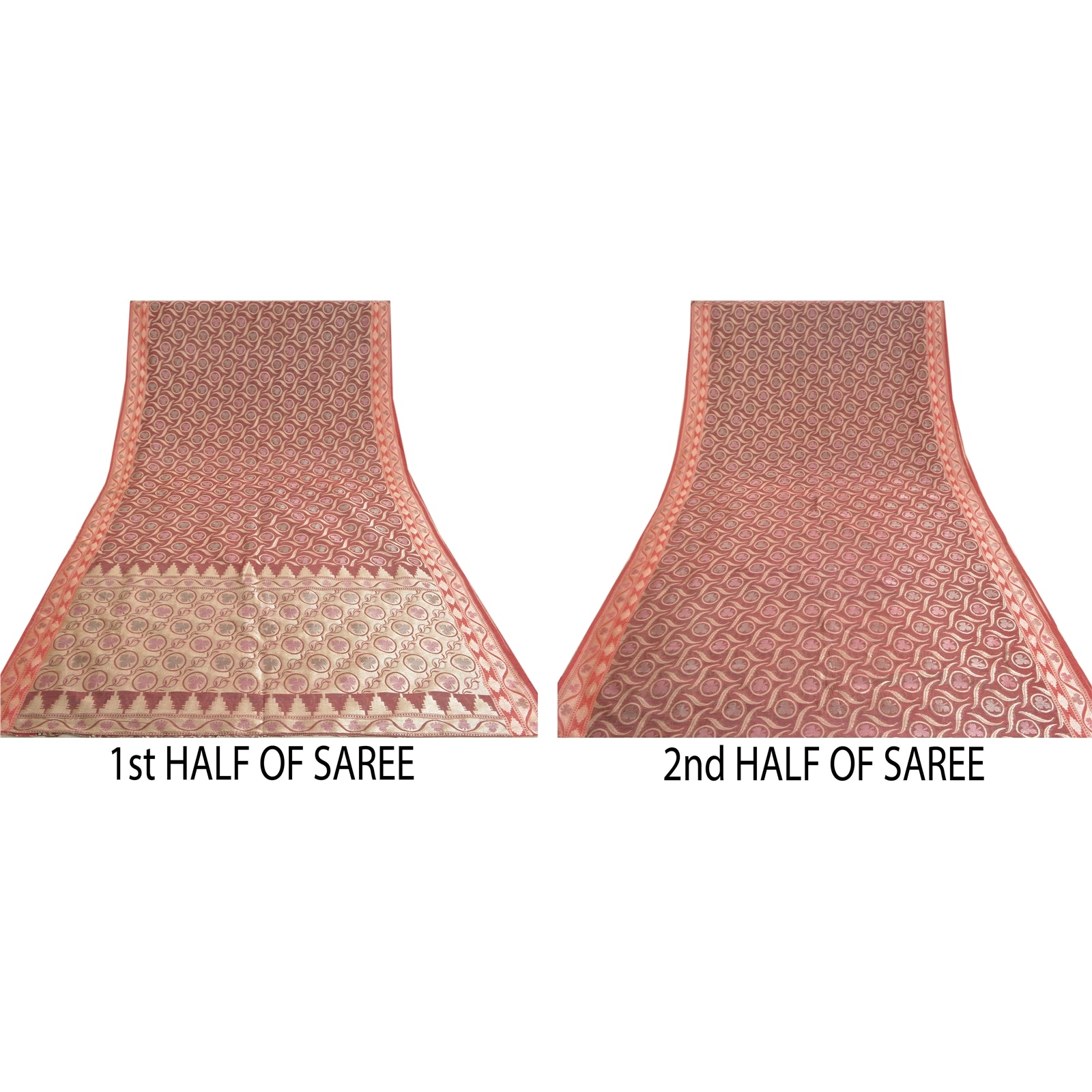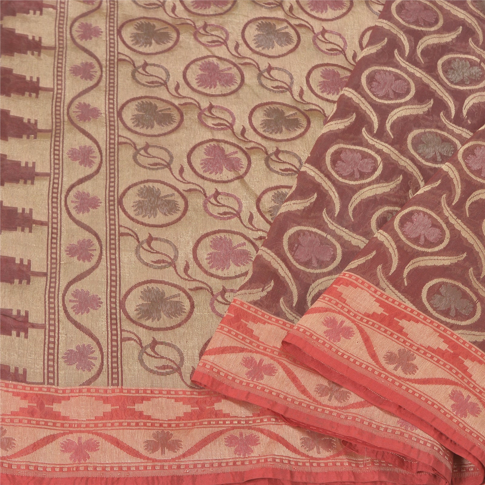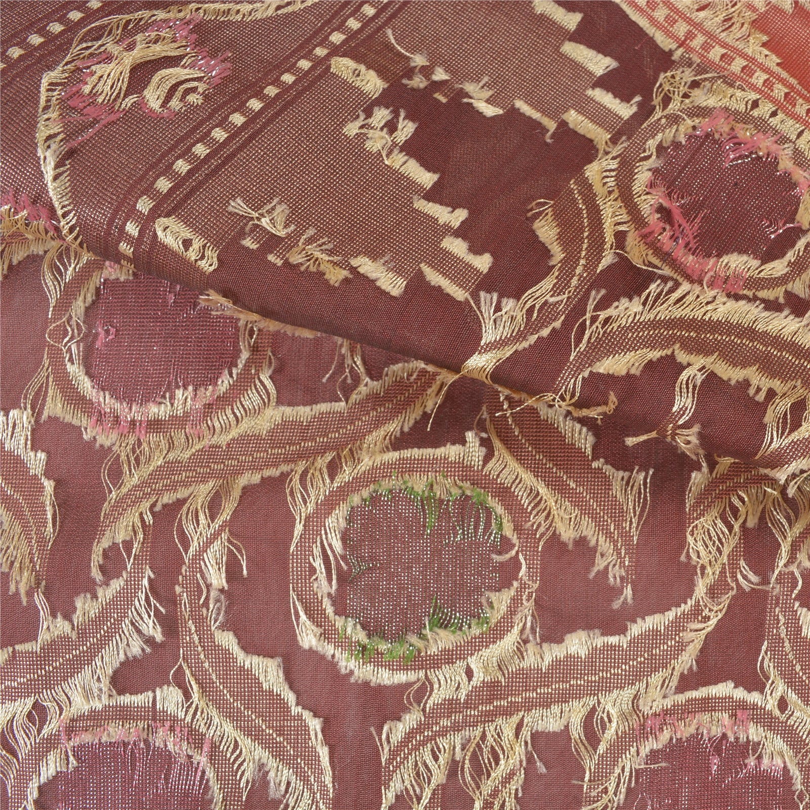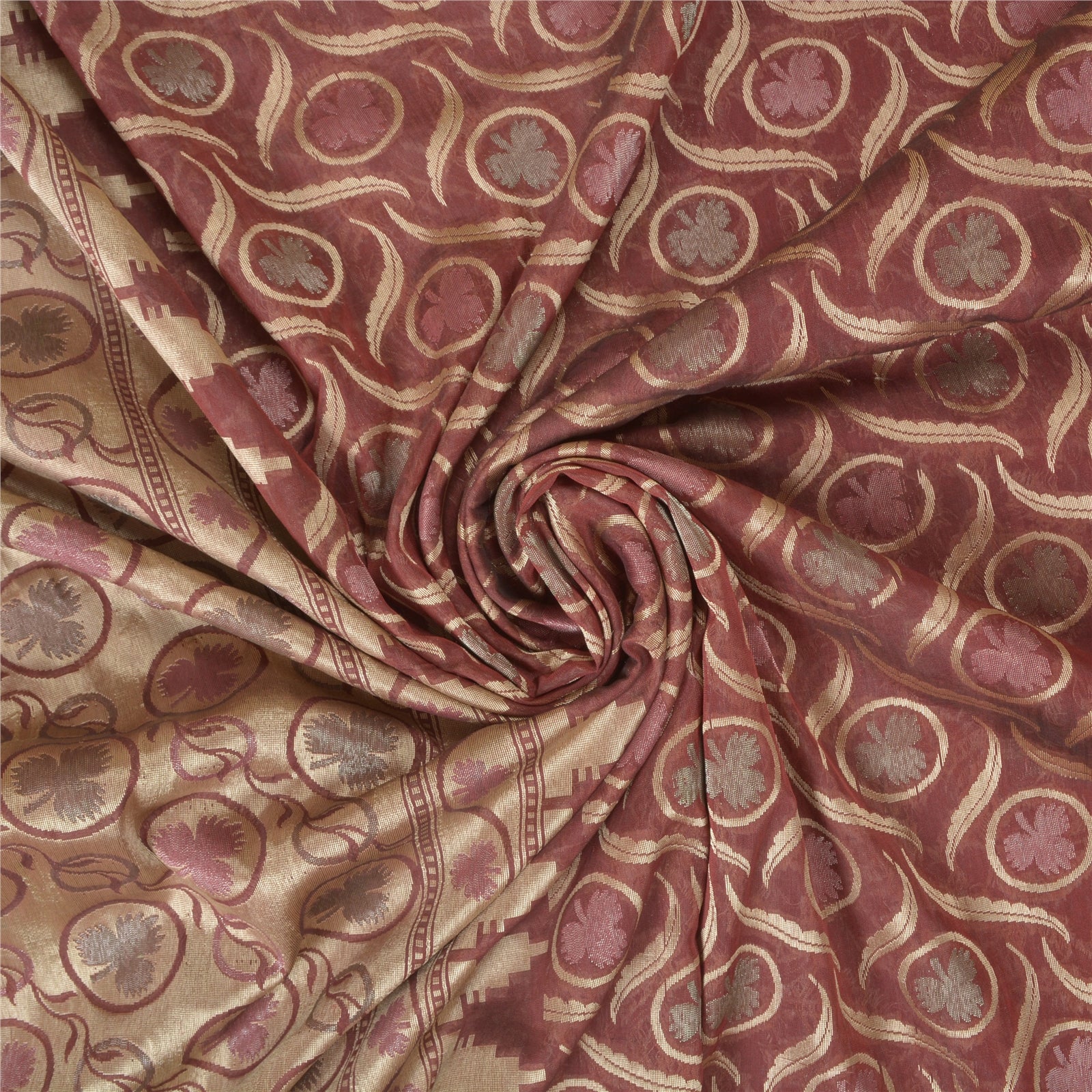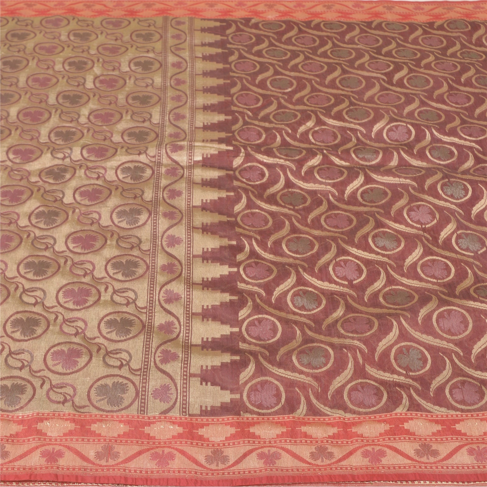 Санскрити Винтаж Темно-красный Тяжелый Индийский Сари Смесовый Шелковый Тканый Сари Экологичная Ткань