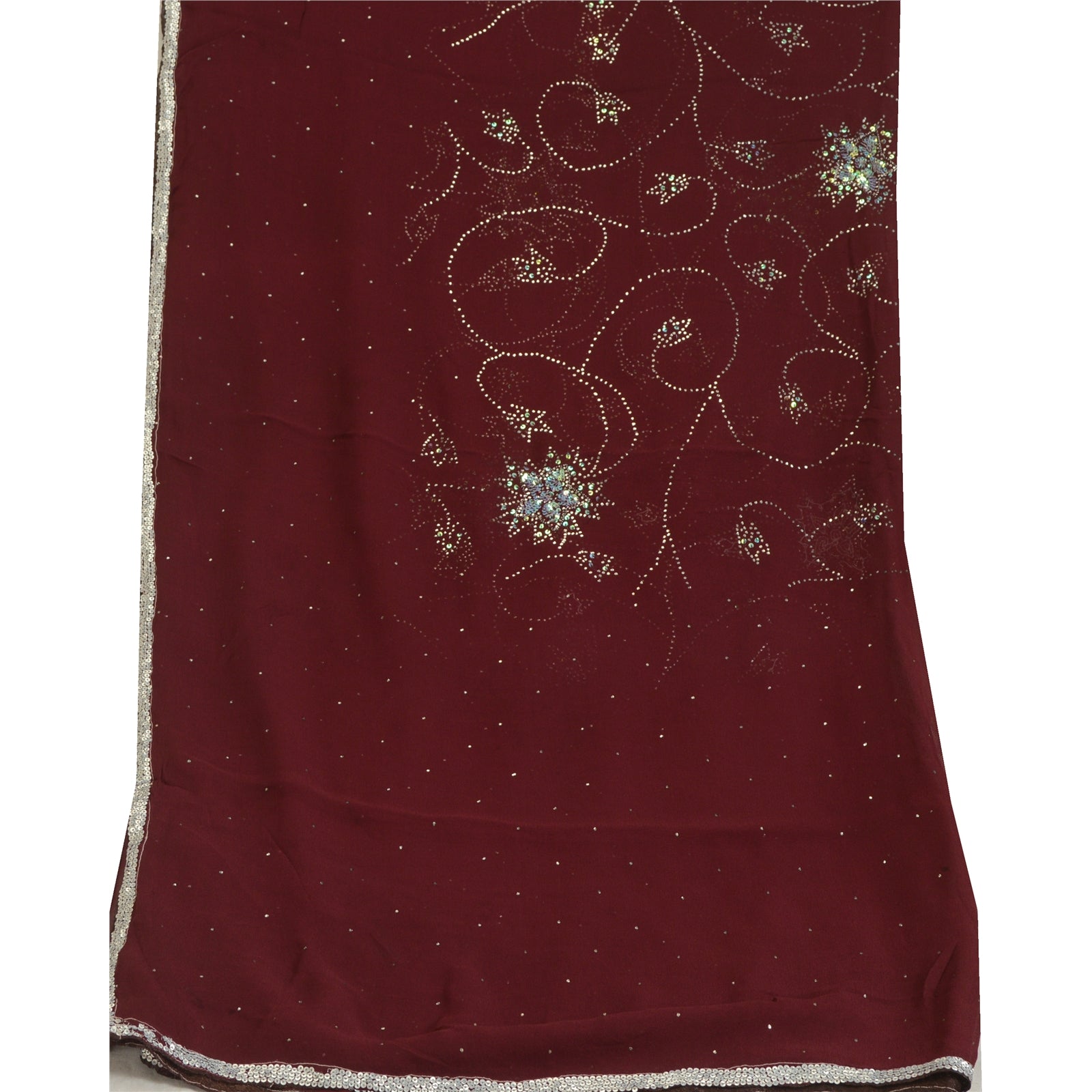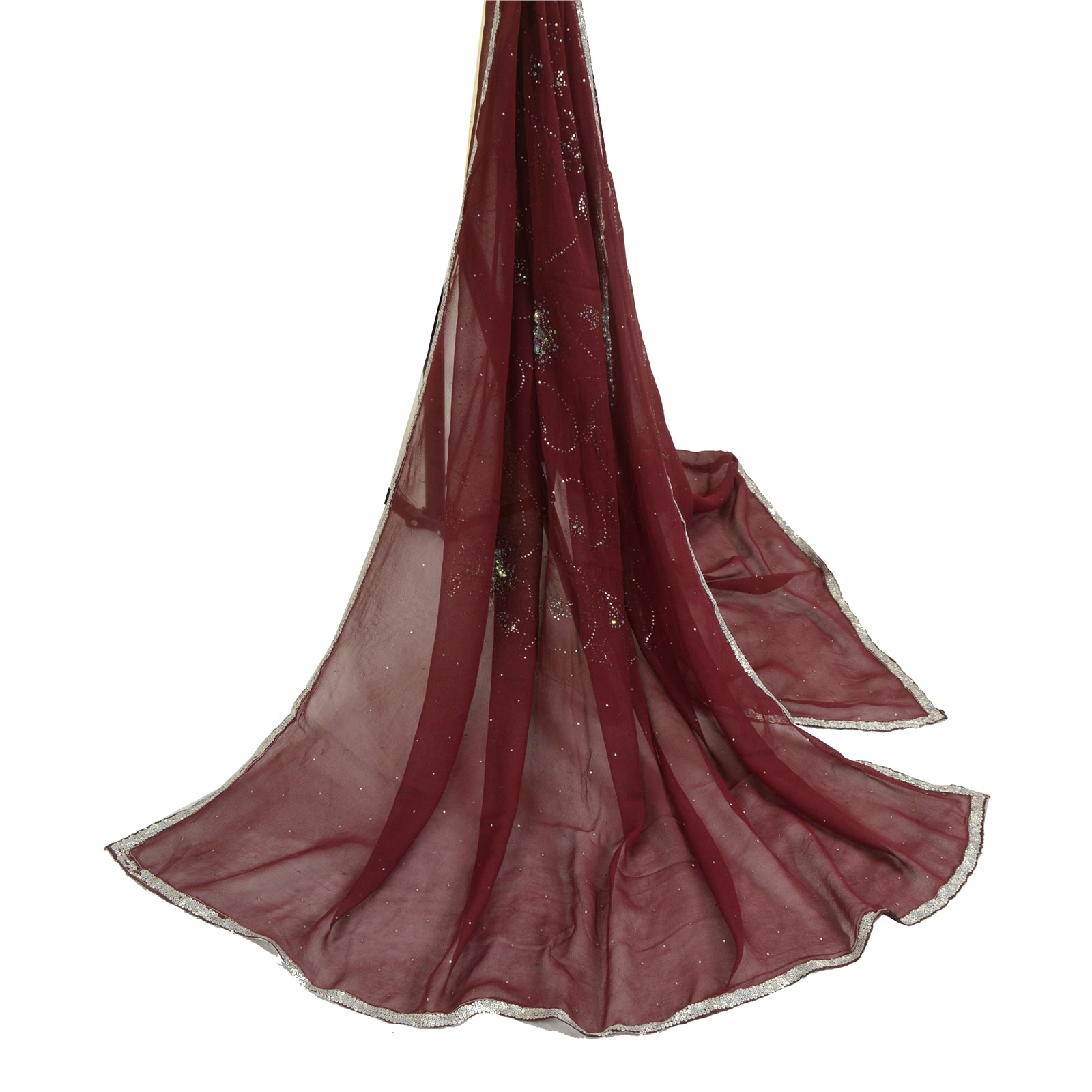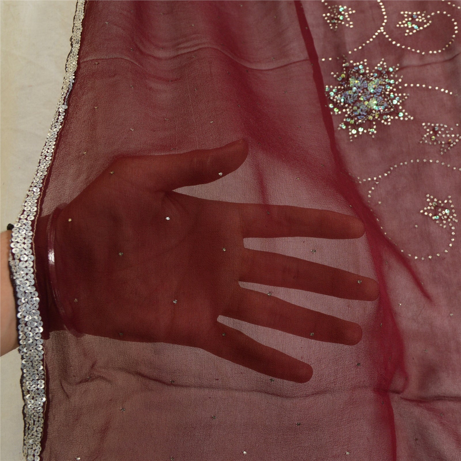 Санскрити Винтаж темно-красный длинный дупатта/палантин из чистого шелка-жоржета ручной работы
