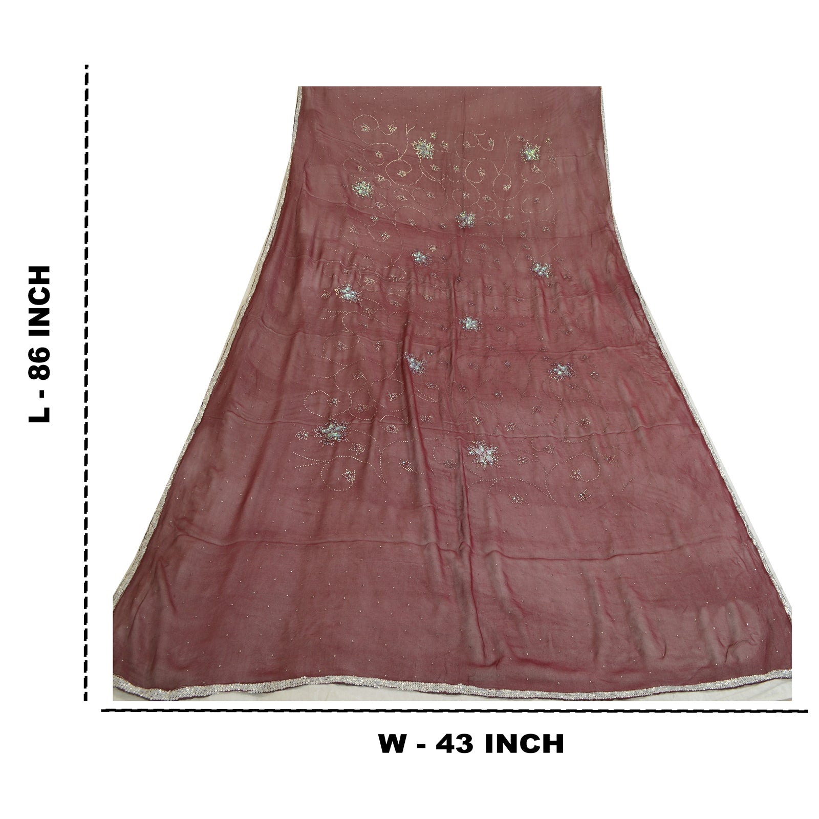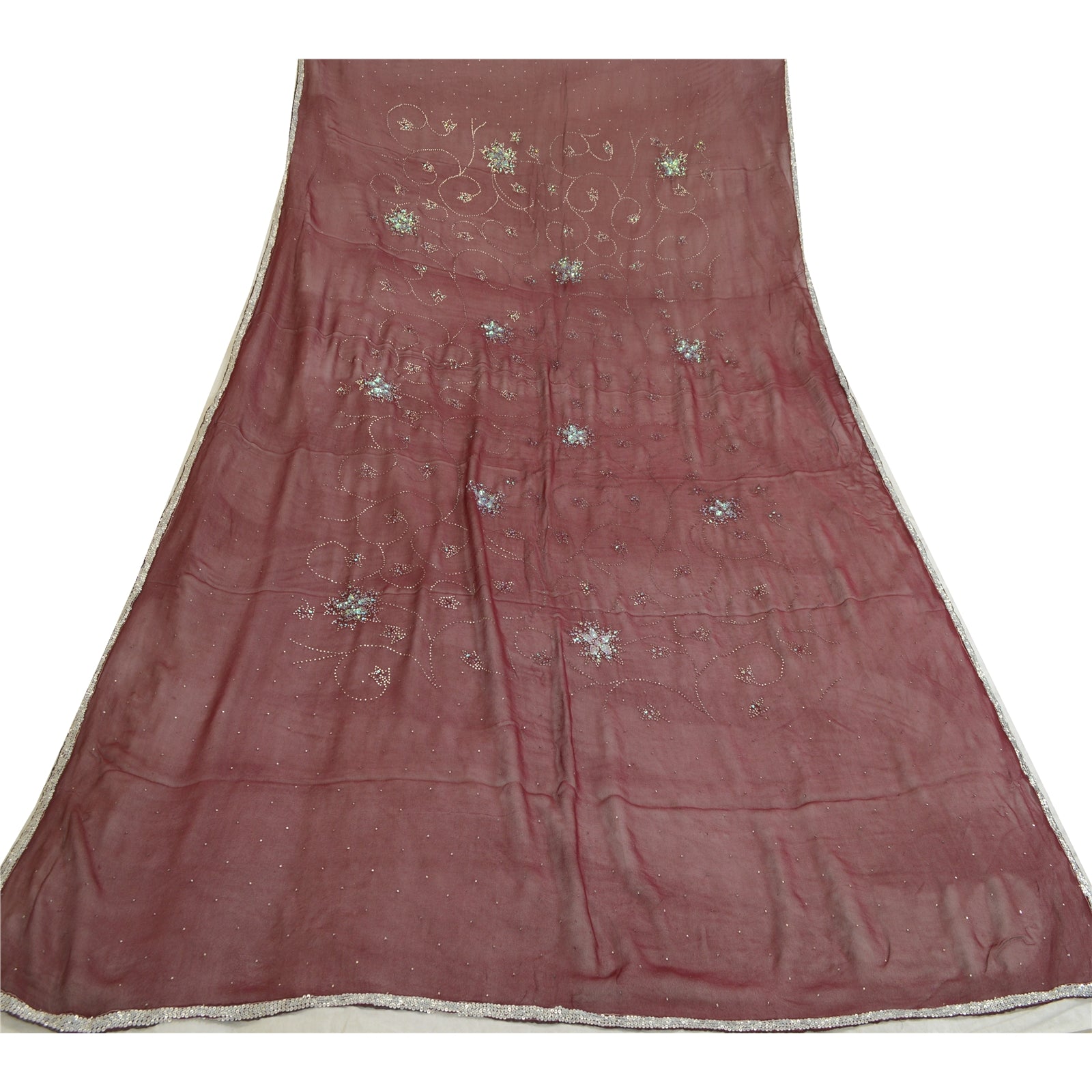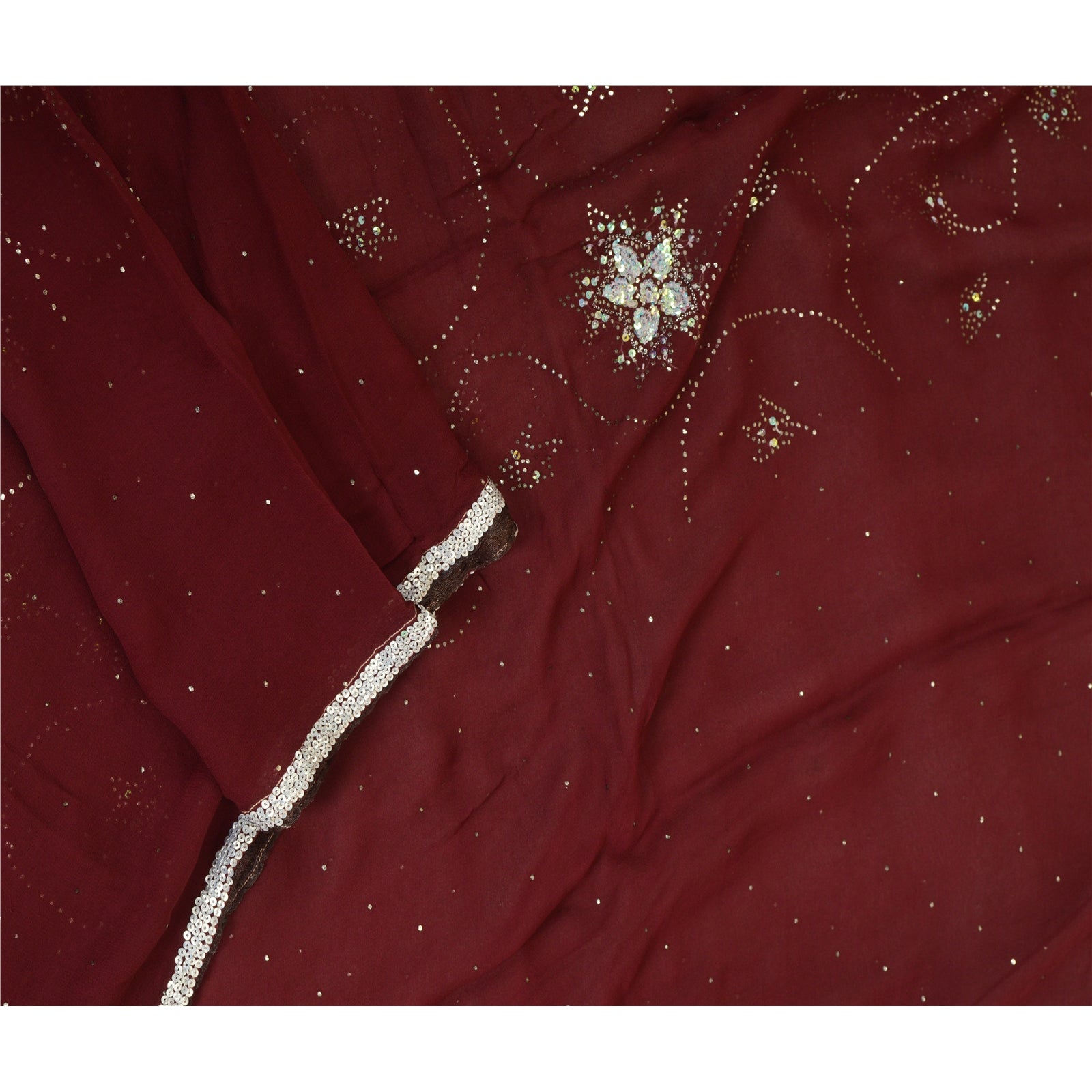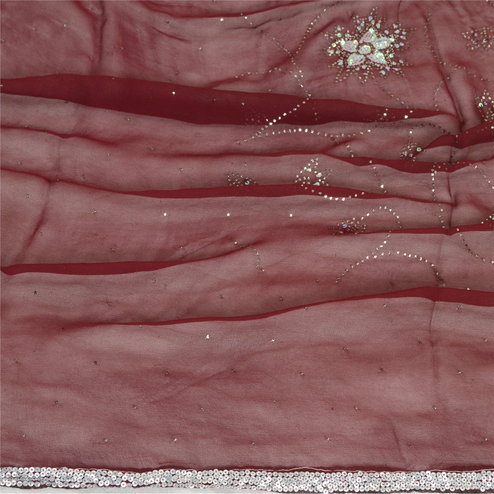 Санскрити Винтаж темно-красный длинный дупатта/палантин из чистого шелка-жоржета ручной работы