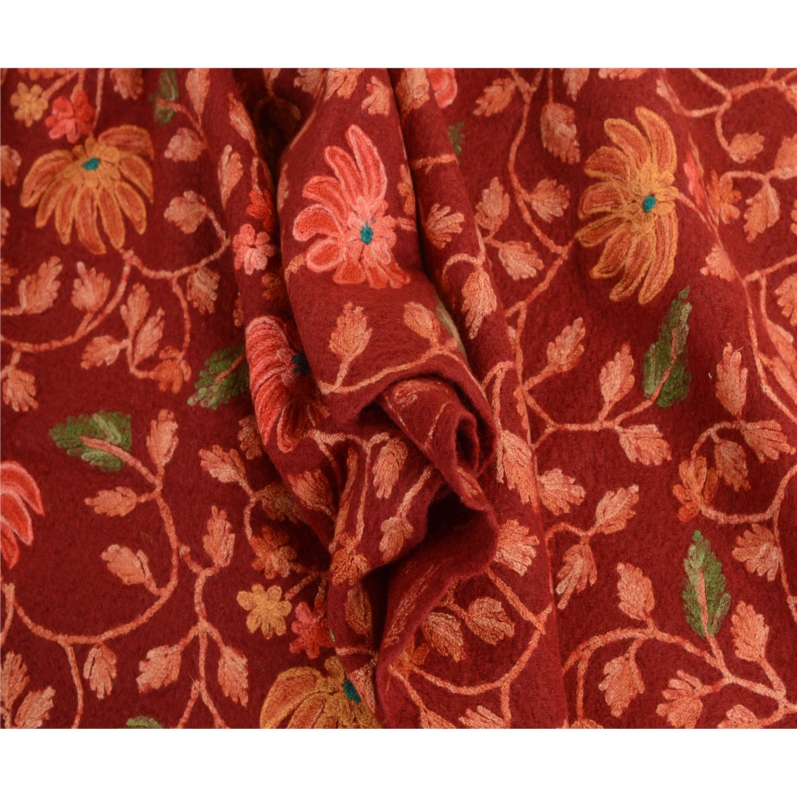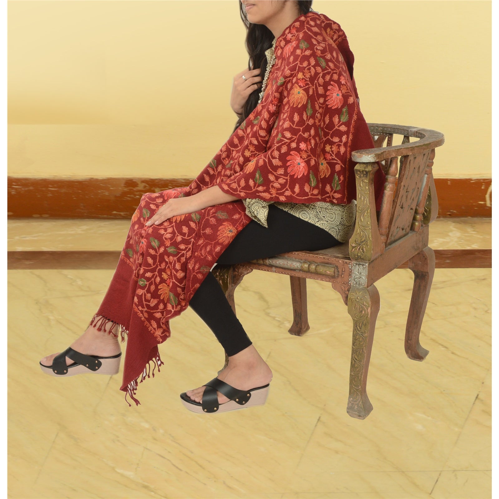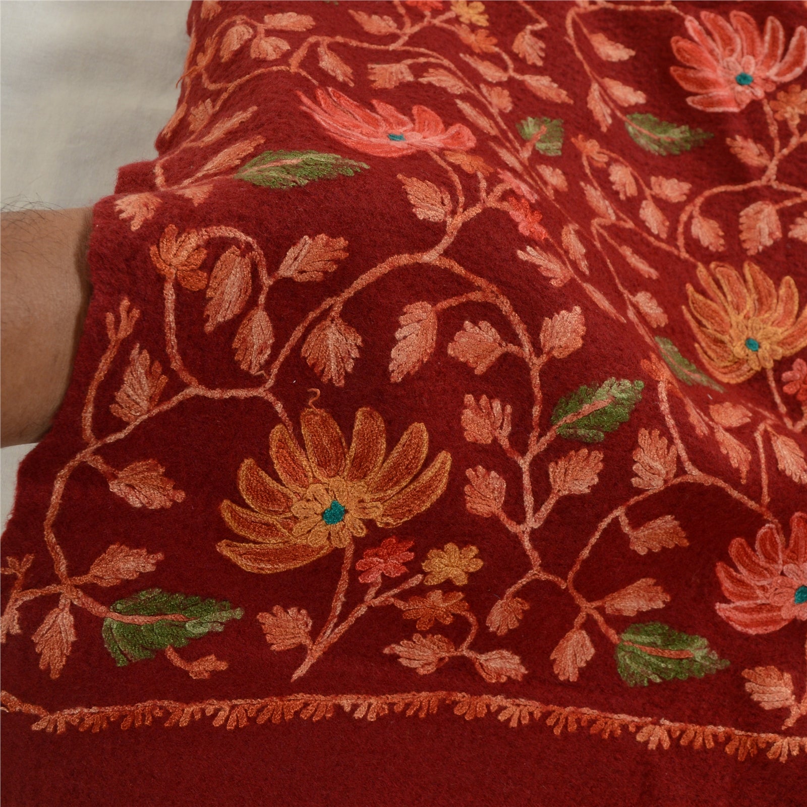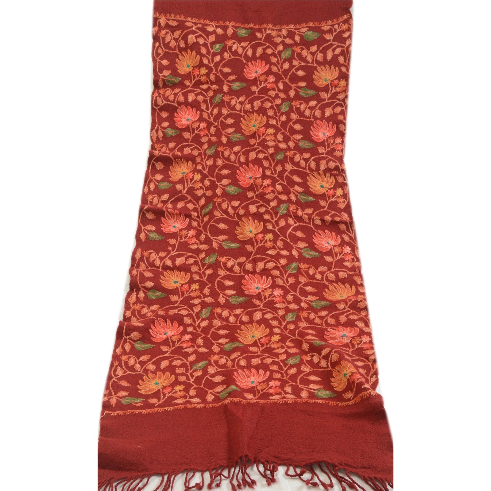 Sanskriti Vintage Dark Red Long Shawl Pure Woollen Handmade Ari Work Scarf Stole