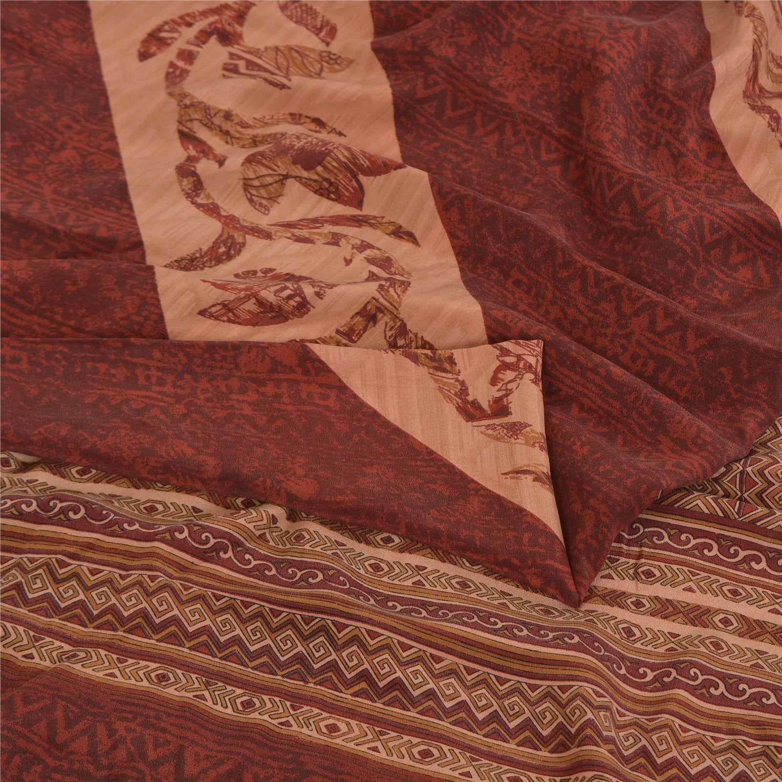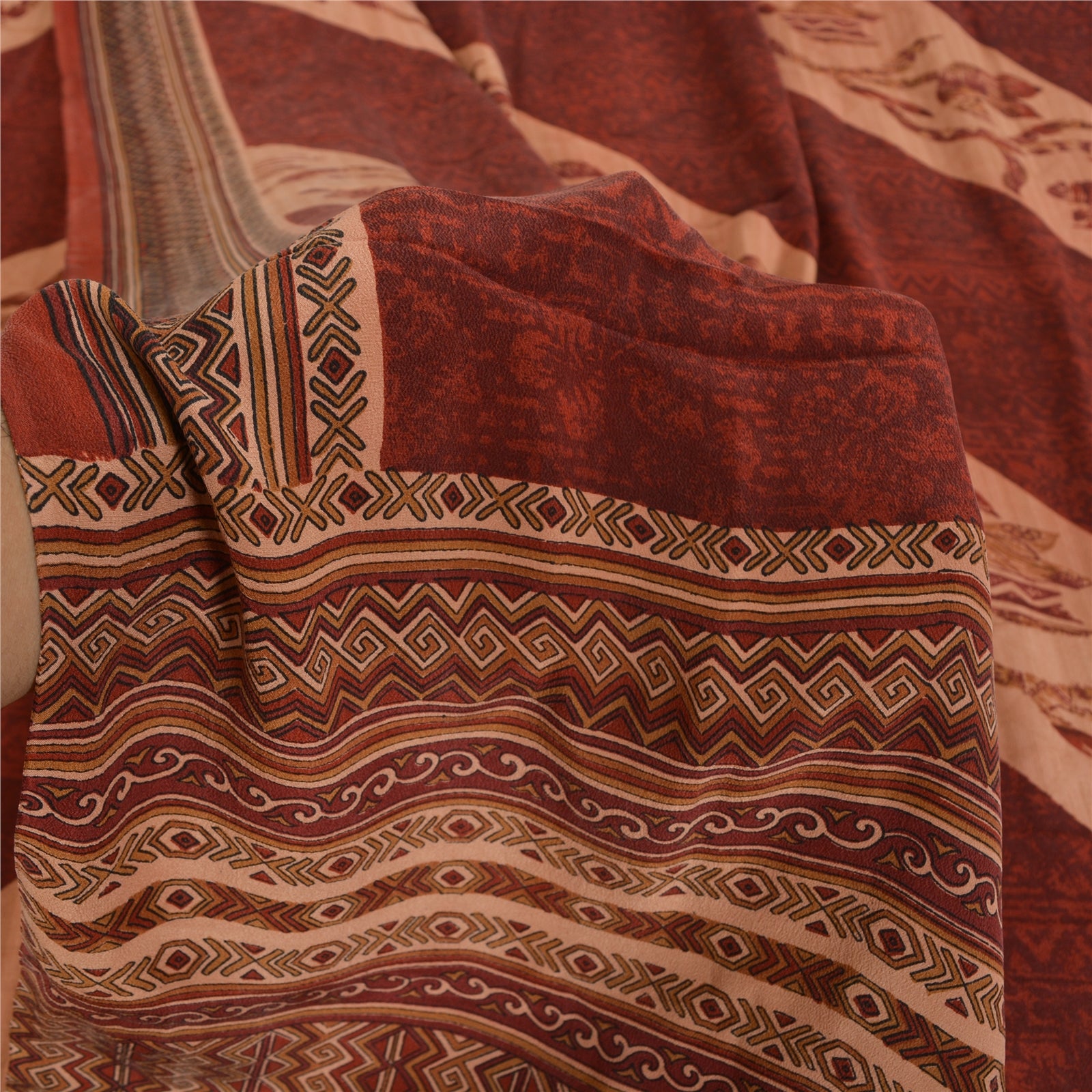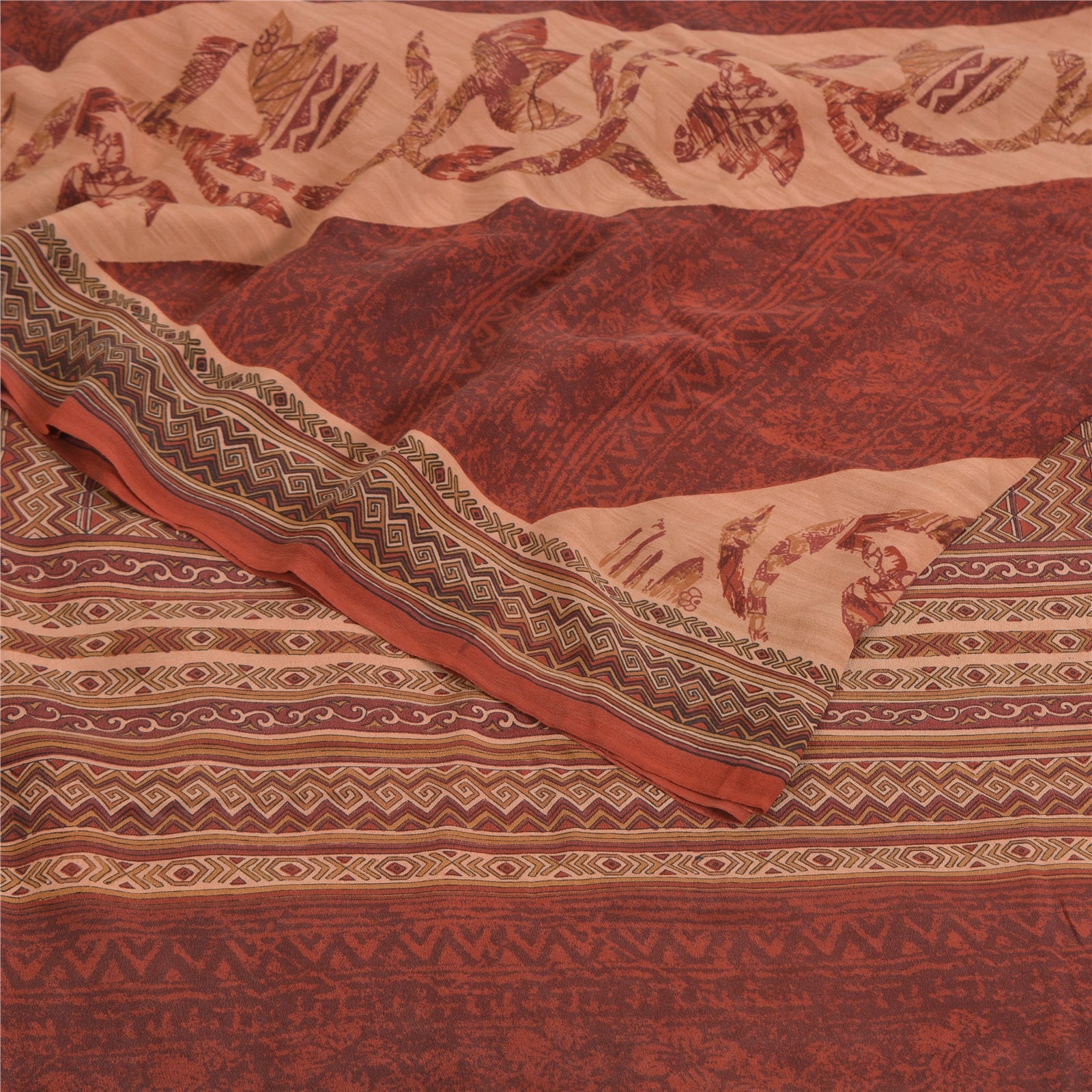 Сари Sanskriti Vintage темно-красного/персикового цвета из чистого крепированного шелка с принтом, экологически чистая ткань для сари