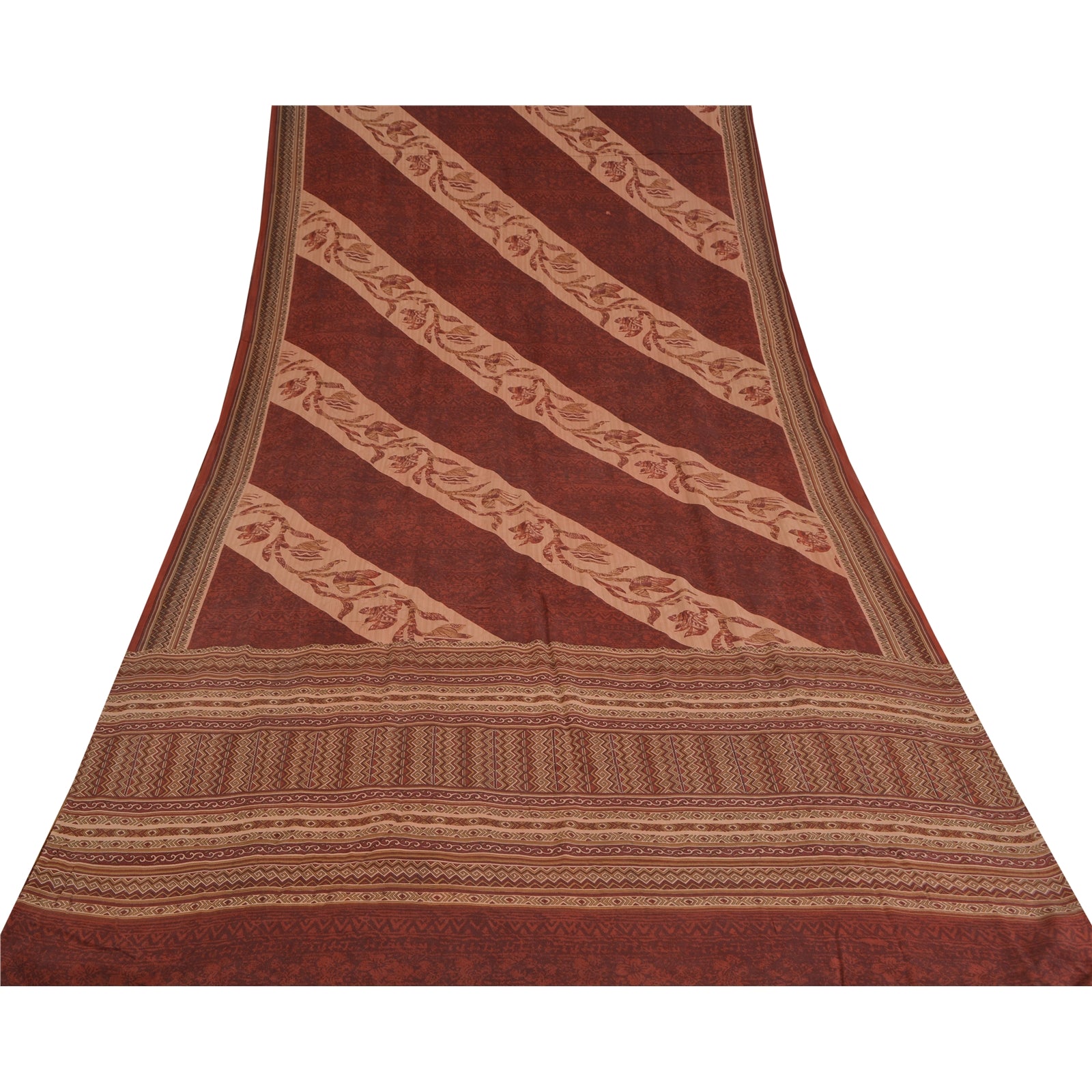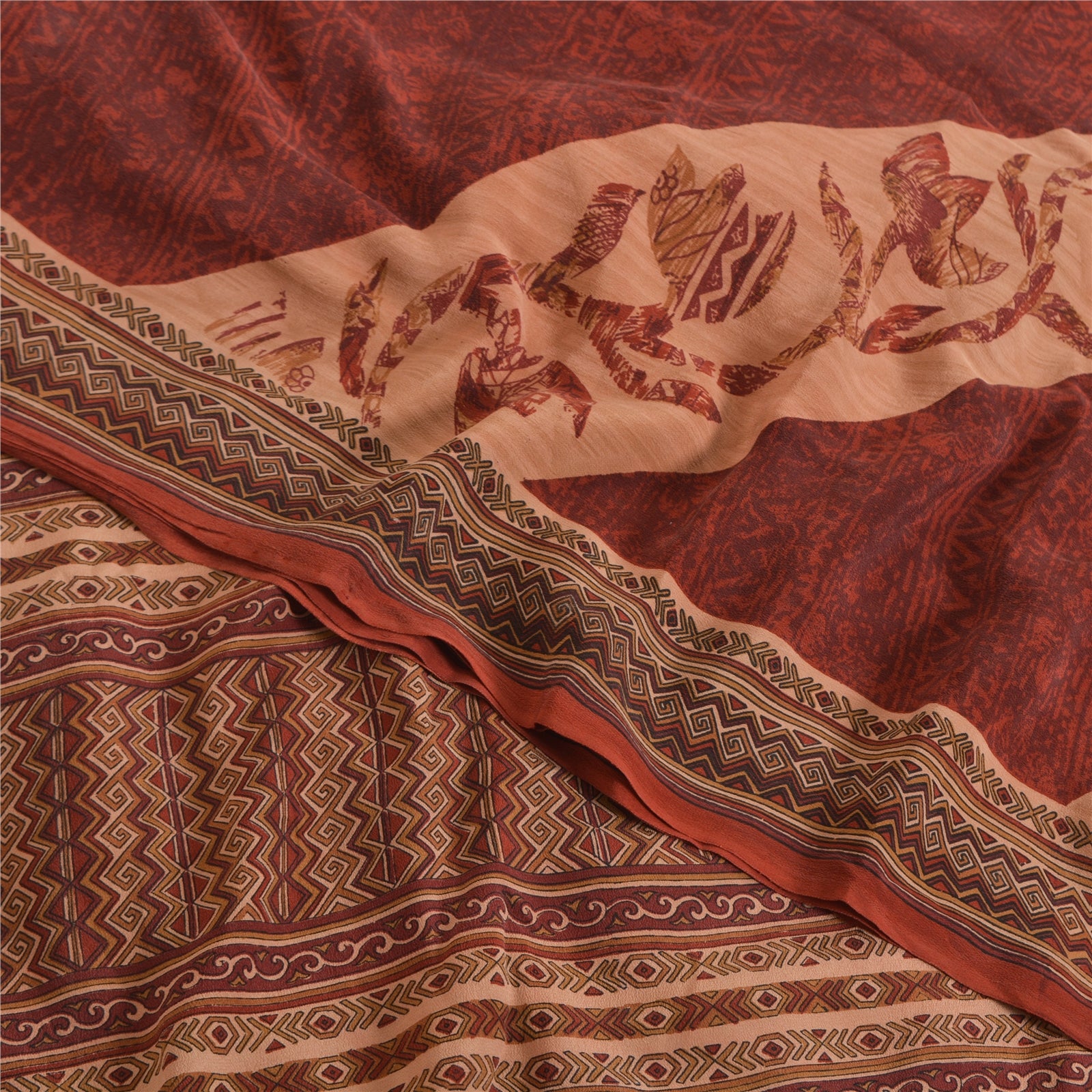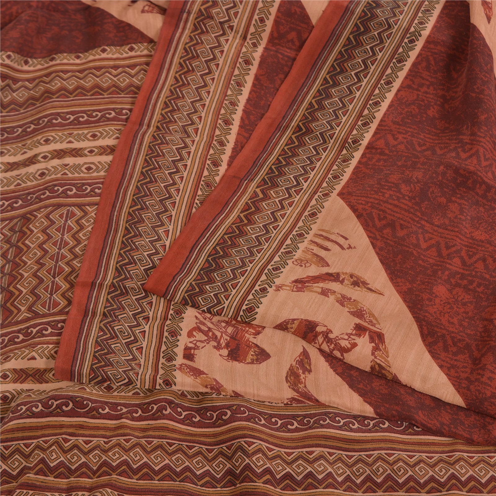 Сари Sanskriti Vintage темно-красного/персикового цвета из чистого крепированного шелка с принтом, экологически чистая ткань для сари
