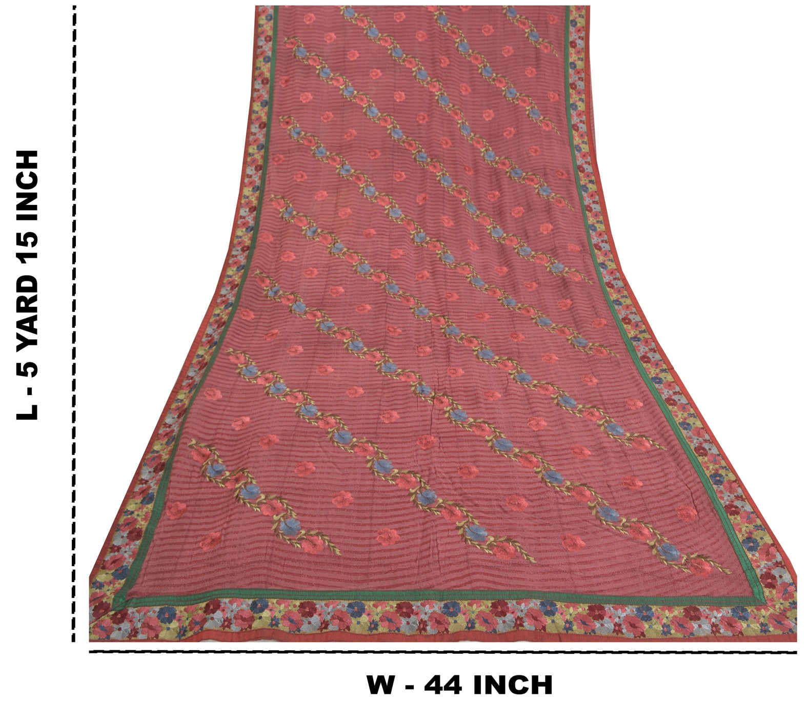 Санскритские винтажные темно-красные сари из смеси жоржета с вышивкой этническое сари устойчивая ткань