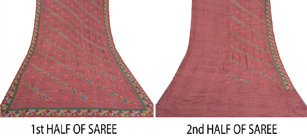 Красивое темно-красное сари из смеси жоржета с вышивкой. Край выполнен из бордовой/зеленой вышитой нитью цветочного узора. Центральная часть сари имеет похожую нить с цветочным узором. Это сари также можно использовать для различных идей для рукоделия. Используйте его для дизайна платья, в качестве пледа, для оформления окон, обивки, столового белья и многого другого. Дайте волю своим творческим способностям. Для покупателей из США - один предмет отправляется заказной авиапочтой, купите еще один, чтобы получить FedEx.