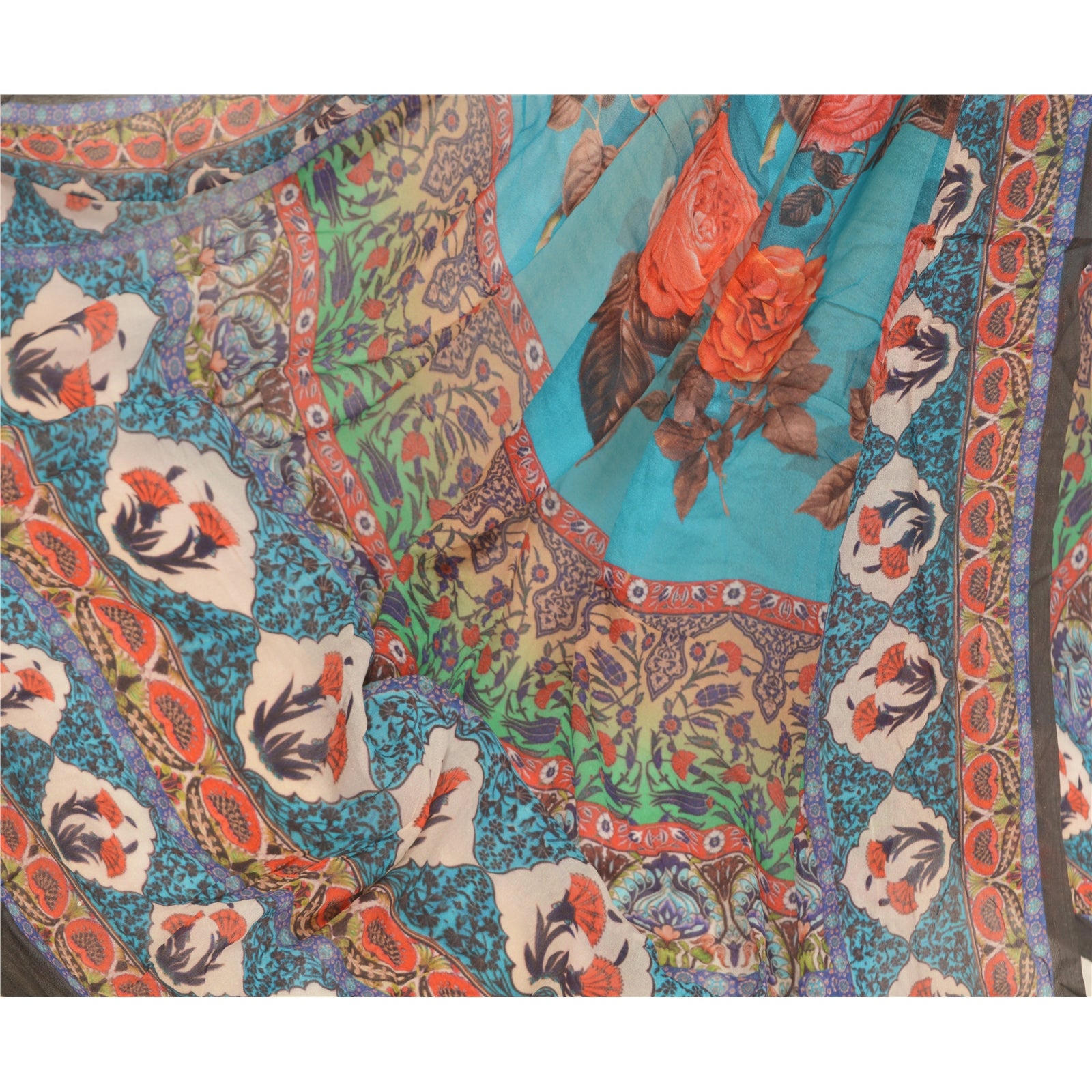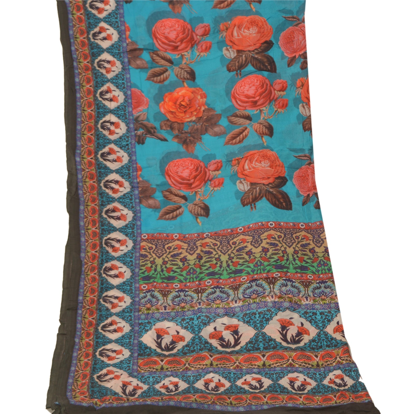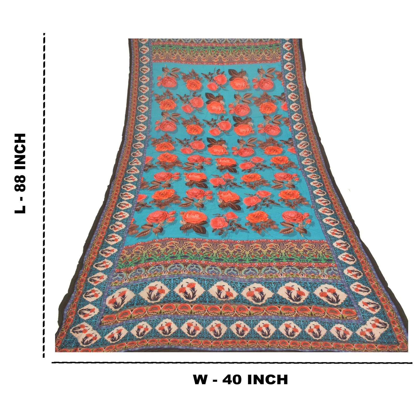 Санскрити Винтаж Дупатта Длинный Палантин Жоржет Синий Хиджаб Печатный Шарфы