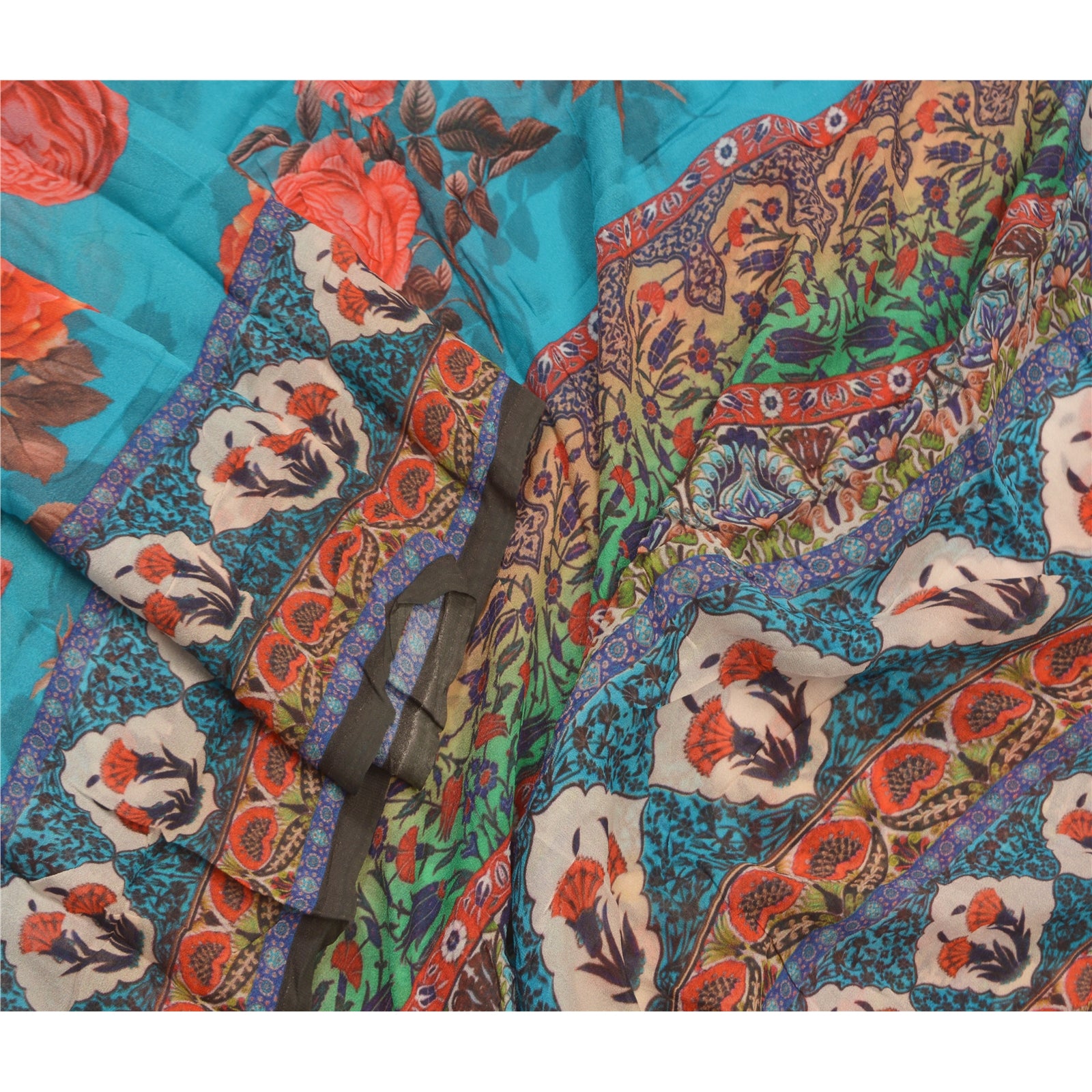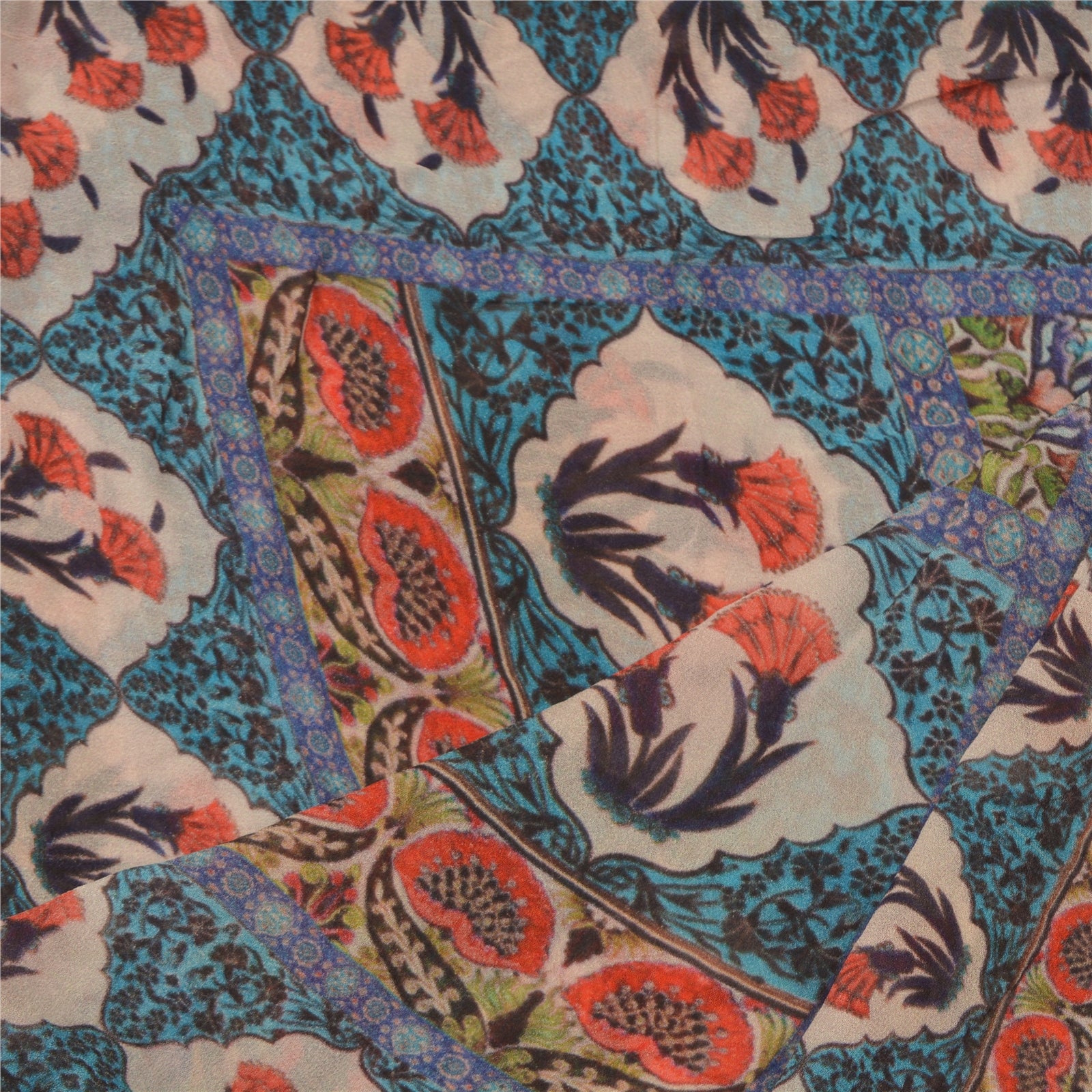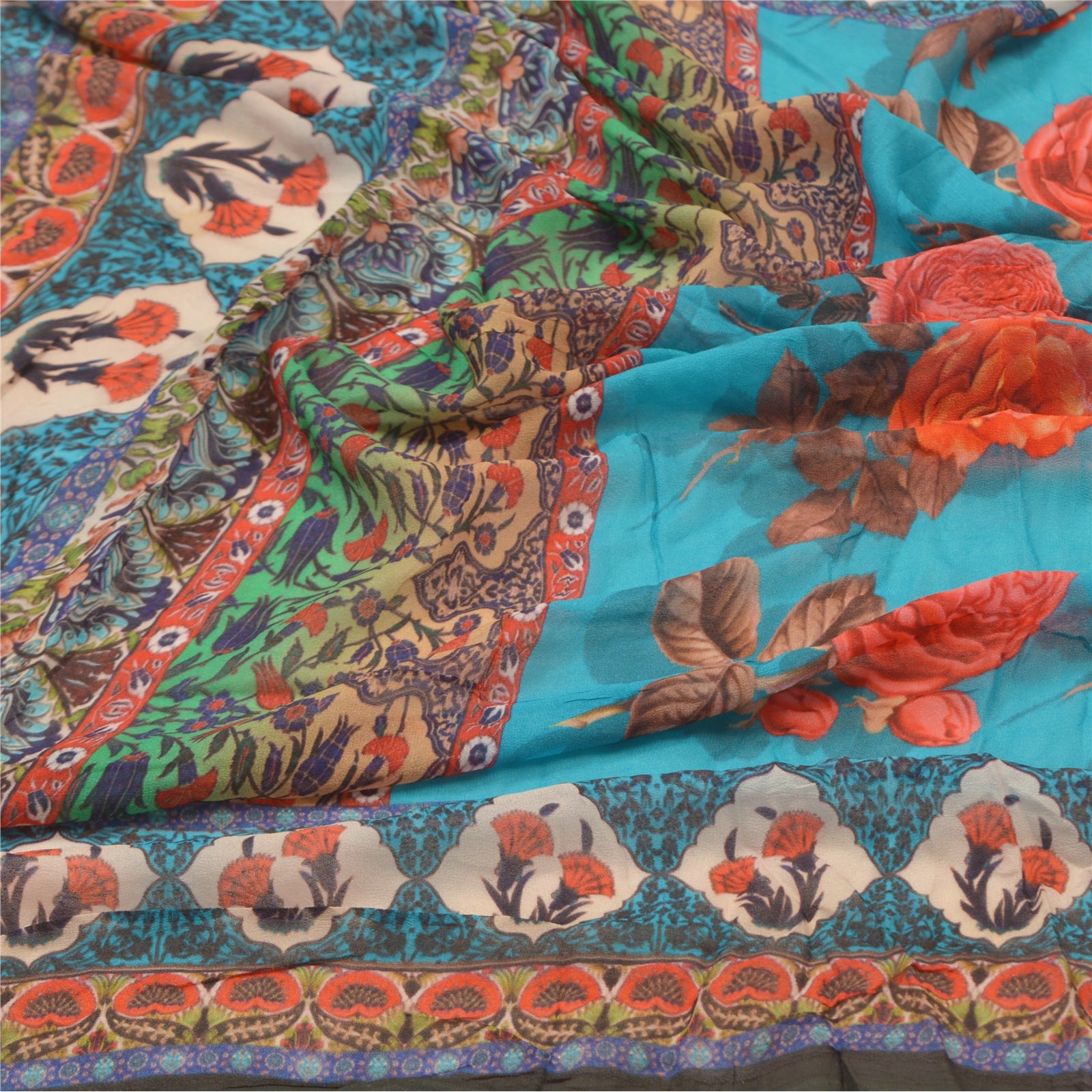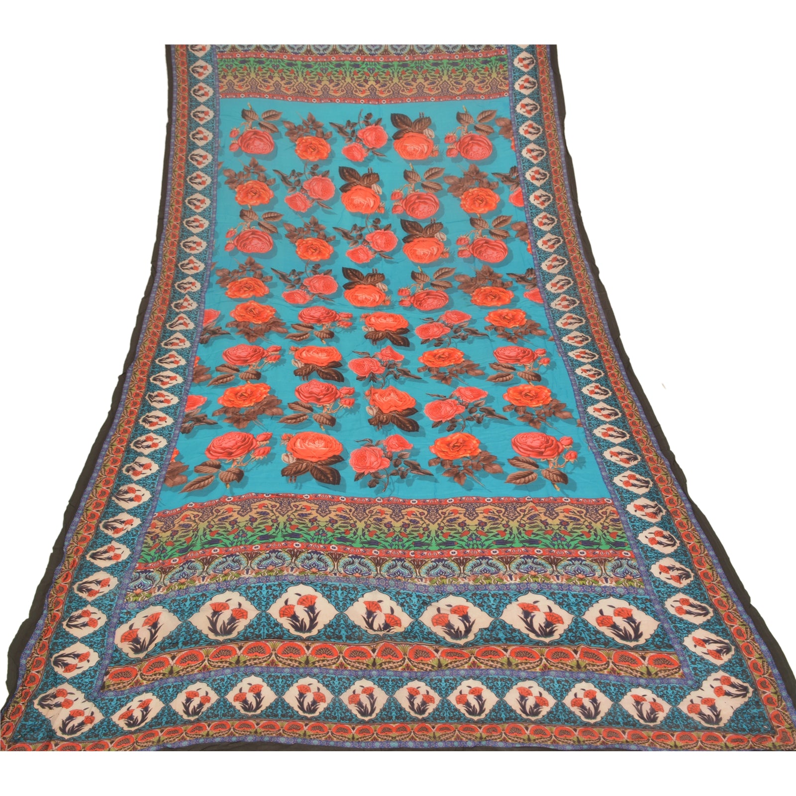 Санскрити Винтаж Дупатта Длинный Палантин Жоржет Синий Хиджаб Печатный Шарфы