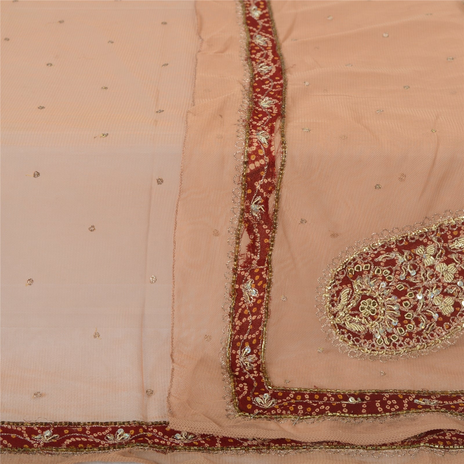 Attractive net brown colored hand embroidered long scarf/dupatta. The center portion has floral design with embroidered zari work. Border of the dupatta has floral & paisley design embroidered with gold zari/zadozi/dabka work and embellished with yellow glass beads, silver sequins, maroon printed patch work . Versatile Uses-Crafting, Repurpose, Creative Sewing Project, Dressmaking, Kaftans, Use It As A Dupatta, Window Dressing, Upcycling, Sarongs, Throw,Table Linen,Decorative Fabric, Sustainable Indian Fabric. THE ITEM COLOR OR SHADE MAY BE DARKER OR LIGHTER THAN THE PICTURE.' International buyers please note: Import duties, taxes, and charges are not included in the item price or postage cost. Buyer will pay custom duty/tax,VAT, and any applicable charges at the time of delivery. DC-21381