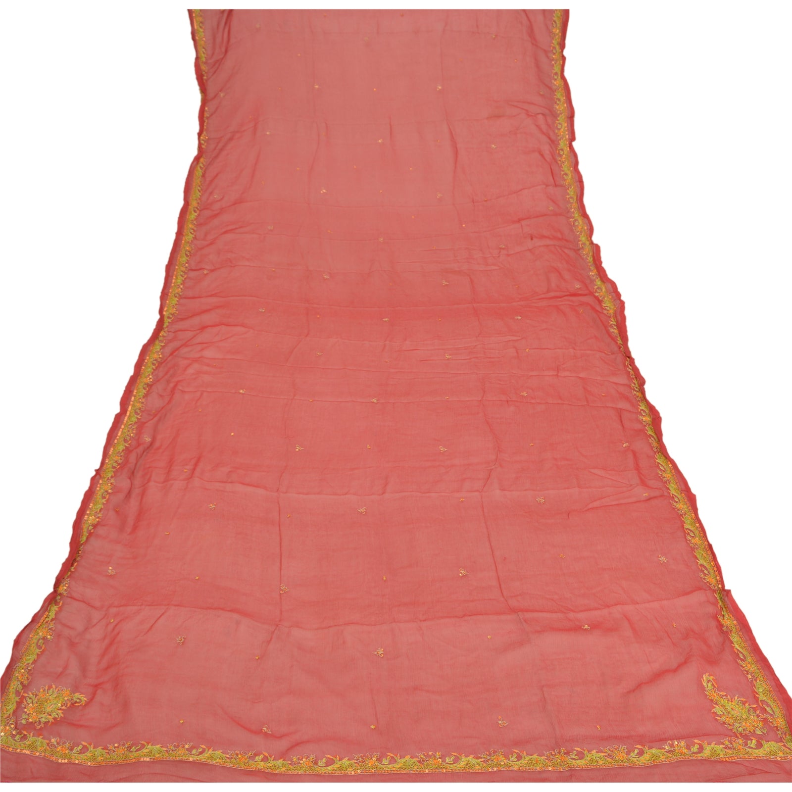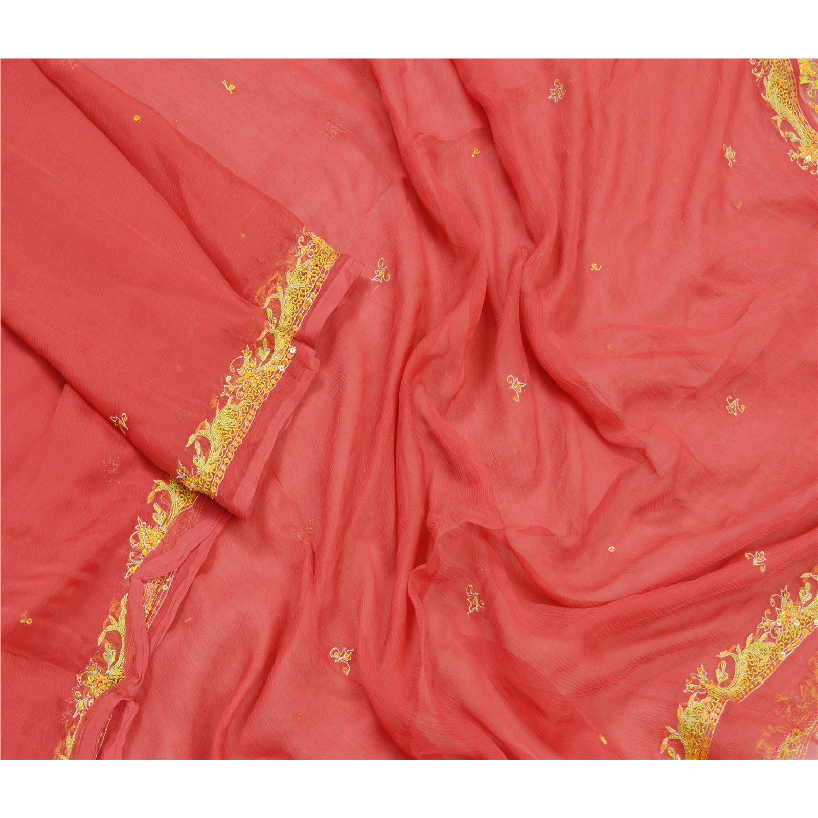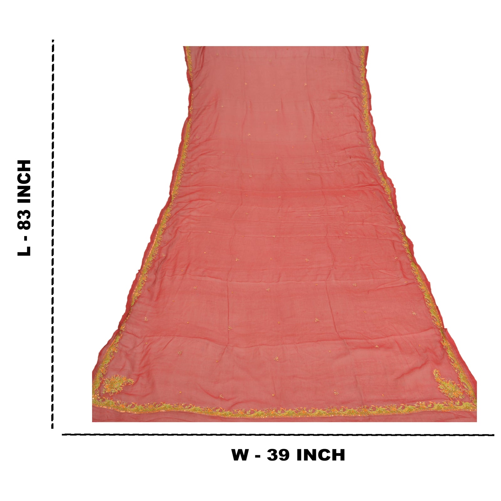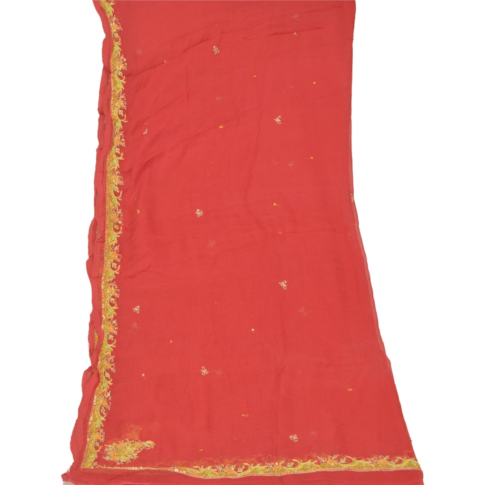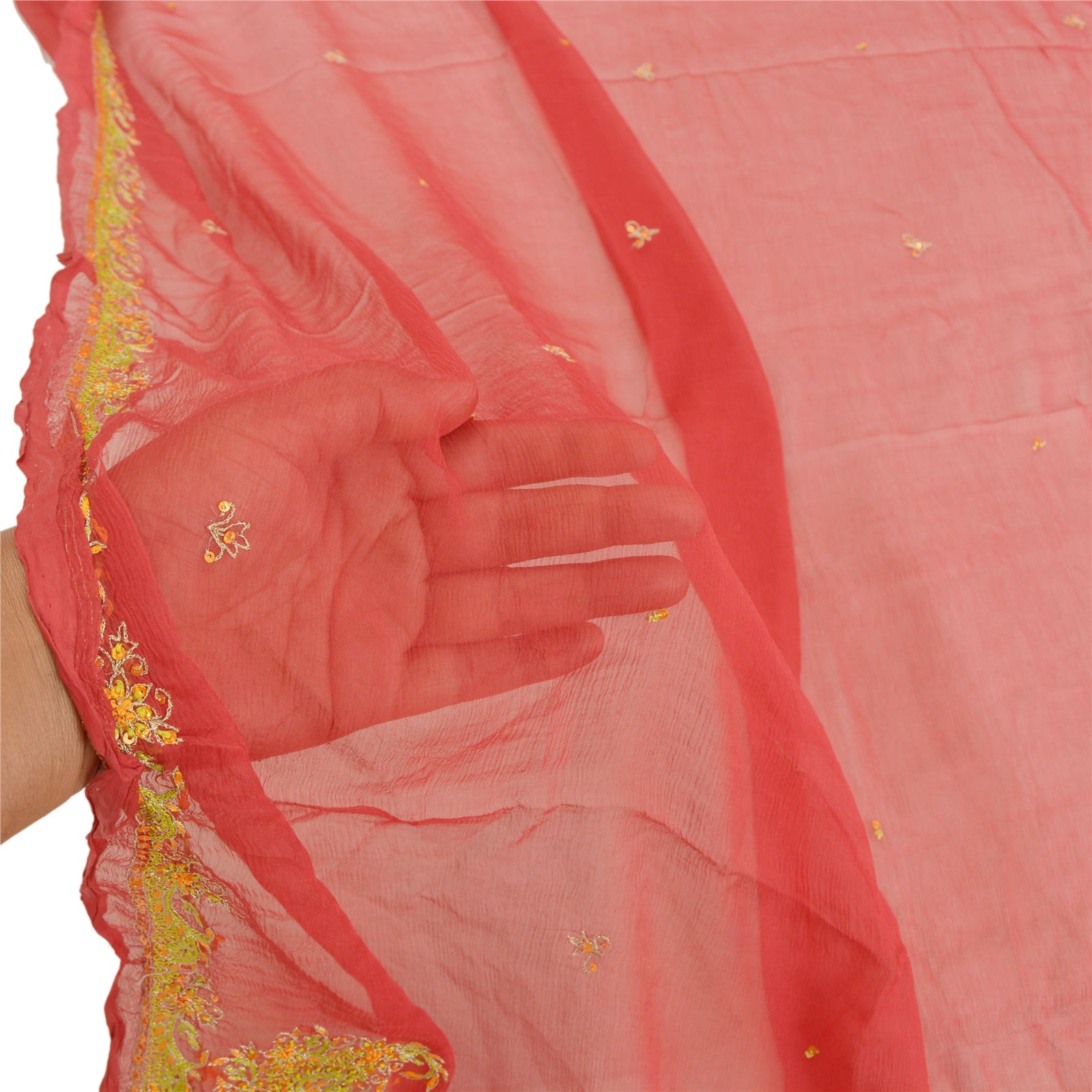 Санскрити Винтаж Дупатта Длинный Палантин Чистый Шелковый Шифон Красная Фата Расшитая Бисером Ручной Работы
