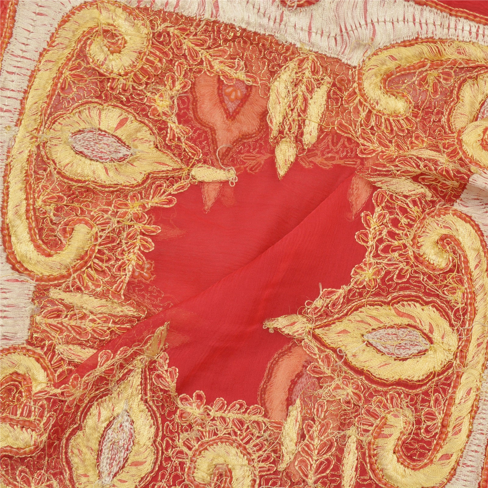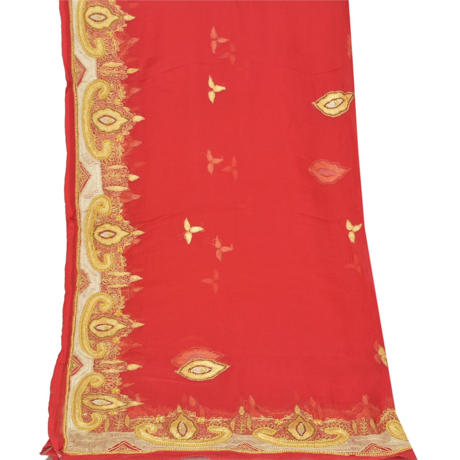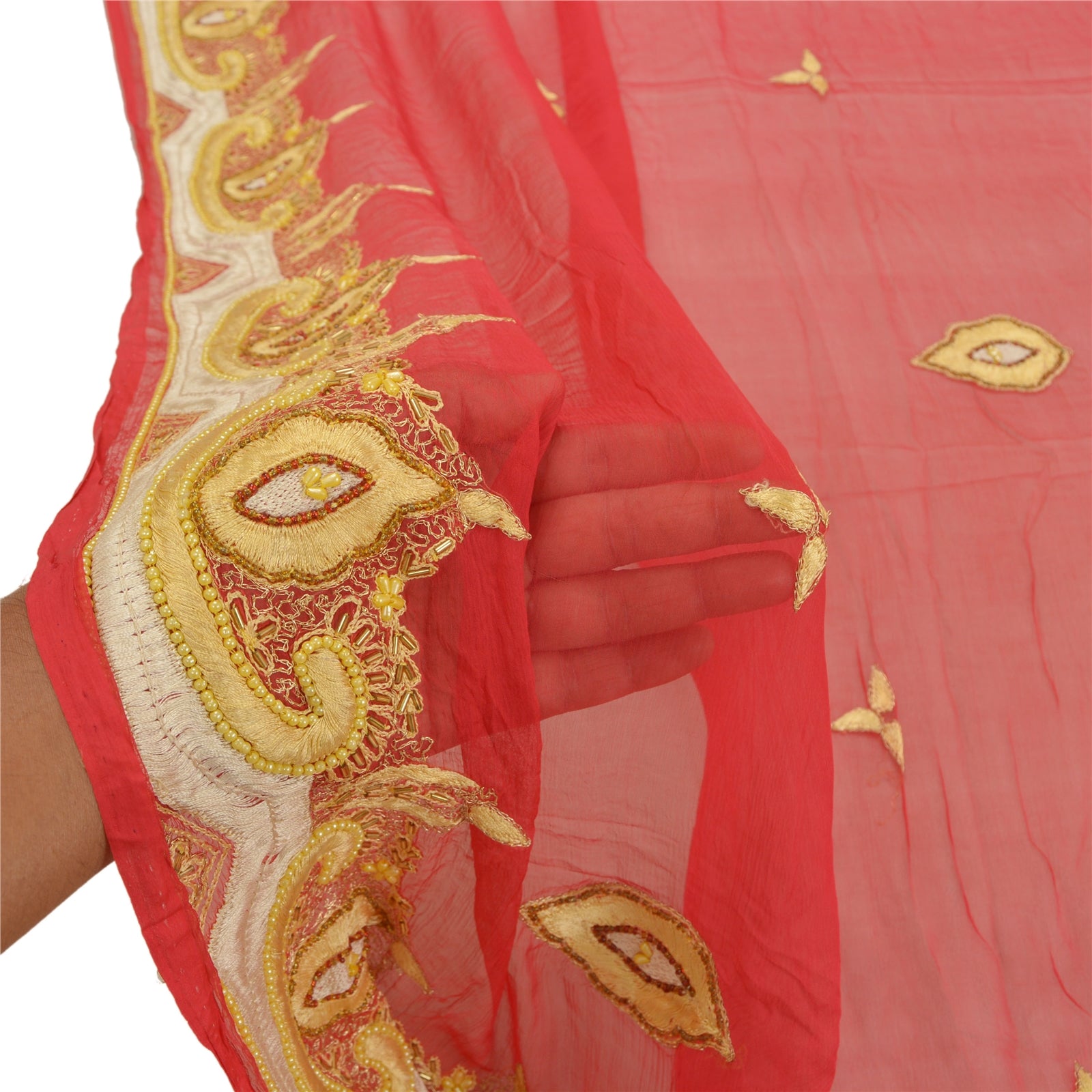 Санскрити Винтаж Дупатта Длинный Палантин Чистый Шелковый Шифон Красная Ручная Расшитая Бисером Фата