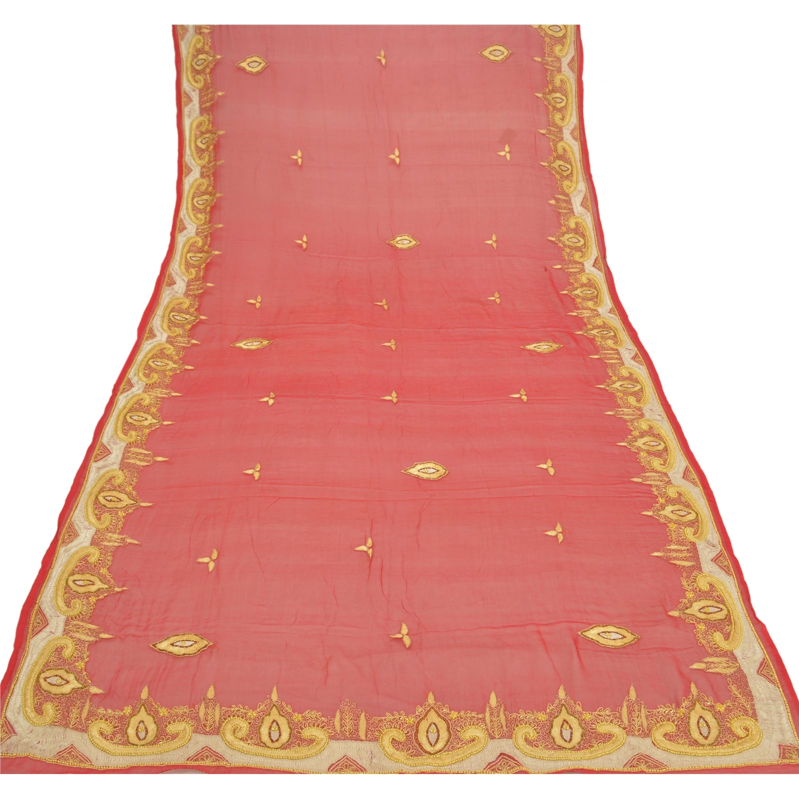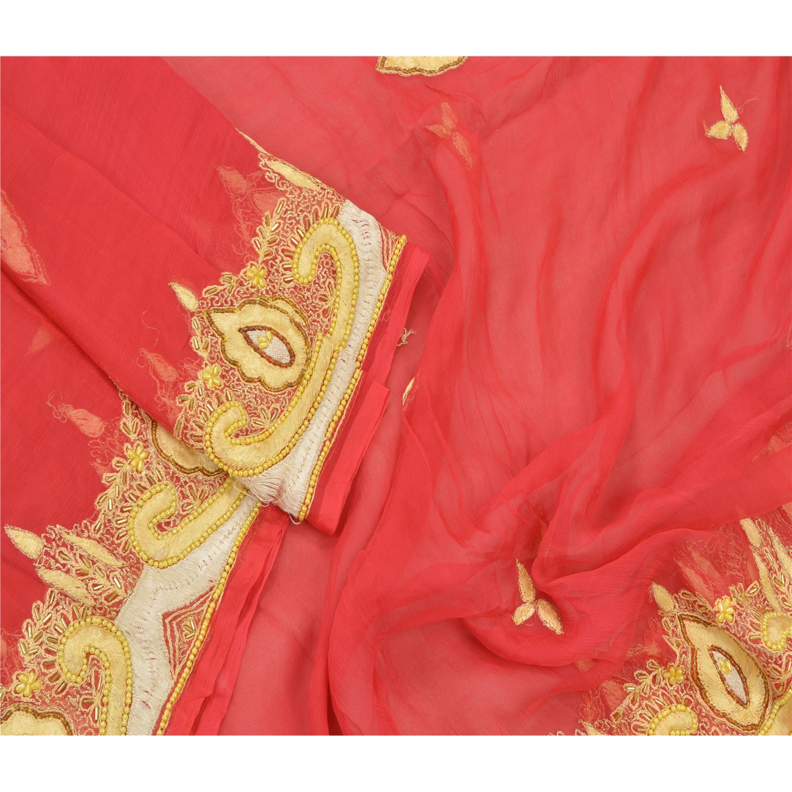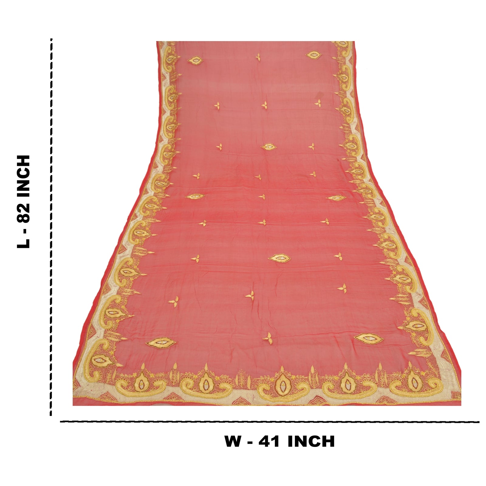 Санскрити Винтаж Дупатта Длинный Палантин Чистый Шелковый Шифон Красная Ручная Расшитая Бисером Фата