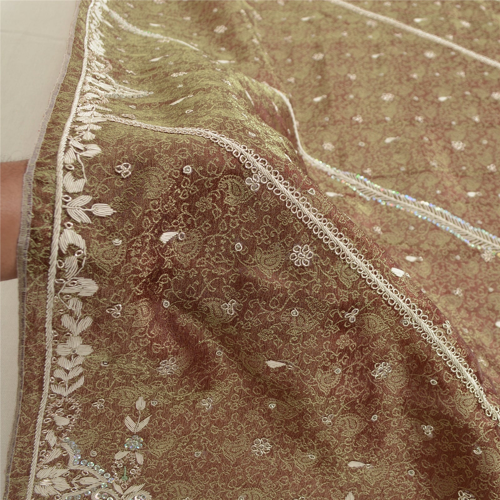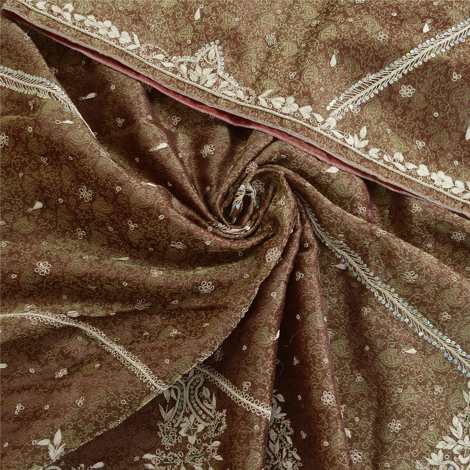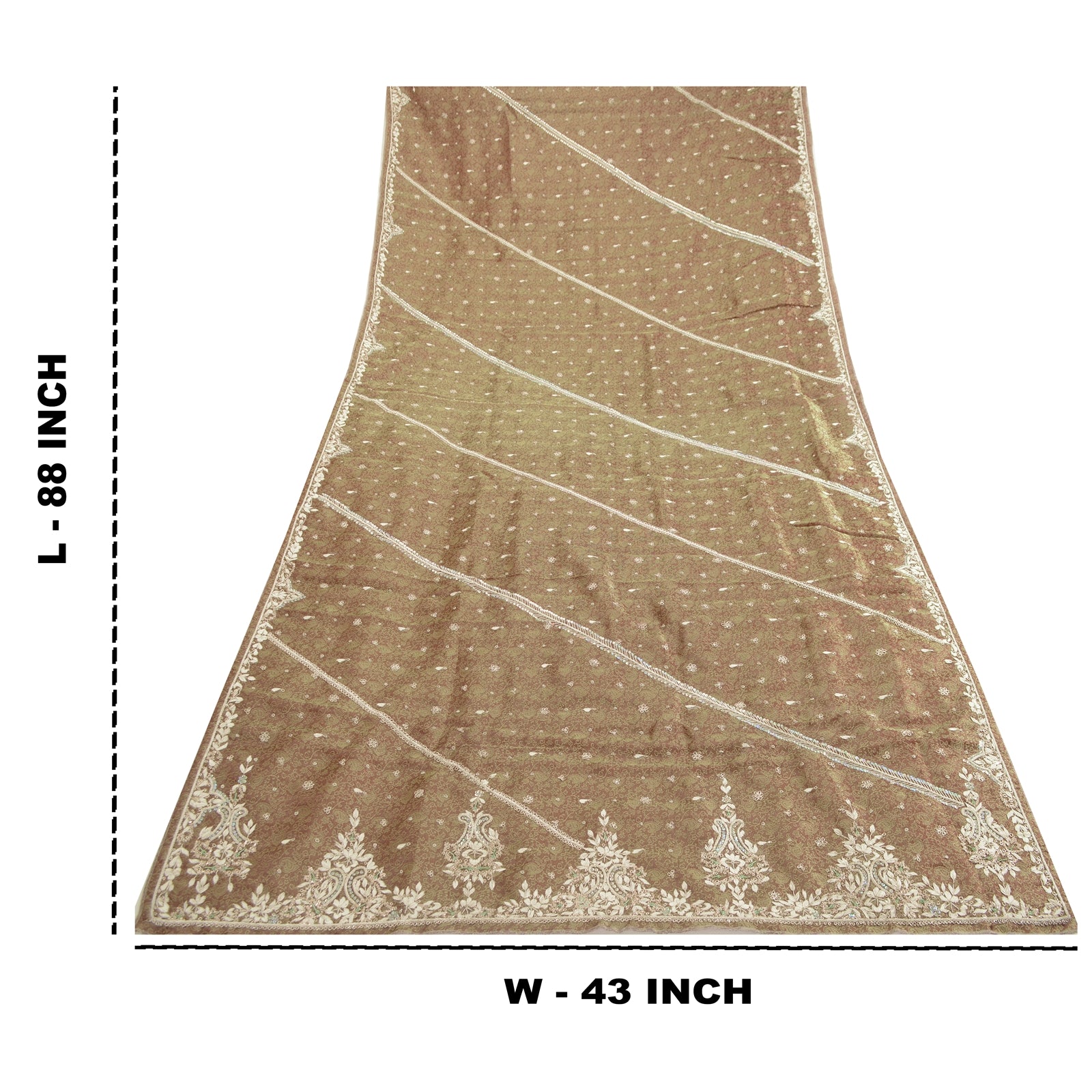 'THE ITEM COLOR OR SHADE MAY BE DARKER OR LIGHTER THAN THE PICTURE.' Stunning Dupatta Hand Embroidered Woven Tissue Dupatta/Stole In Shade Of Brown Color Fabric. This one of a kind item is difficult to express in words. Border has floral design embroidered with golden zari woven work embellished with metallic golden zardozi work golden/green dabka work, white glass beads, silver sequins work. Also you can see the center portion of the dupatta has similar zari woven work with golden zardozi work with floral motifs. Zardozi work is giving a fabulous look to the dupatta. Awesome one !!! 'International buyers please note: Import duties, taxes, and charges are not included in the item price or postage cost. These charges are the buyer's responsibility. Please check with your country's customs office to determine what these additional costs will be prior to bidding or buying. Buyer will pay custom duty/tax. It is calculated and charged differently by every country. As a seller I do not have any control over it. VAT or sales tax is calculated by the platform at the time of checkout. Customs charge is payable at the time of delivery.'