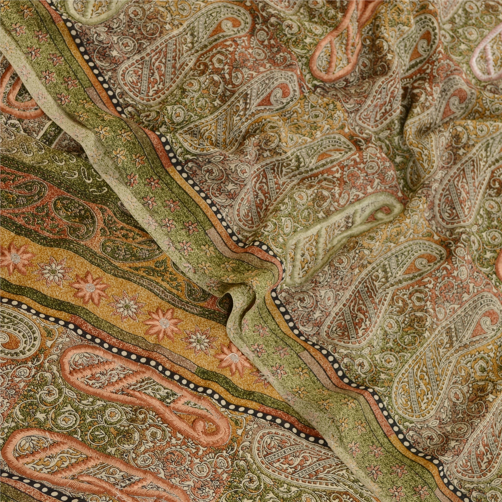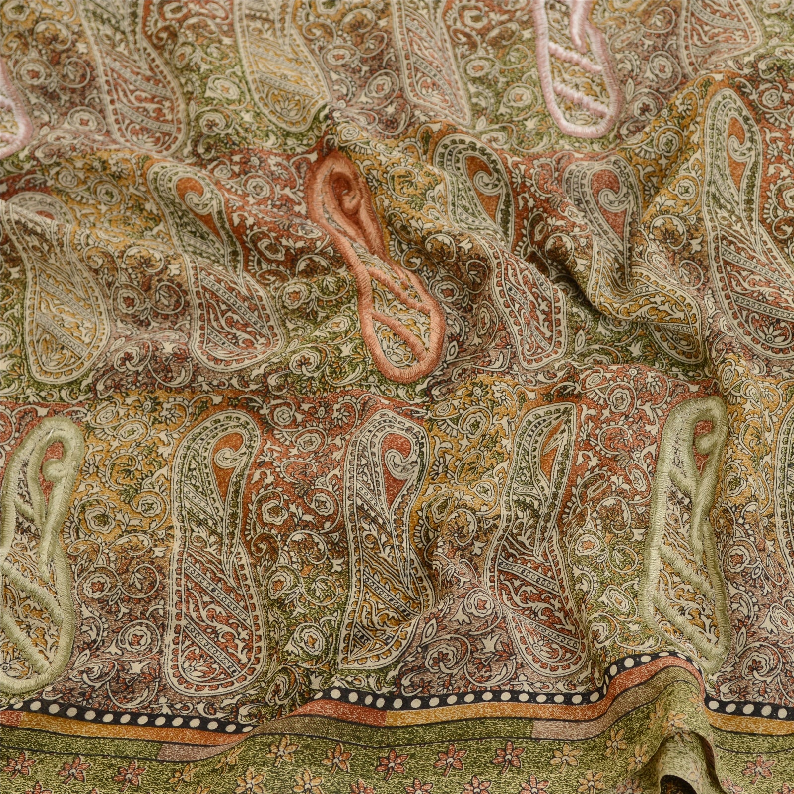 Красивое сари зеленого цвета с принтом из жоржета. Pallu & Border предлагает напечатанный цветочный и пейсли-дизайн с использованием нитей. Похожий цветочный и узорчатый узор можно увидеть в центральной части сари. Это уникальное винтажное сари можно использовать для различных идей по рукоделию, даже если вы не хотите использовать его как сари. Спроектируйте платье, используйте его как окно, гардероб, обивку, саронги, плед, для пошива платьев и столового белья и многое другое. Дайте волю своим творческим сокам и используйте эту декорированную устойчивую ткань в различных модах.