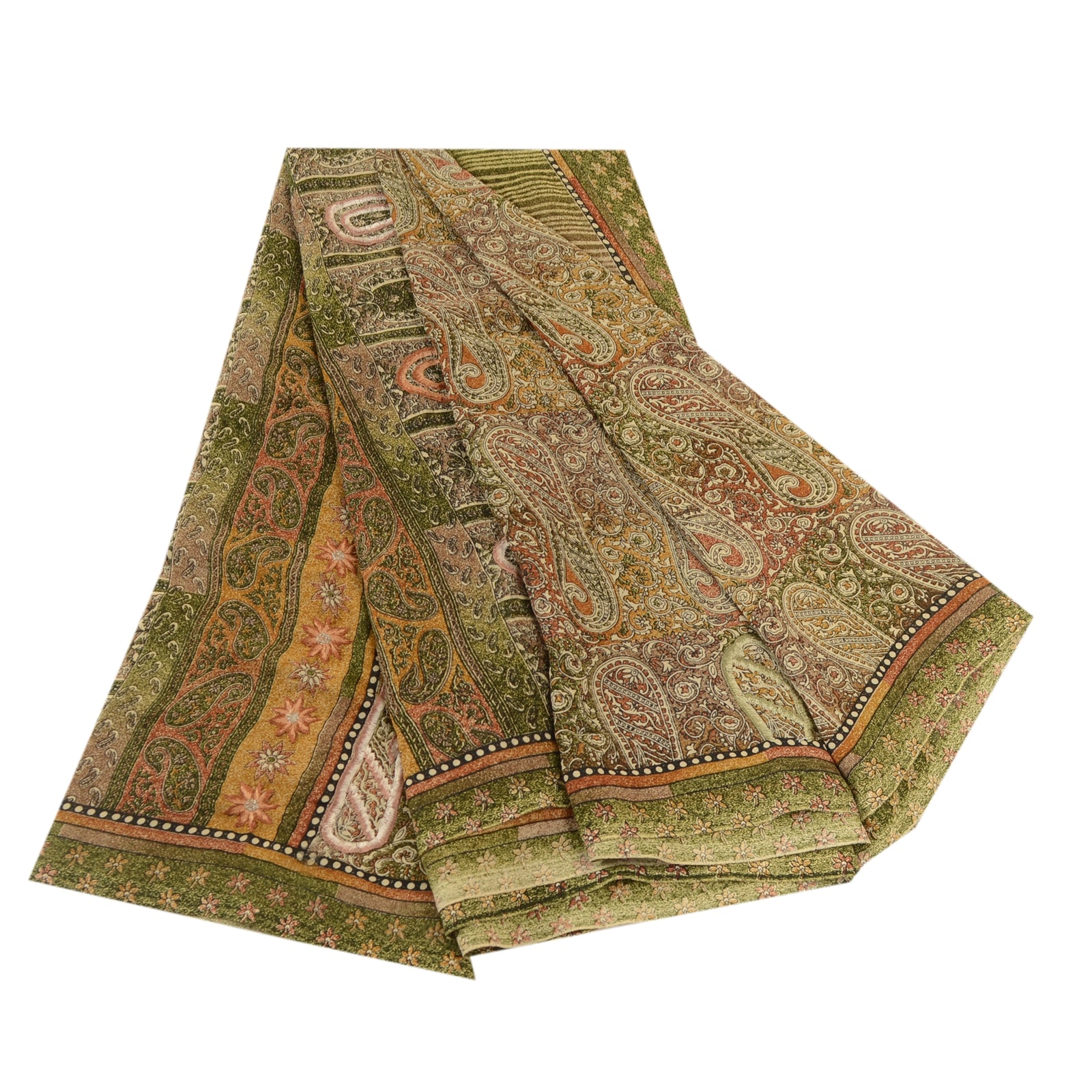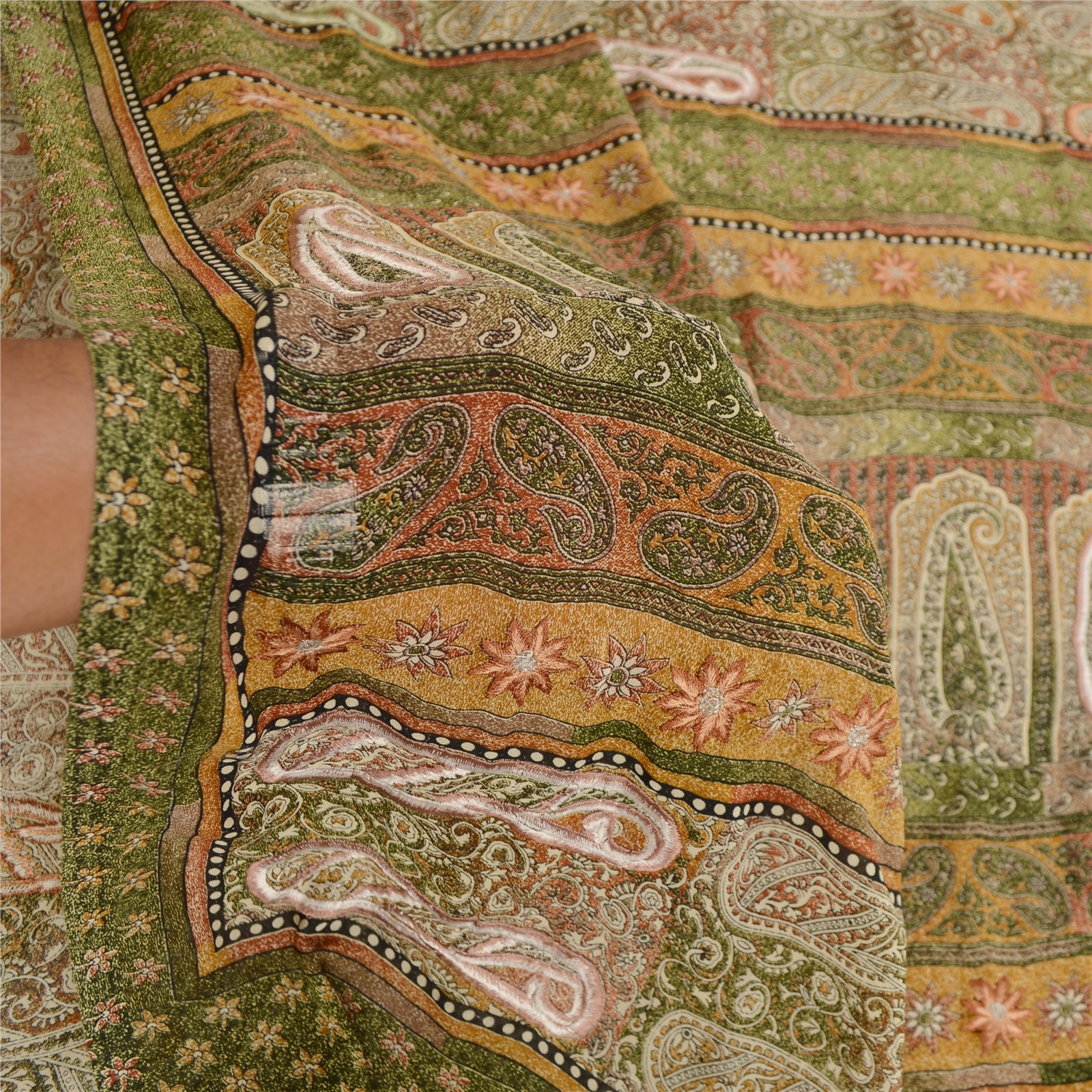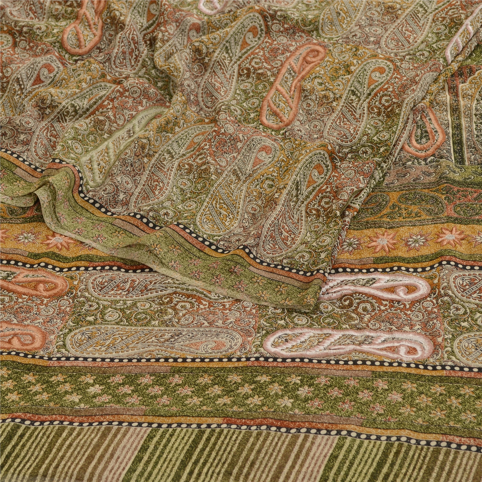 Санскрити Винтаж Зеленые Индийские Сари Жоржет Печатный Сари Ремесло 5 Ярдов Экологичная Ткань