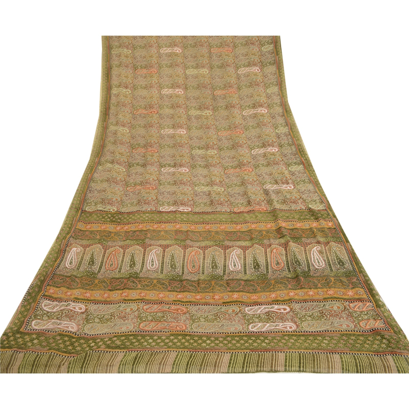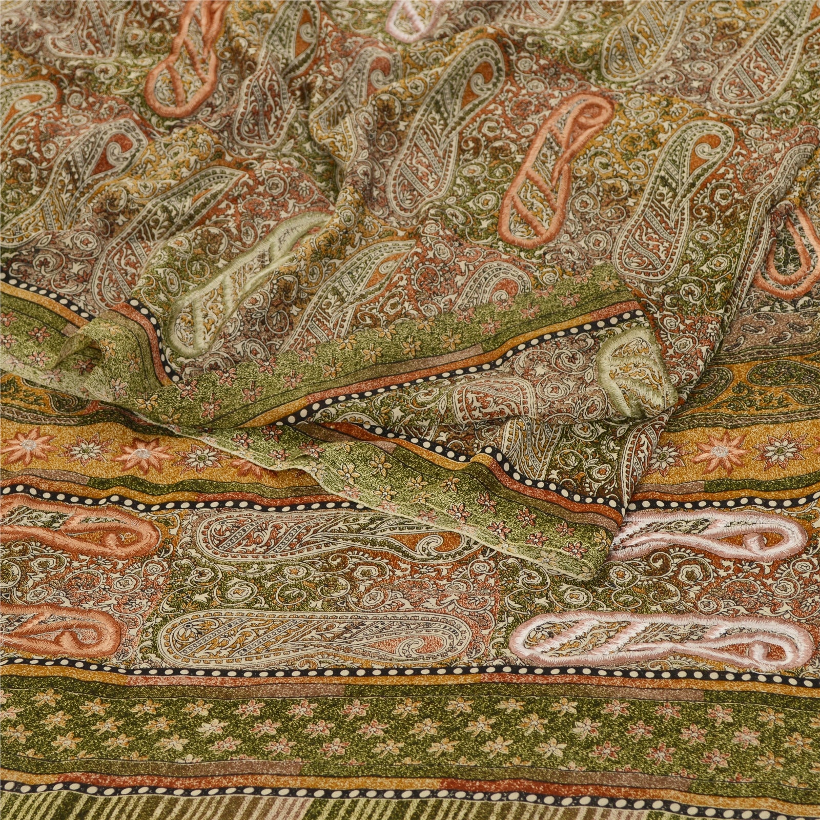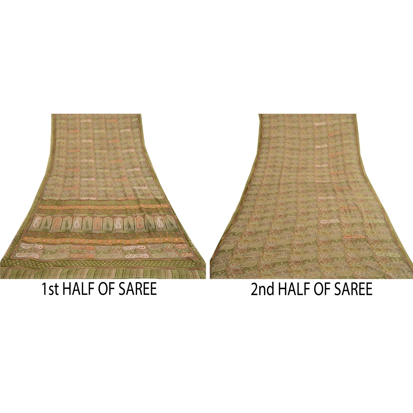 Санскрити Винтаж Зеленые Индийские Сари Жоржет Печатный Сари Ремесло 5 Ярдов Экологичная Ткань
