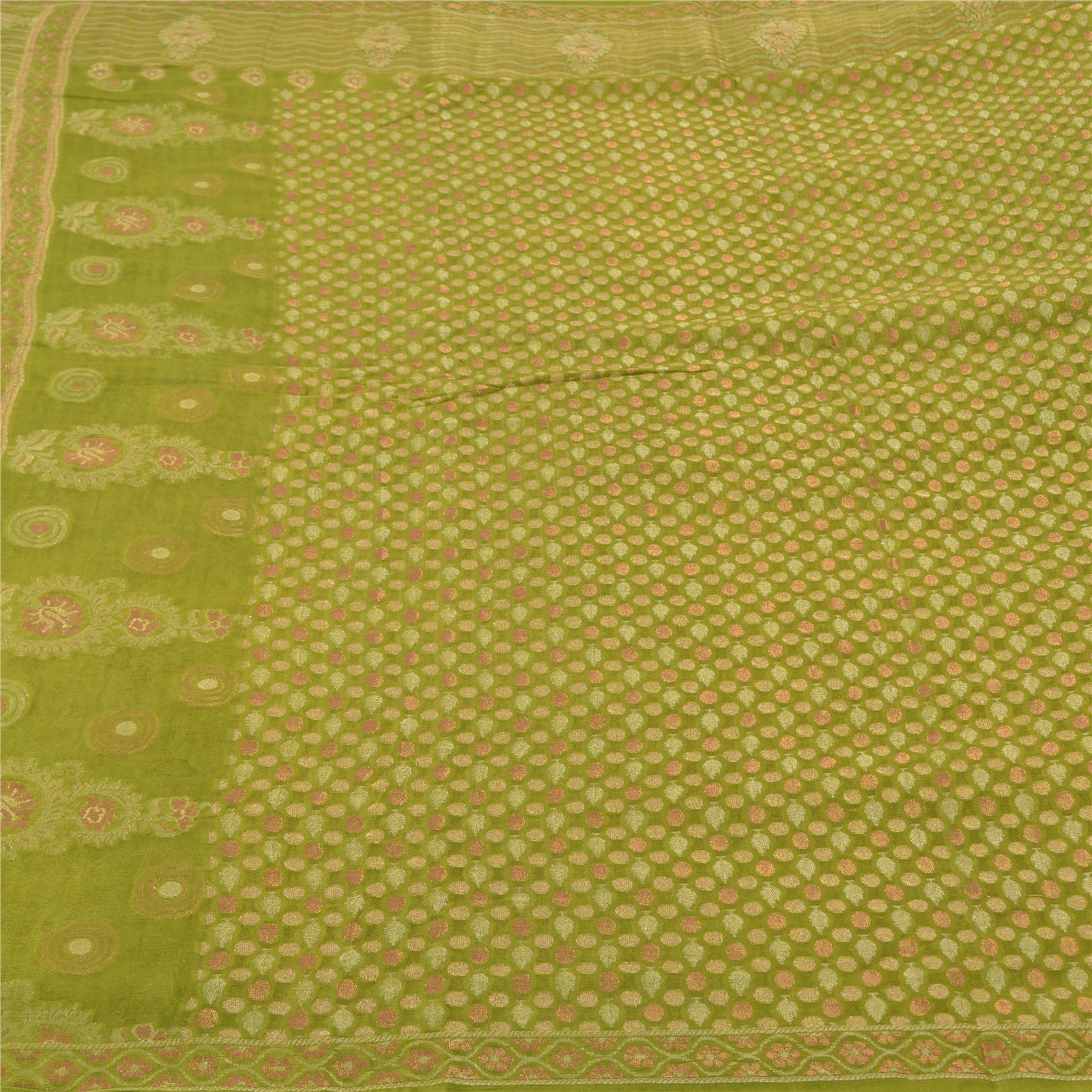 Sanskriti Vintage Green Indian Sarees Pure Silk Woven Premium Sari 5YD Fabric