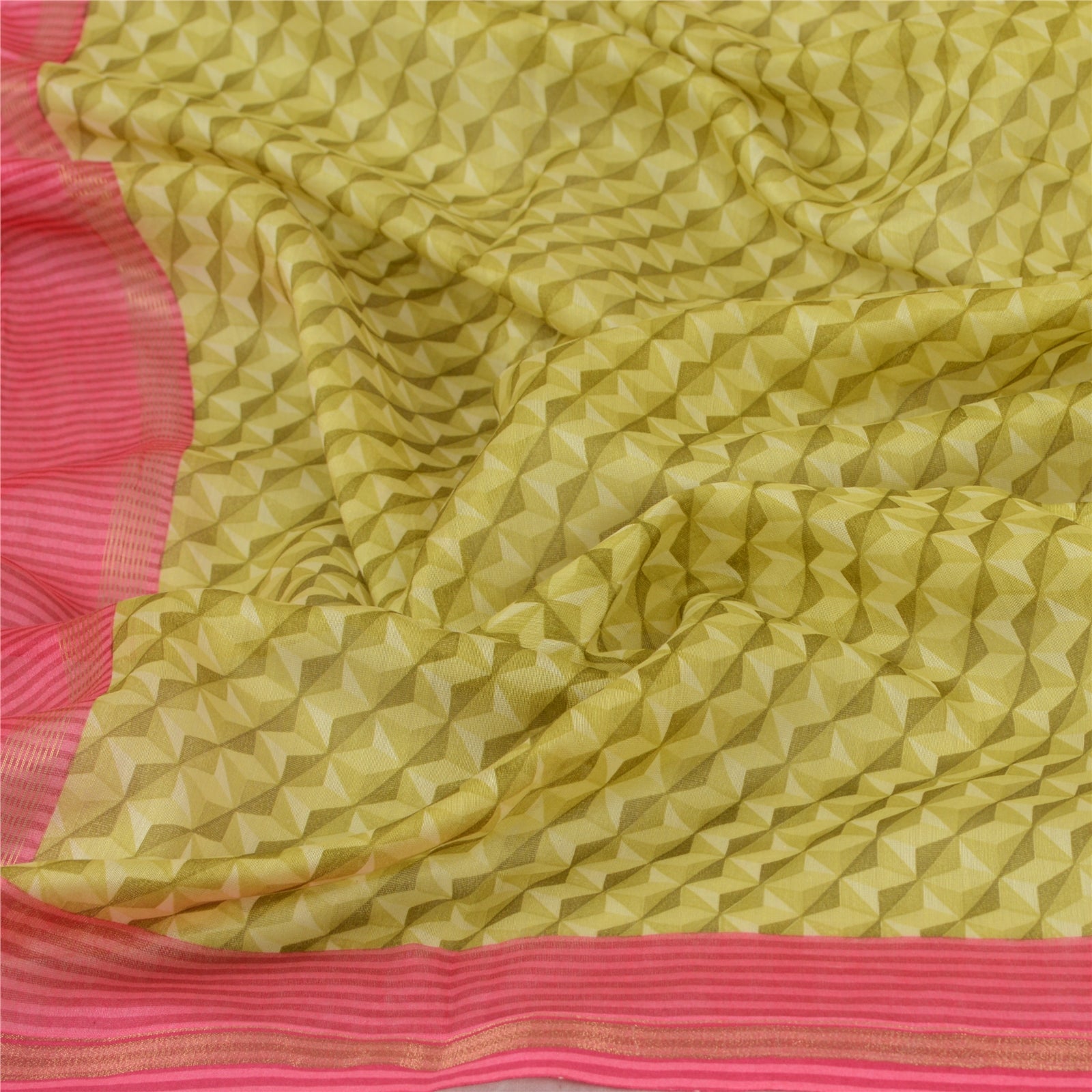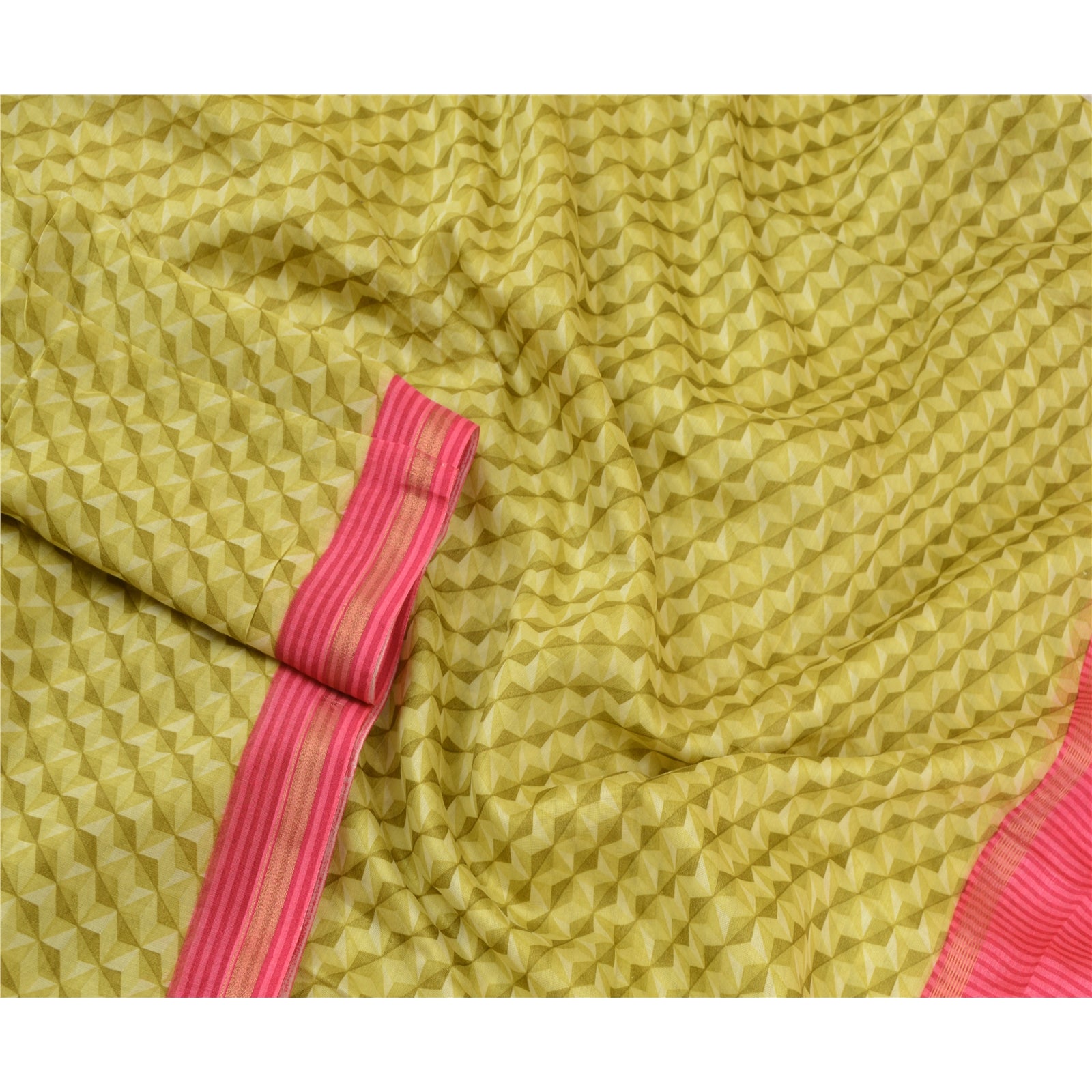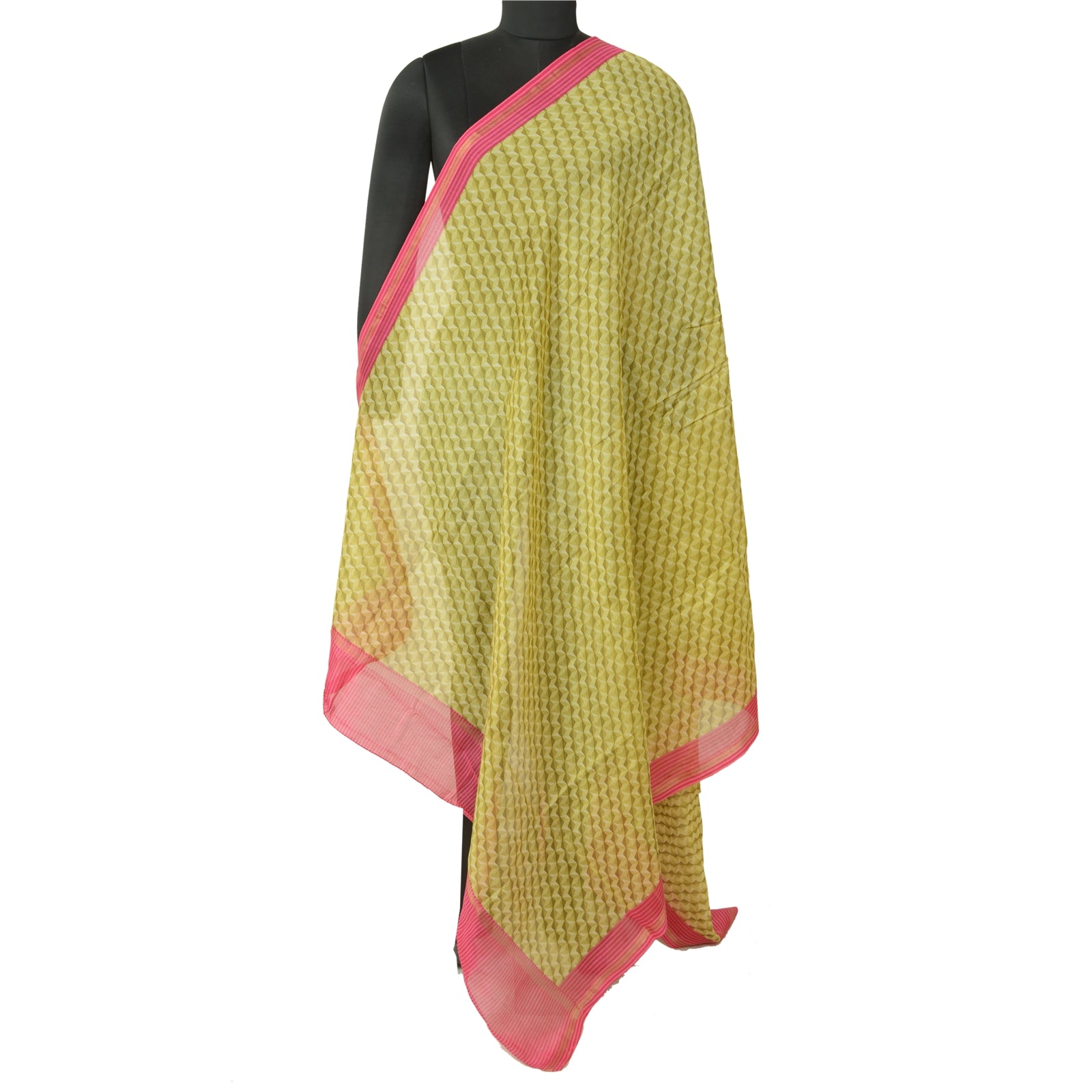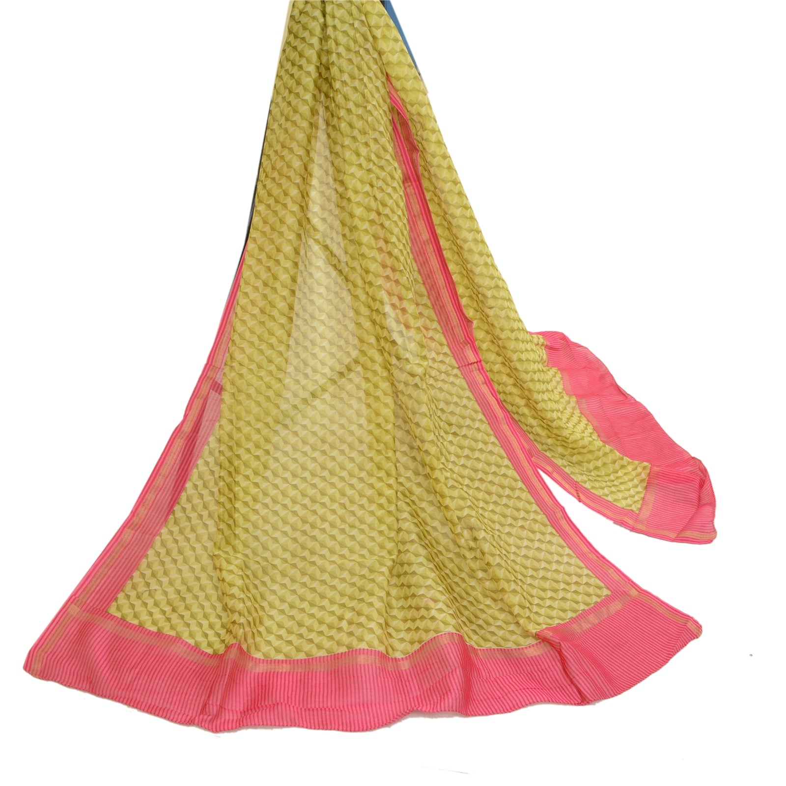 Санскрити Винтаж Зеленый Длинный Дупатта Палантин Хлопок Шелк Печатный Мягкий Шарф