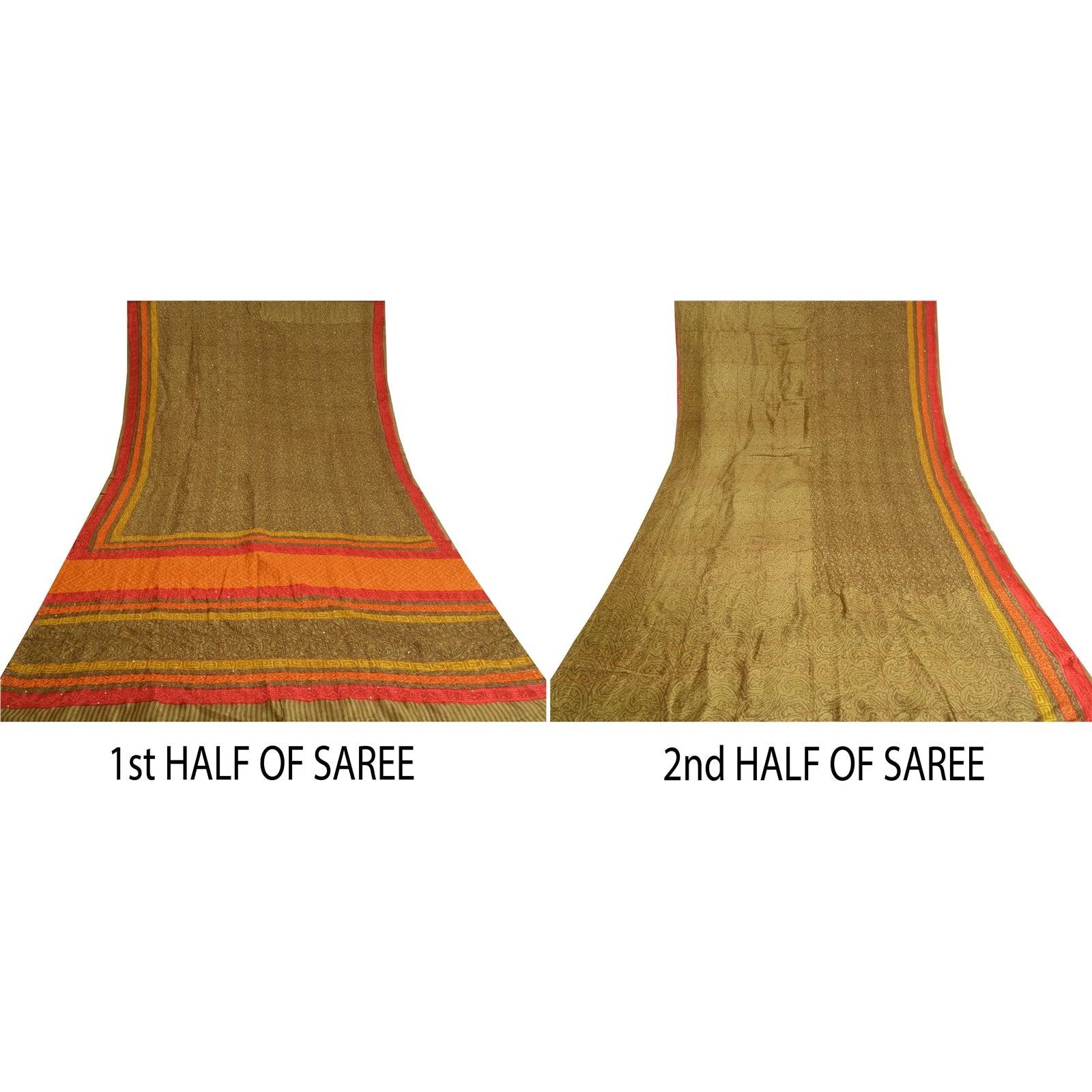 Сари Sanskriti Vintage Green/Orange из чистого шелка, расшитые вручную бисером, премиальная ткань для сари из экологически чистой ткани