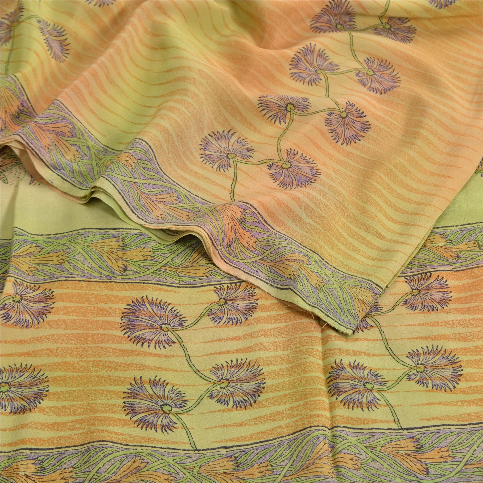 Сари Sanskriti Vintage Green, 100% чистый креп-шелк, напечатанное сари, 5 ярдов, устойчивая ткань