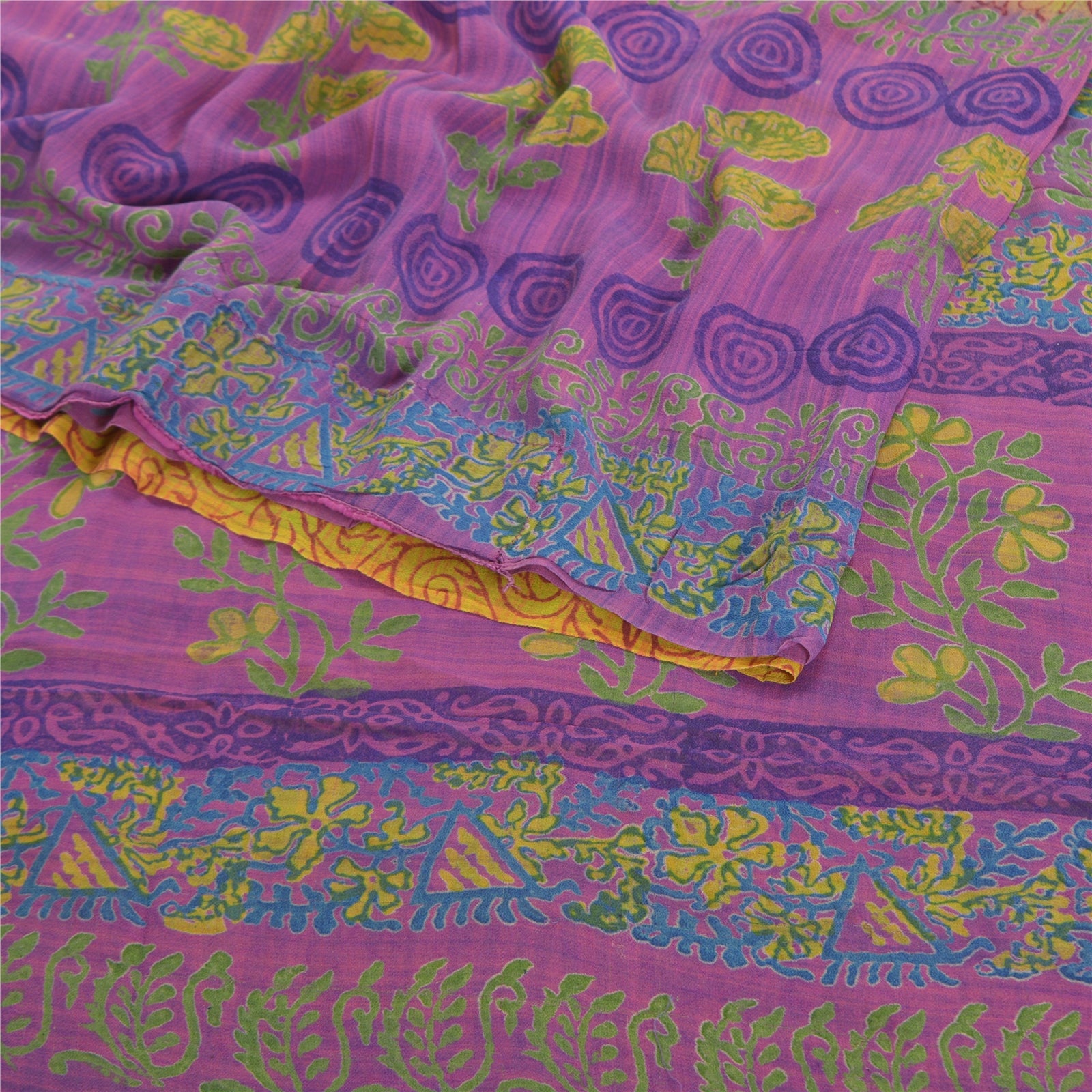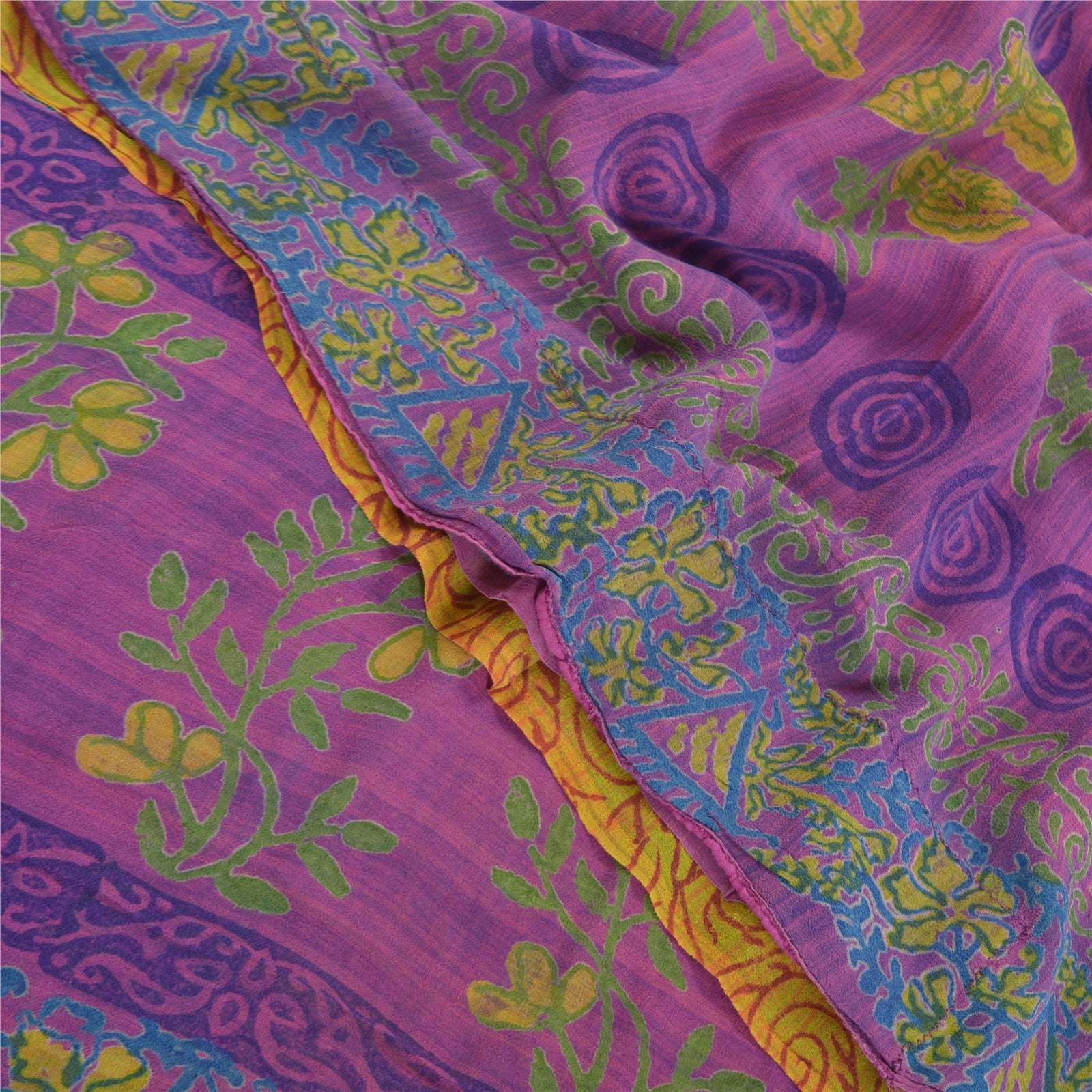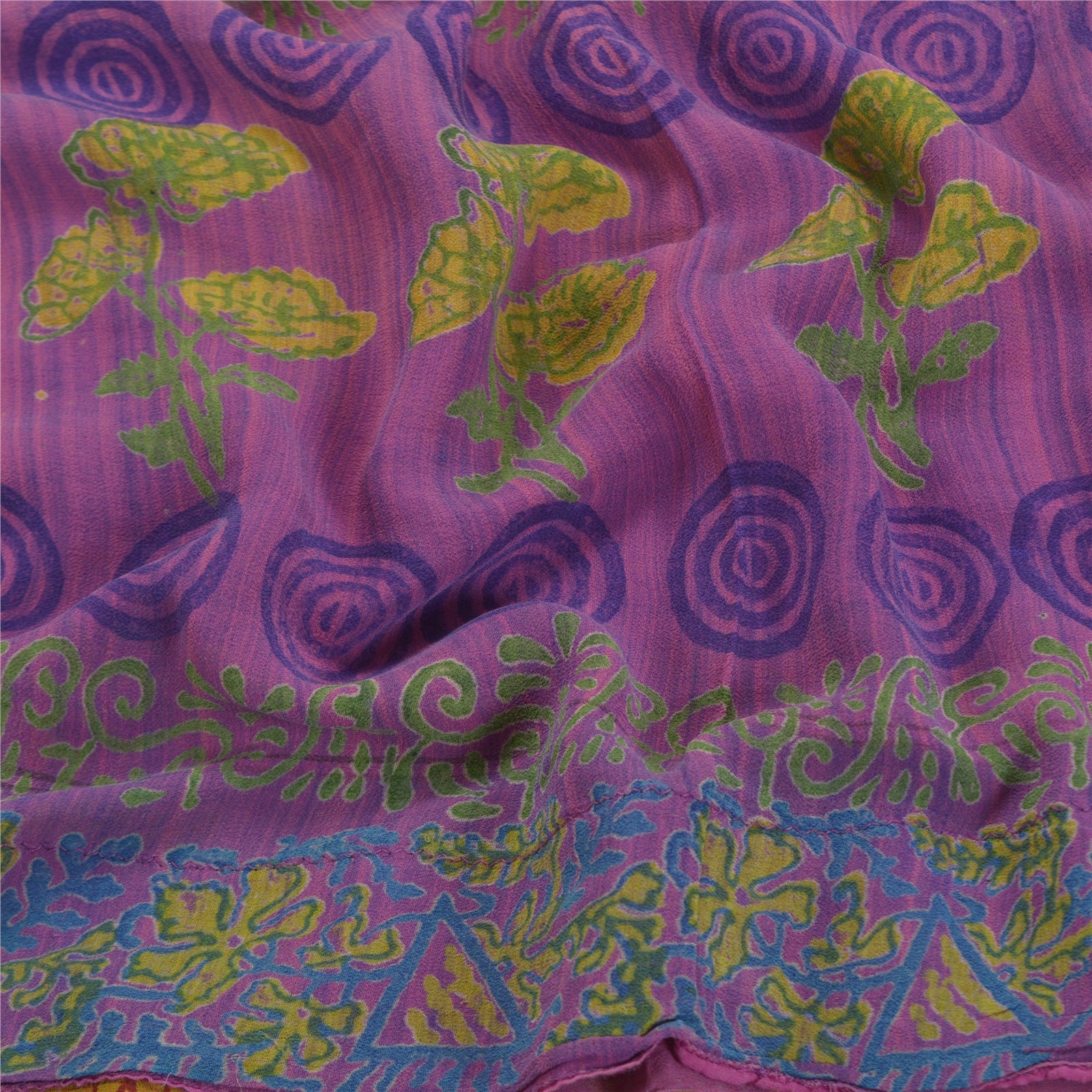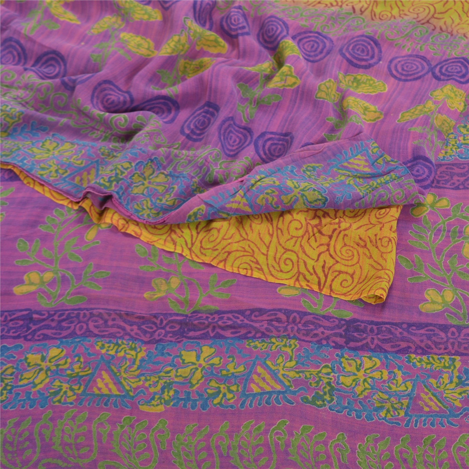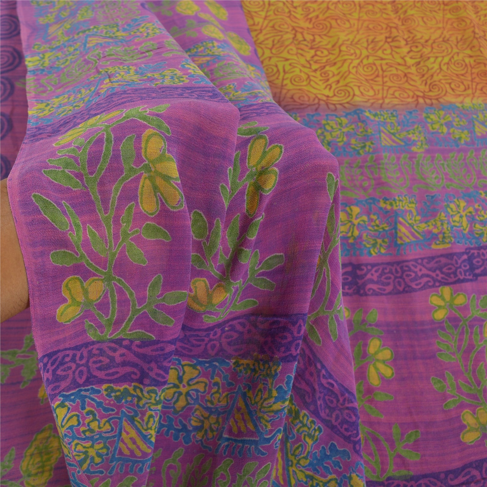Привлекающее внимание сари из чистого шелка-жоржета горчично-зеленого и фиолетового цвета с принтом. Pallu & Border напечатала цветочный узор. Цветочный узор в центральной части сари. Что особенного в этом сари? Великолепный дизайн на мягкой устойчивой ткани действительно подчеркивает красоту сари. Это уникальное винтажное сари можно использовать для различных идей по рукоделию, даже если вы не хотите использовать его как сари. Спроектируйте платье, используйте его в качестве украшения витрин, обивки, саронгов, пледов, для пошива платьев и столового белья и многого другого. Дайте волю своим творческим способностям и используйте эту декорированную устойчивую ткань в различных вариантах.