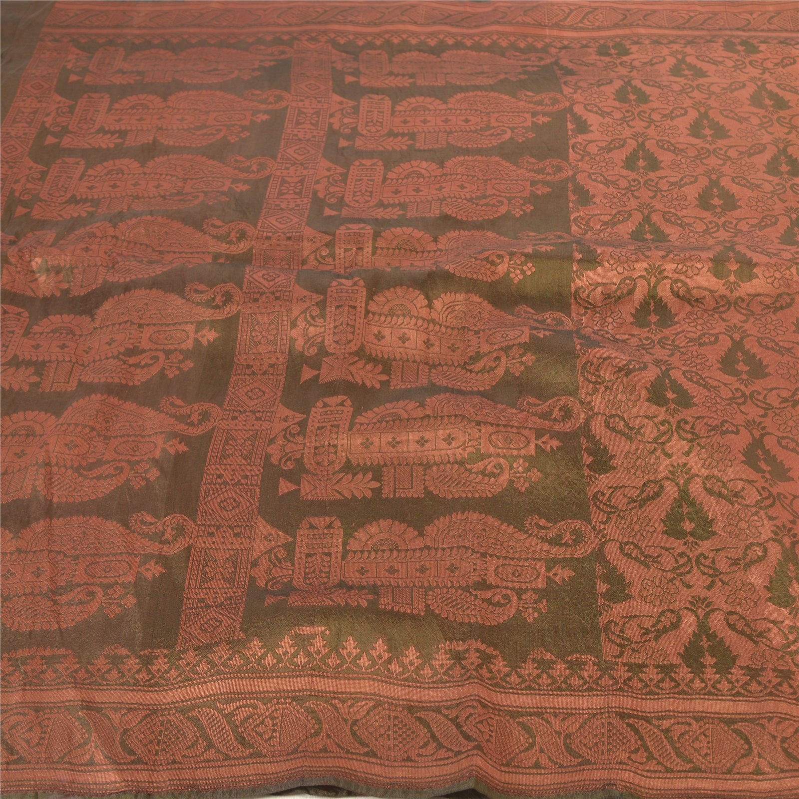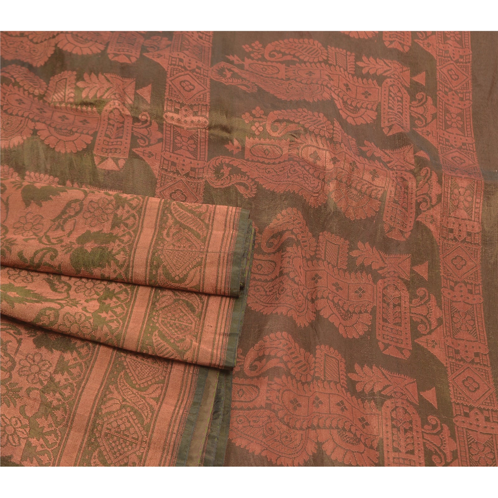 Красивое сари из зеленого смесового шелка ручной работы. Pallu & Border — это медная нить, сотканная вручную, с узором пейсли и цветочным рисунком. Центральная часть сари имеет аналогичный тканый цветочный рисунок. Это сари также можно использовать для различных идей для рукоделия. Используйте его для дизайна одежды, в качестве пледа, для оформления окон, обивки, столового белья и многого другого. Дайте волю своим творческим сокам. Для покупателей из США — один товар отправляется заказной авиапочтой, купите еще один, чтобы получить FedEx.