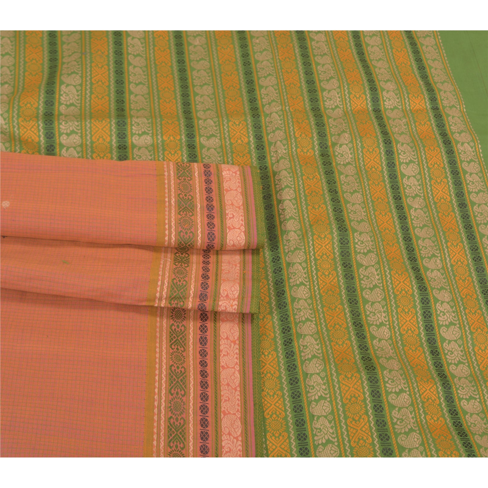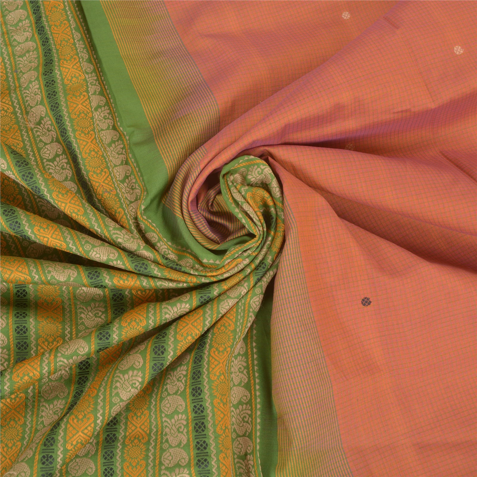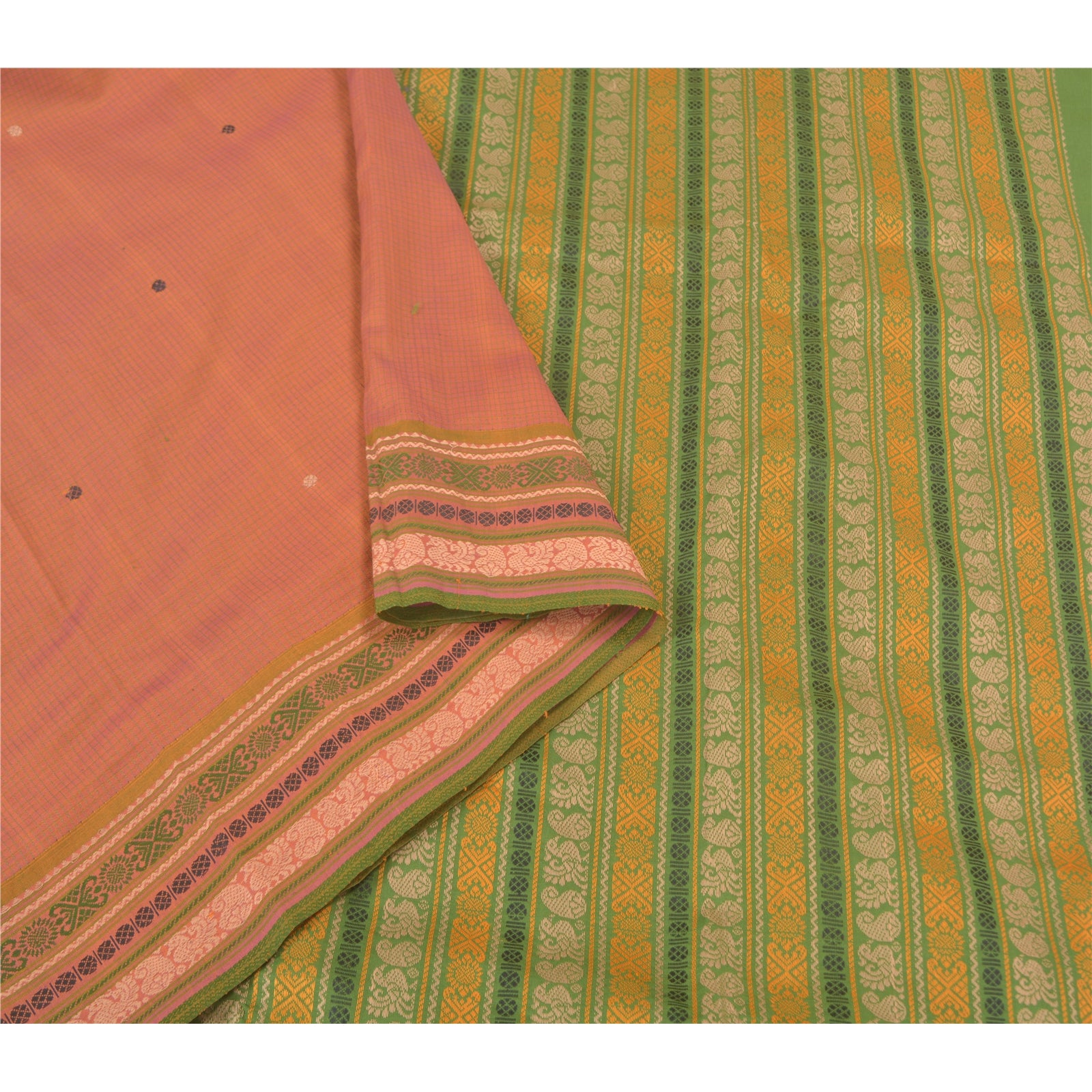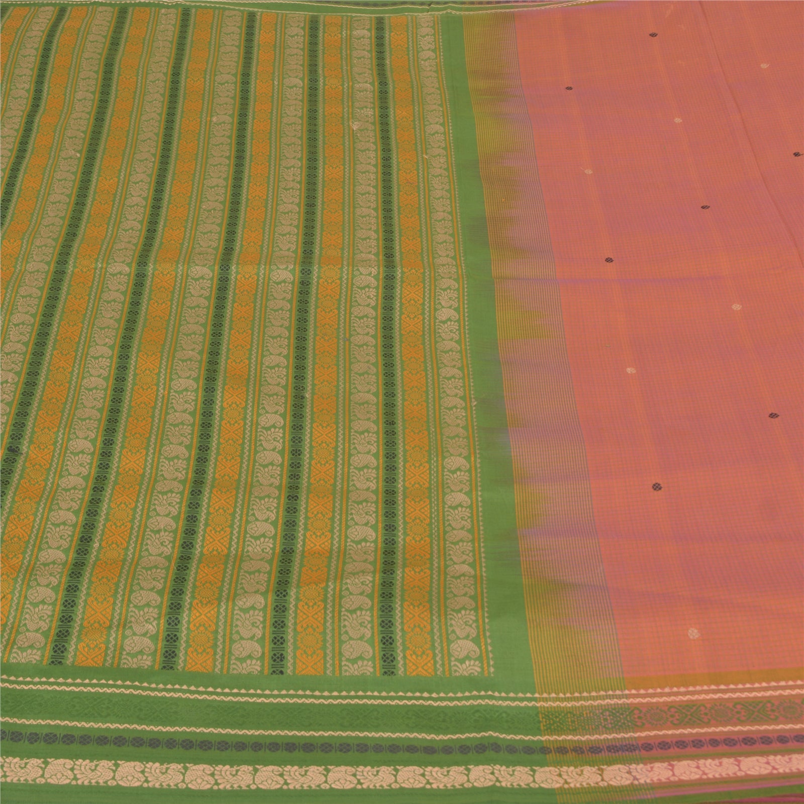 Красивое сари из смеси шелка зеленого и персикового цветов, сотканное вручную. Pallu & Border производит тканые изделия с прекрасными цветочными, пейслийскими и павлиньими узорами. Центр сари украшен аналогичным плетением нитей с цветочными мотивами. Это сари можно использовать и для различных идей рукоделия. Используйте его для дизайна одежды, в качестве пледа, для оформления окон, обивки, столового белья и многого другого. Дайте волю своим творческим сокам.