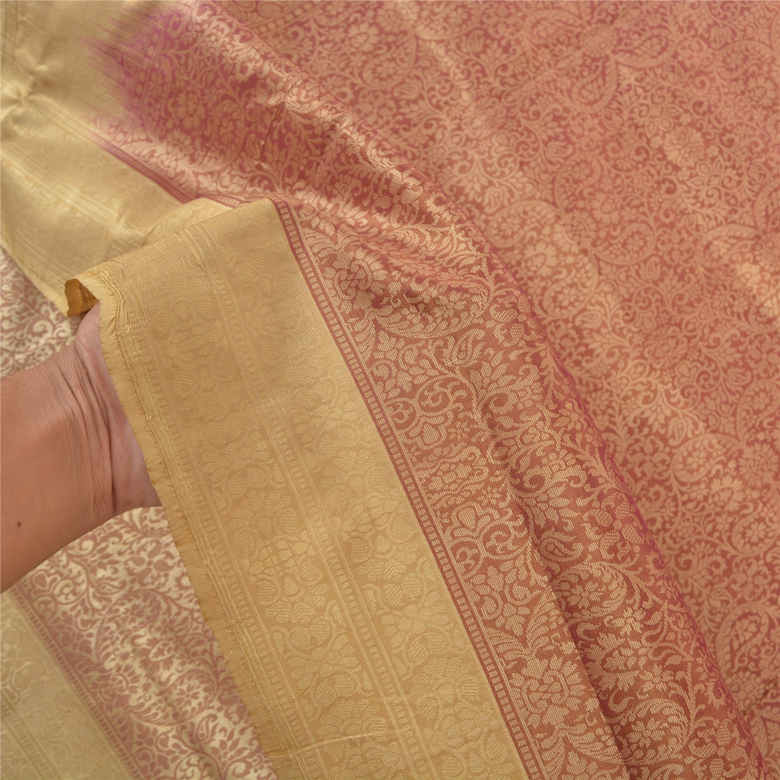 Sanskriti предлагает вам это винтажное элегантное тяжелое тканое сари в оттенках кирпично-красного и кремового цвета. Основа из экологически чистой ткани — чистый шелк, украшенный кремовым ткачеством, что делает его еще более особенным. Цветочный дизайн выглядит красиво. Тканое изделие действительно делает его уникальным сари. Это уникальное винтажное сари можно использовать для различных идей по рукоделию, даже если вы не хотите использовать его как сари. Спроектируйте платье, используйте его как плед, как украшение для окон, обивку, столовое белье и многое другое. Дайте волю своим творческим способностям и используйте эту декорированную устойчивую ткань в различных вариантах. Поскольку сари является винтажным, возможны небольшие пятна/повреждения.
