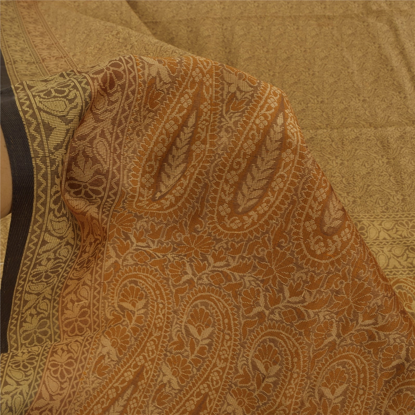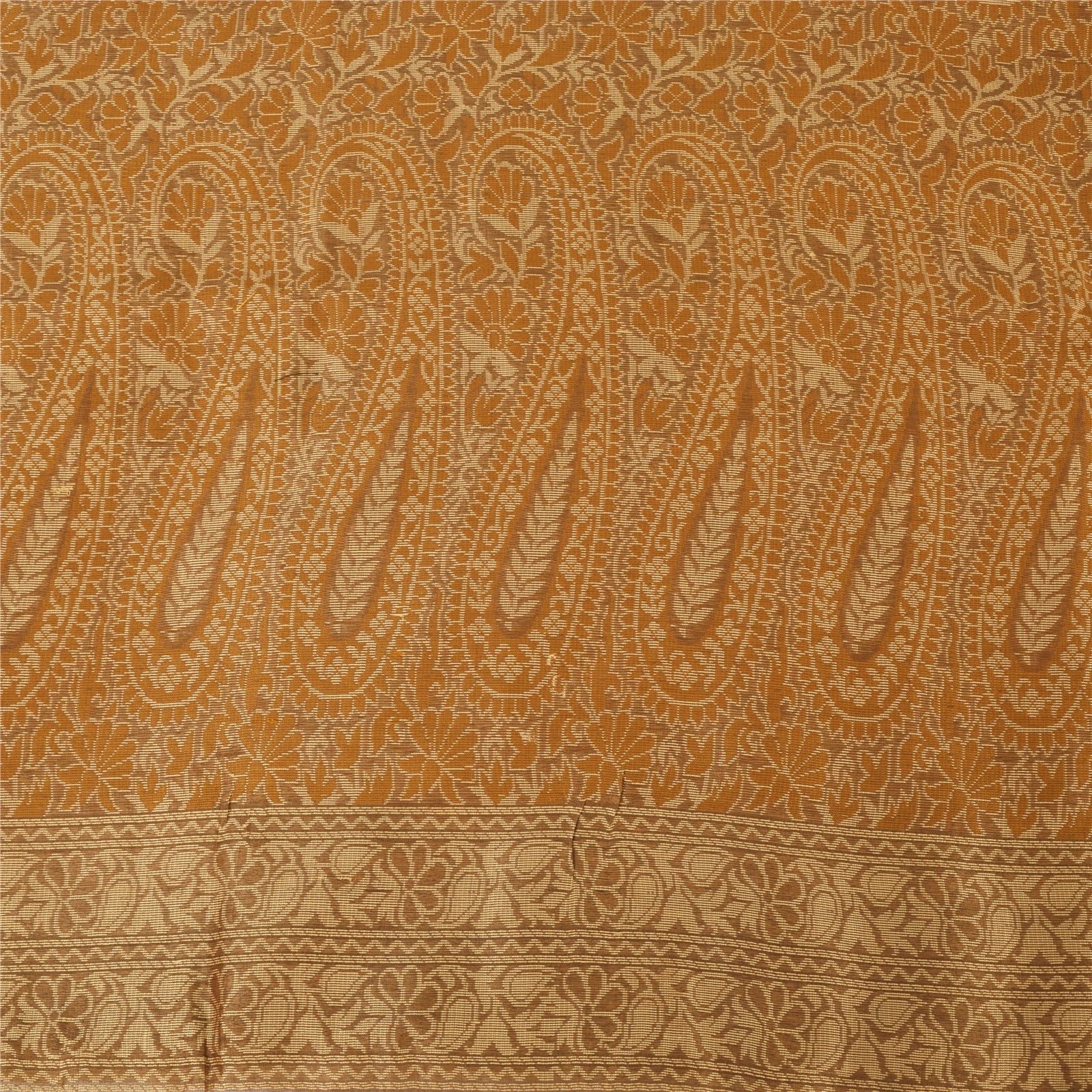 Sanskriti Vintage Indian Brown Sarees Pure Cotton Woven Premium Sari 5yd Fabric
