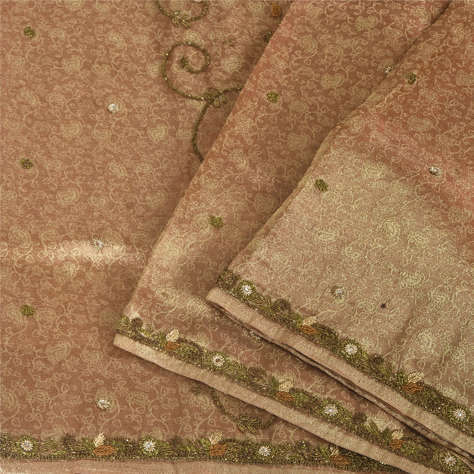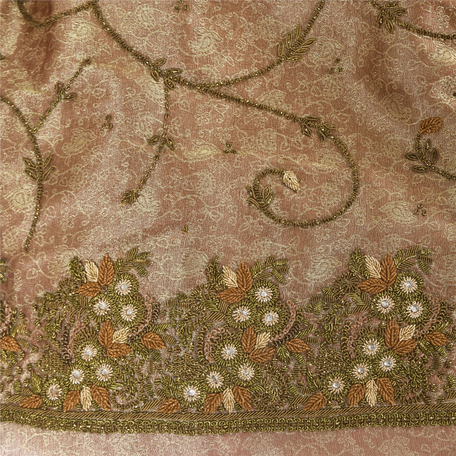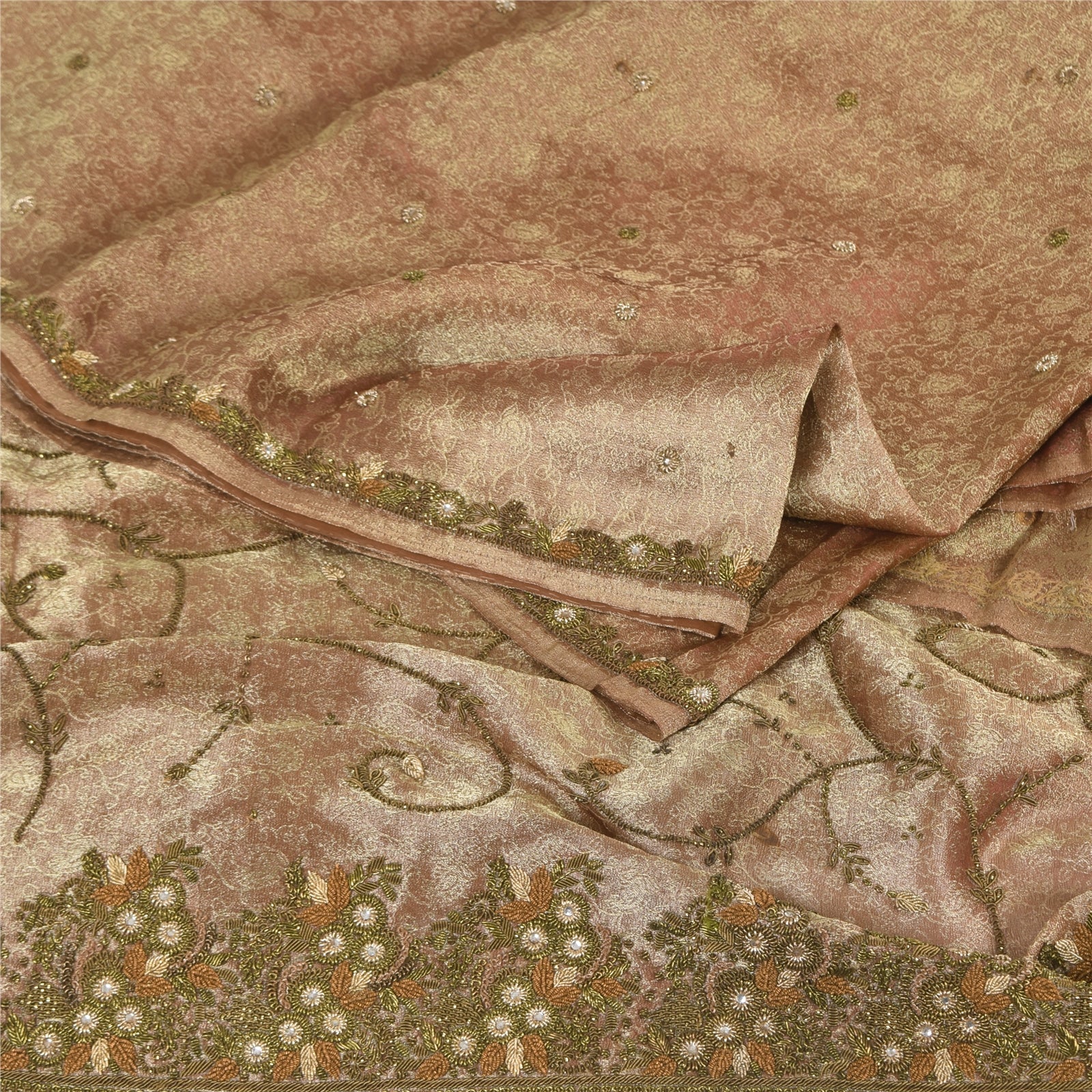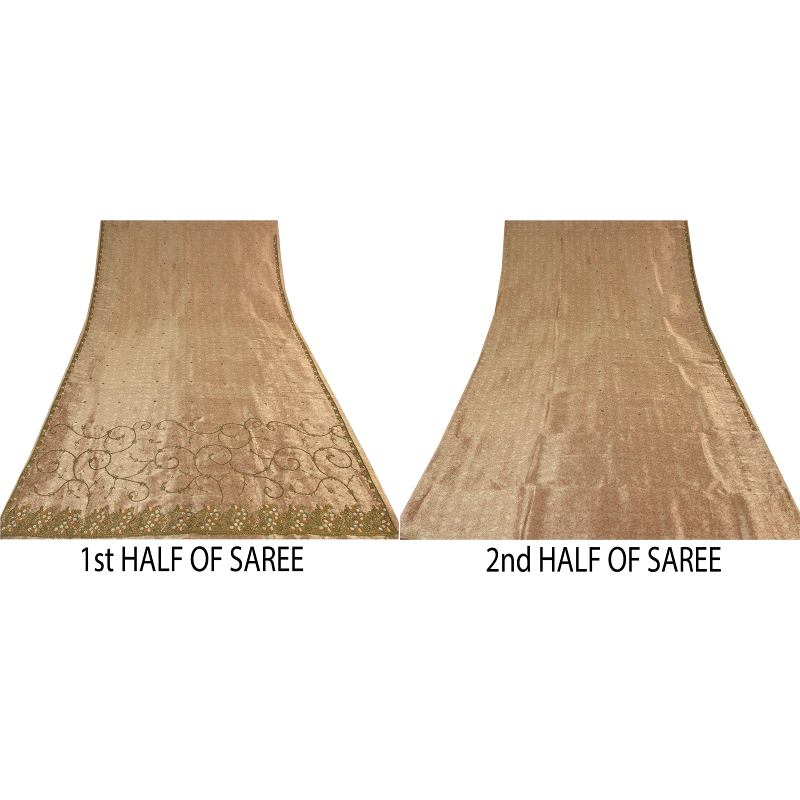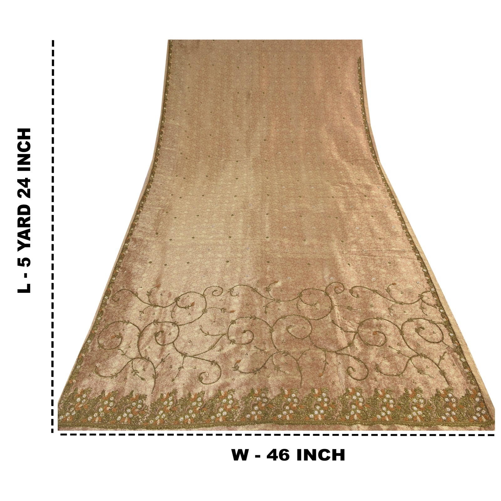 Sanskriti Vintage Indian Brown Sarees Tissue Hand Beaded Ethnic 5yd Craft Fabric