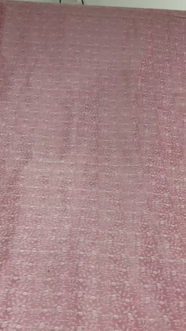 ? Красивое розовое сари из тканой ткани с ручной вышивкой ? Pallu & Border отличается цветочным дизайном, украшенным золотыми узорами зари/дабка, золотыми/красными узорами зардози, серебряными/красными пайетками. ? В центральной части сари присутствуют цветочные мотивы с похожей работой. Что особенного в этом сари? Сверкающие пайетки с цветочным узором на розовой основе из экологически чистой ткани действительно подчеркивают красоту сари. Это уникальное винтажное сари можно использовать для различных идей по рукоделию, даже если вы не хотите использовать его как сари. Спроектируйте платье, используйте его как покрывало, как окно Гардероб, обивка, саронги, столовое белье и многое другое. Дайте волю своим творческим способностям и используйте эту декорированную устойчивую ткань в различных вариантах.