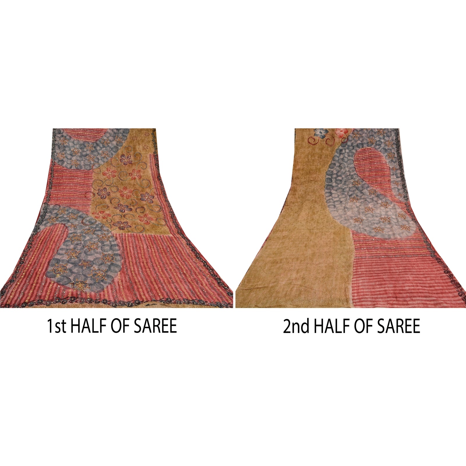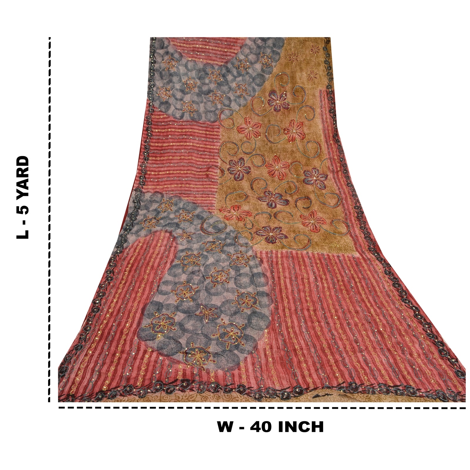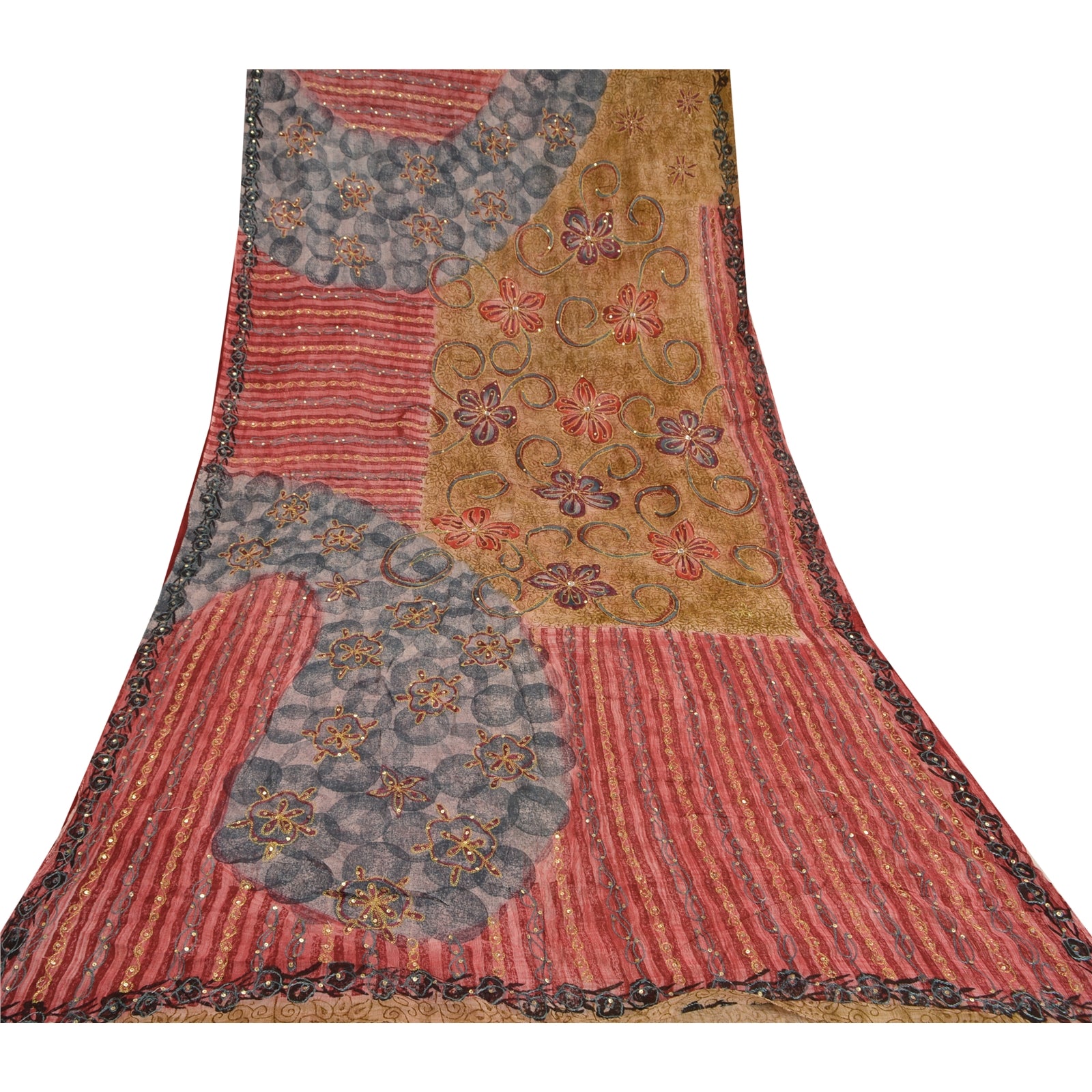 Санскритские винтажные индийские сари из смеси жоржета, расшитые вручную бисером, премиальная ткань для сари из экологически чистой ткани