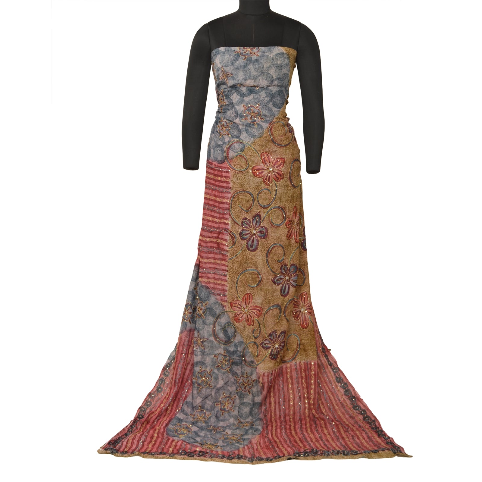 «ЦВЕТ ИЛИ ОТТЕНОК ИЗДЕЛИЯ МОЖЕТ БЫТЬ ТЕМНЕЕ ИЛИ СВЕТЛЕЕ, ЧЕМ НА ИЗОБРАЖЕНИИ». Красивое сари из разноцветного смесового жоржета с ручной вышивкой. Pallu напечатала узоры пейсли и цветы, вышитые нитками, золотыми зари и пайетками. Центр сари украшен цветочным принтом и пайетками. Это сари можно использовать и для различных идей рукоделия. Используйте его для дизайна одежды, в качестве пледа, для оформления окон, обивки, столового белья и многого другого. Дайте волю своим творческим сокам. «Международные покупатели, обратите внимание: Импортные пошлины, налоги и сборы не включены в цену товара или стоимость почтовых расходов. Эти сборы оплачивает покупатель. Пожалуйста, свяжитесь с таможней вашей страны, чтобы определить, какими будут эти дополнительные расходы, до торгов или покупки. Покупатель оплачивает таможенную пошлину/налог. Она рассчитывается и взимается по-разному в каждой стране. Как продавец, я не имею никакого контроля над ней. НДС или налог с продаж рассчитывается платформой во время оформления заказа. Таможенный сбор оплачивается во время доставки.