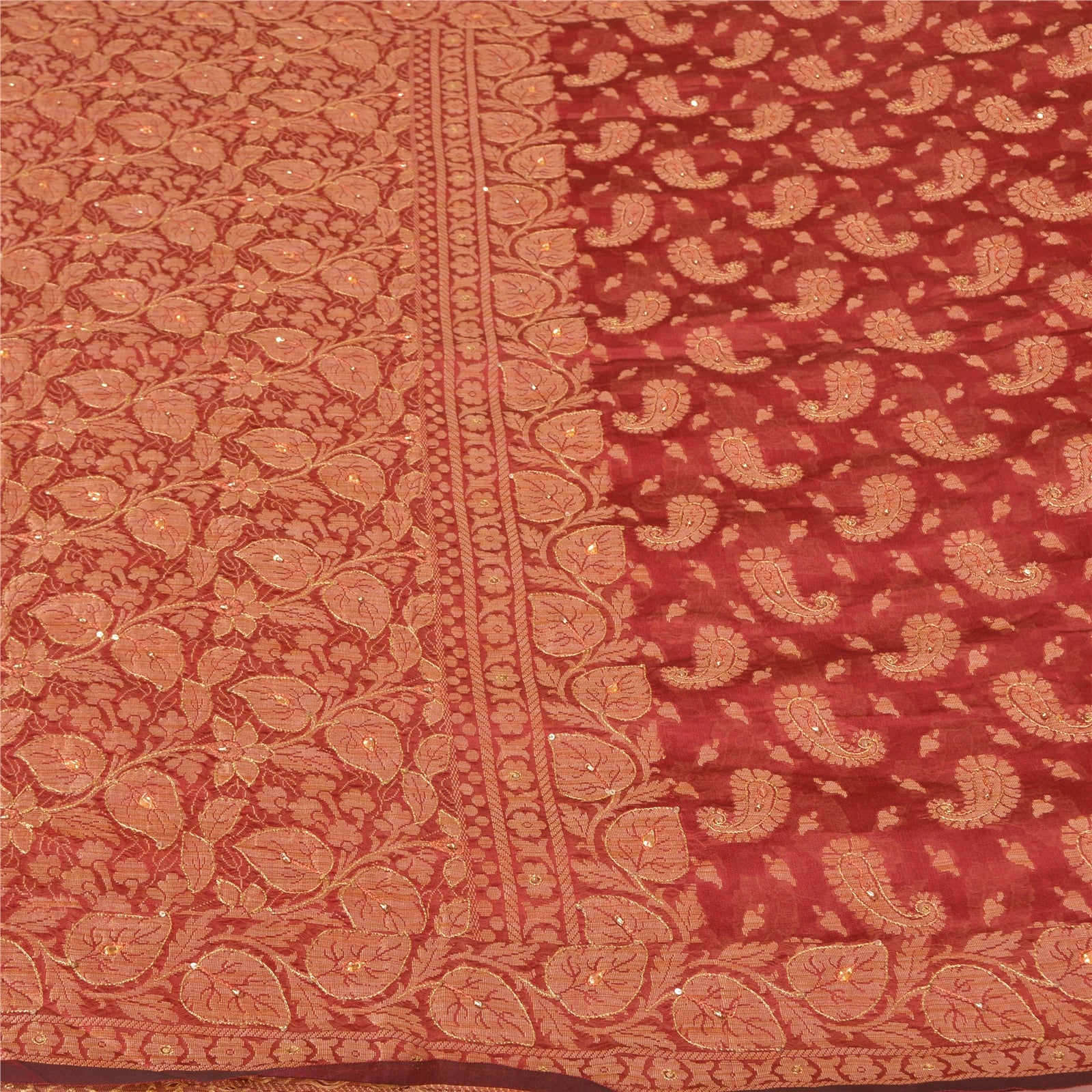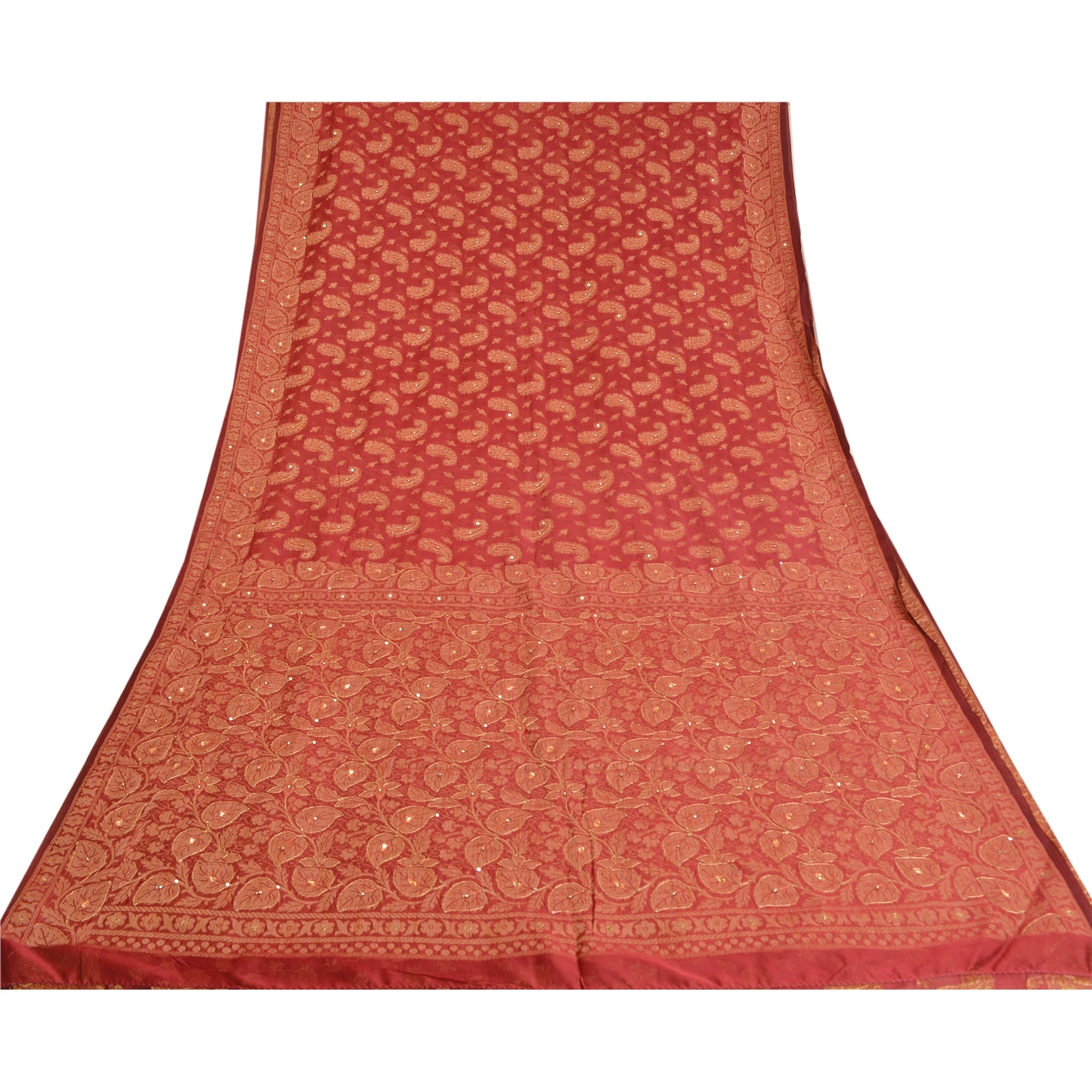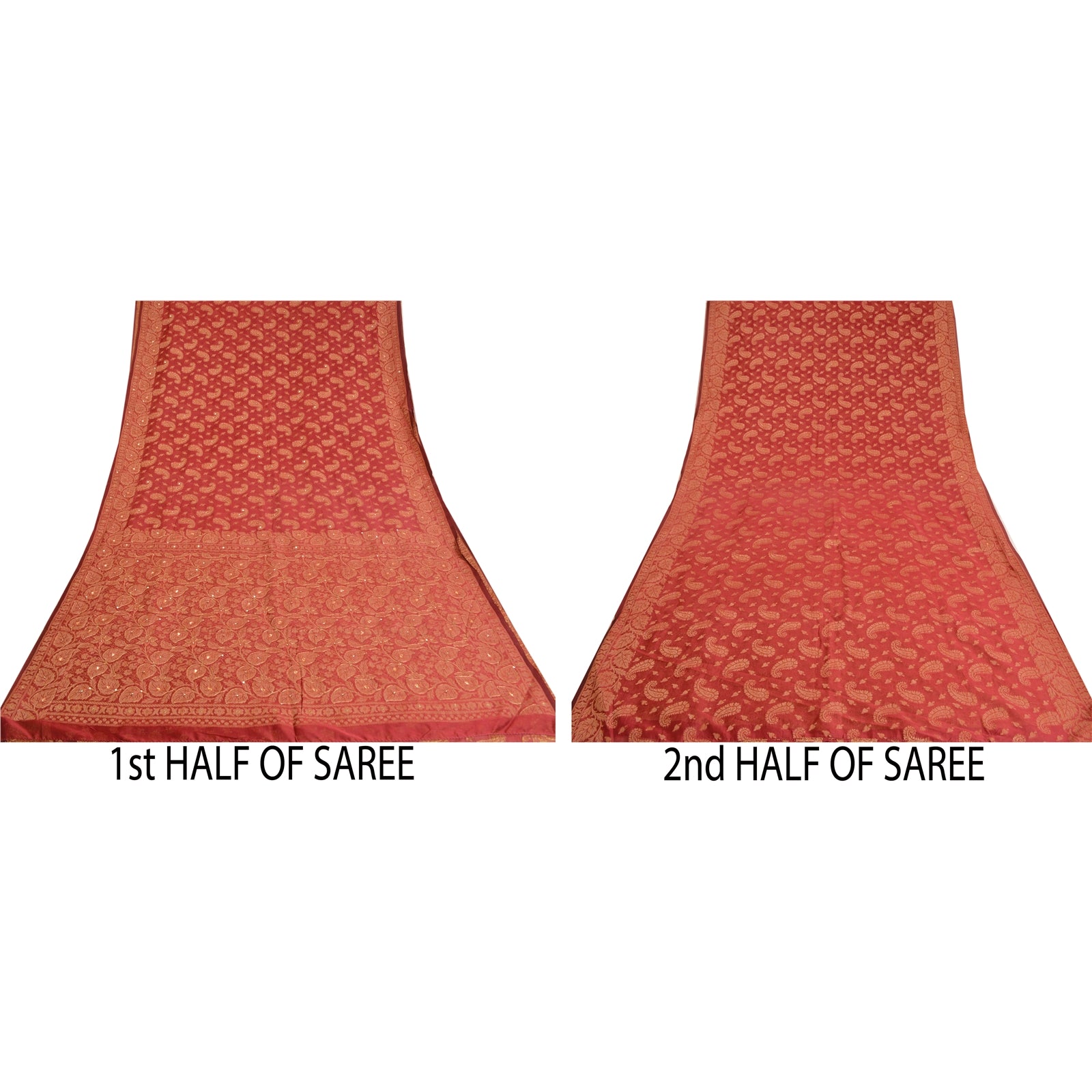 «ЦВЕТ ИЛИ ОТТЕНОК ИЗДЕЛИЯ МОЖЕТ БЫТЬ ТЕМНЕЕ ИЛИ СВЕТЛЕЕ, ЧЕМ НА ИЗОБРАЖЕНИИ». Красивое сари из смесового шелка темно-красного цвета с ручной вышивкой/устойчивая ткань. Элементы отделки Pally & Border — это печатный цветочный узор, вышитый золотой нитью, стразами и пайетками. Центр сари украшен тканым узором «пейсли» с использованием нитей. Это сари можно использовать и для различных идей рукоделия. Используйте его для дизайна одежды, в качестве пледа, для оформления окон, обивки, столового белья и многого другого. Дайте волю своим творческим сокам. «Международные покупатели, обратите внимание: Импортные пошлины, налоги и сборы не включены в цену товара или стоимость почтовых расходов. Эти сборы оплачивает покупатель. Пожалуйста, свяжитесь с таможней вашей страны, чтобы определить, какими будут эти дополнительные расходы, до торгов или покупки. Покупатель оплачивает таможенную пошлину/налог. Она рассчитывается и взимается по-разному в каждой стране. Как продавец, я не имею никакого контроля над ней. НДС или налог с продаж рассчитывается платформой во время оформления заказа. Таможенный сбор оплачивается во время доставки.