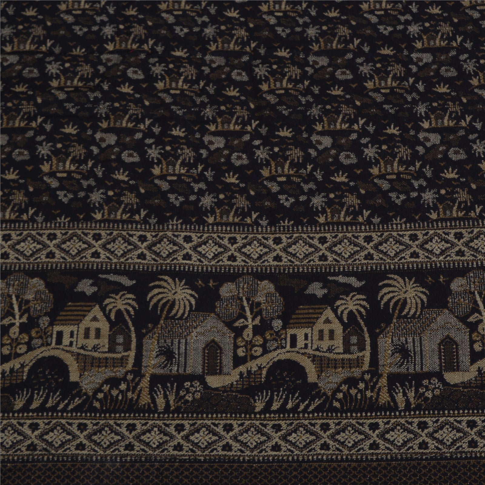 • Fabric: Pure Wool – soft, warm & comfortable • Color: Black base with beige/golden woven design • Pattern: All-over small floral woven motifs • Border Design: Scenic village landscape with palm trees & houses • Technique: Woven (not printed) traditional wool weaving • Style: Long rectangular shawl / stole • Uses: Winter wear, layering, ethnic styling, gifting, décor throw • Condition: Vintage pre-owned shawl in good usable condition • Feel: Cozy, breathable & lightweight warmth • Authentic Indian Textile: A timeless handcrafted woolen piece THE ITEM COLOR OR SHADE MAY BE DARKER OR LIGHTER THAN THE PICTURE.' International buyers please note: Import duties, taxes, and charges are not included in the item price or postage cost. Buyer will pay custom duty/tax,VAT, and any applicable charges at the time of delivery. S-3202